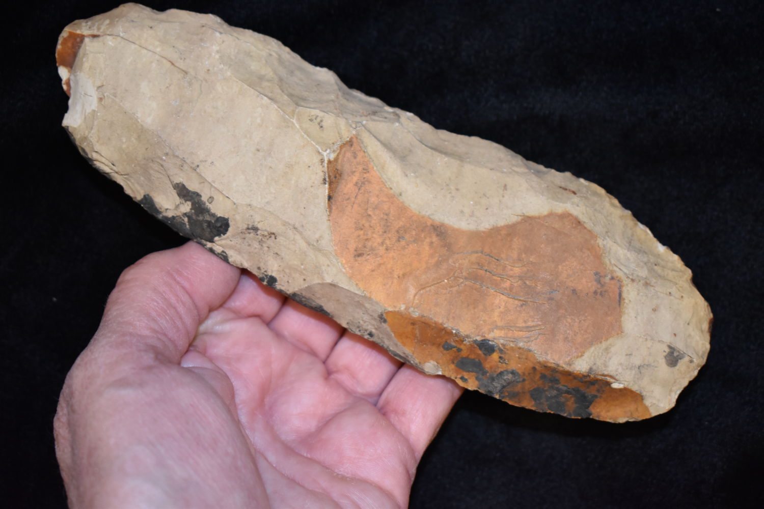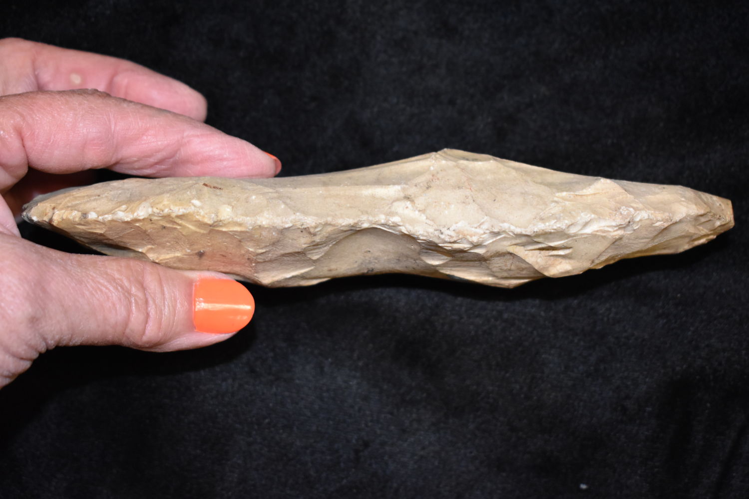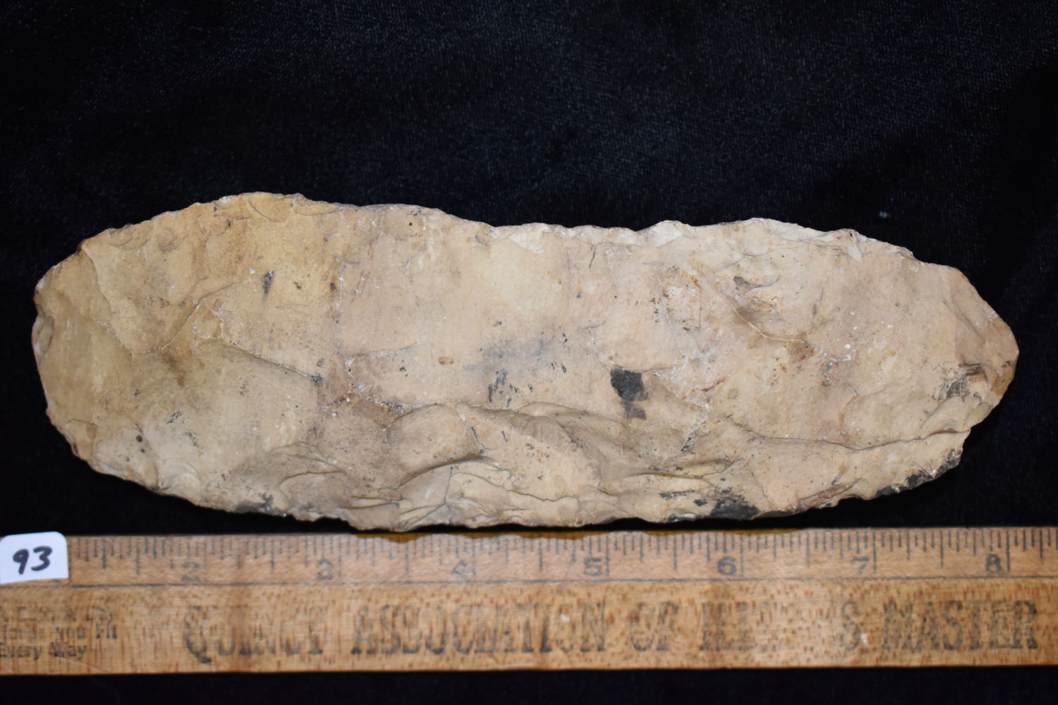 7 1/4″ LONG FLINT CELT / SPADE FOUND BY MARVIN MCKINNEY IN WEAKLEY COUNTY TENNESSEE, INDIAN ARROWHEAD