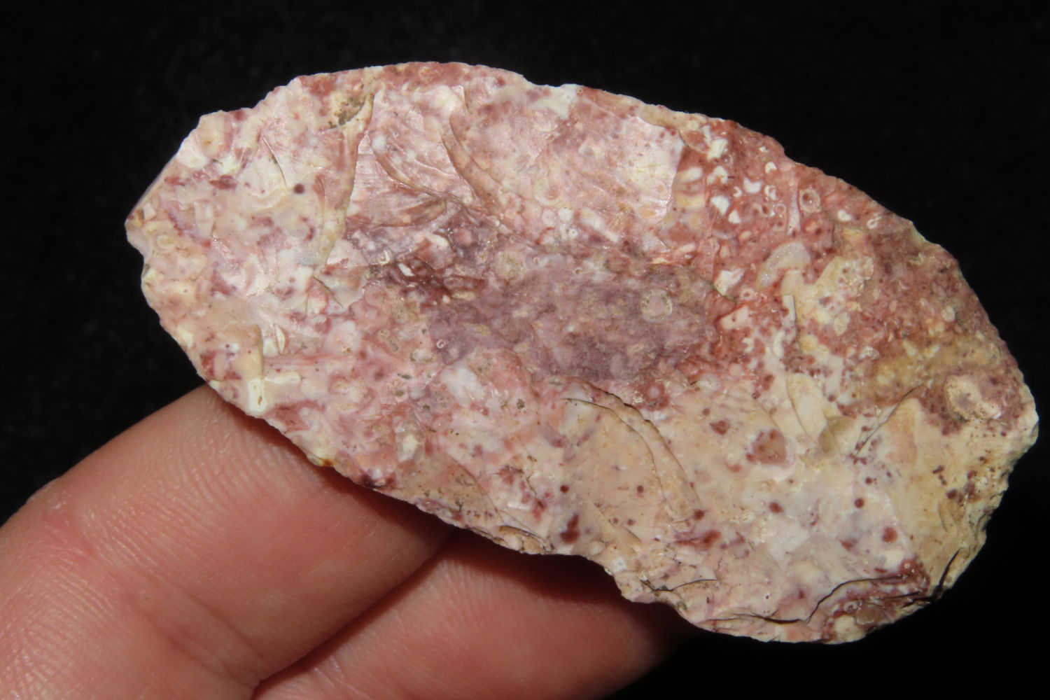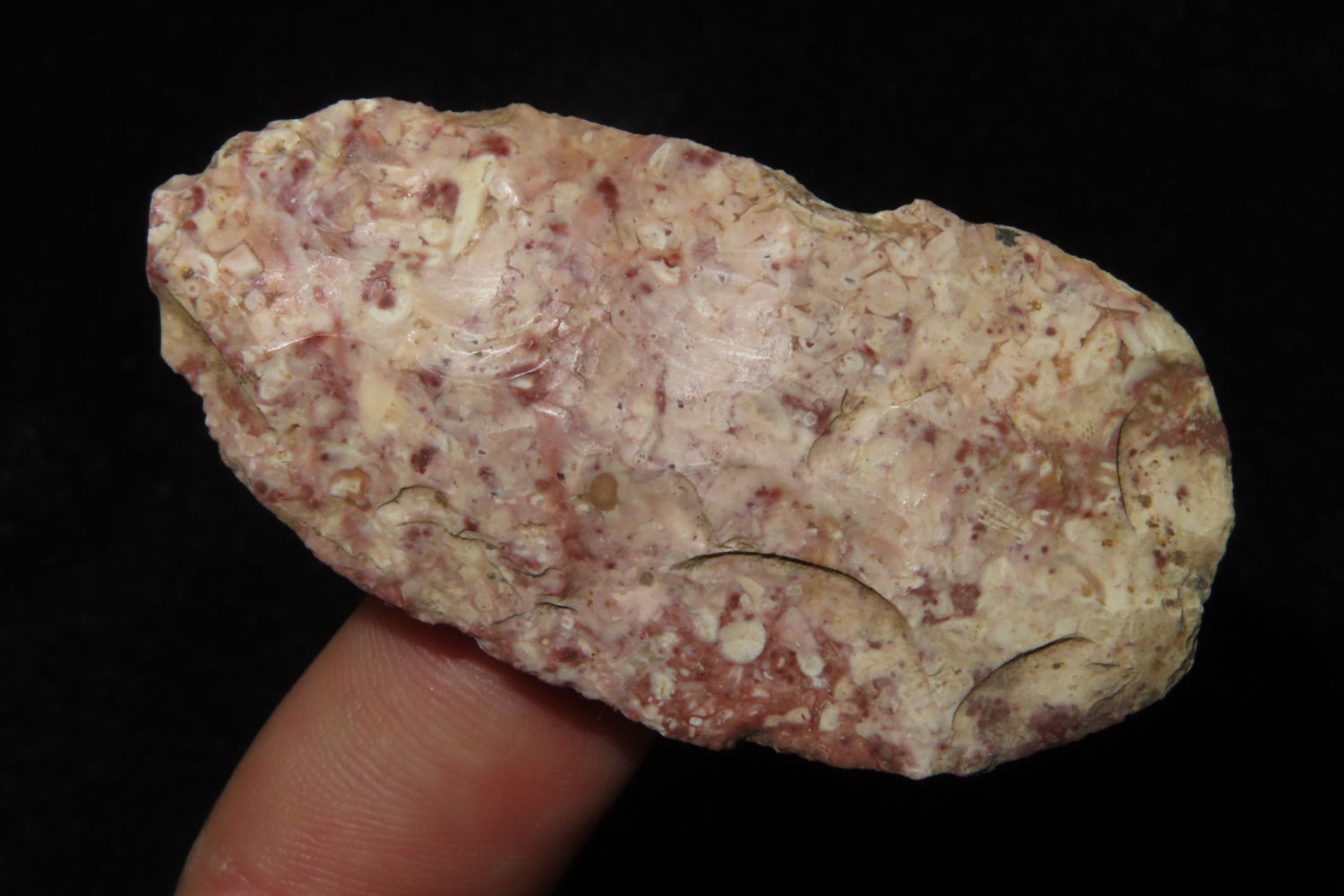 3 1/2″ Heavily Fossilized Burlington that Heat Treated Red and White, Central Missouri