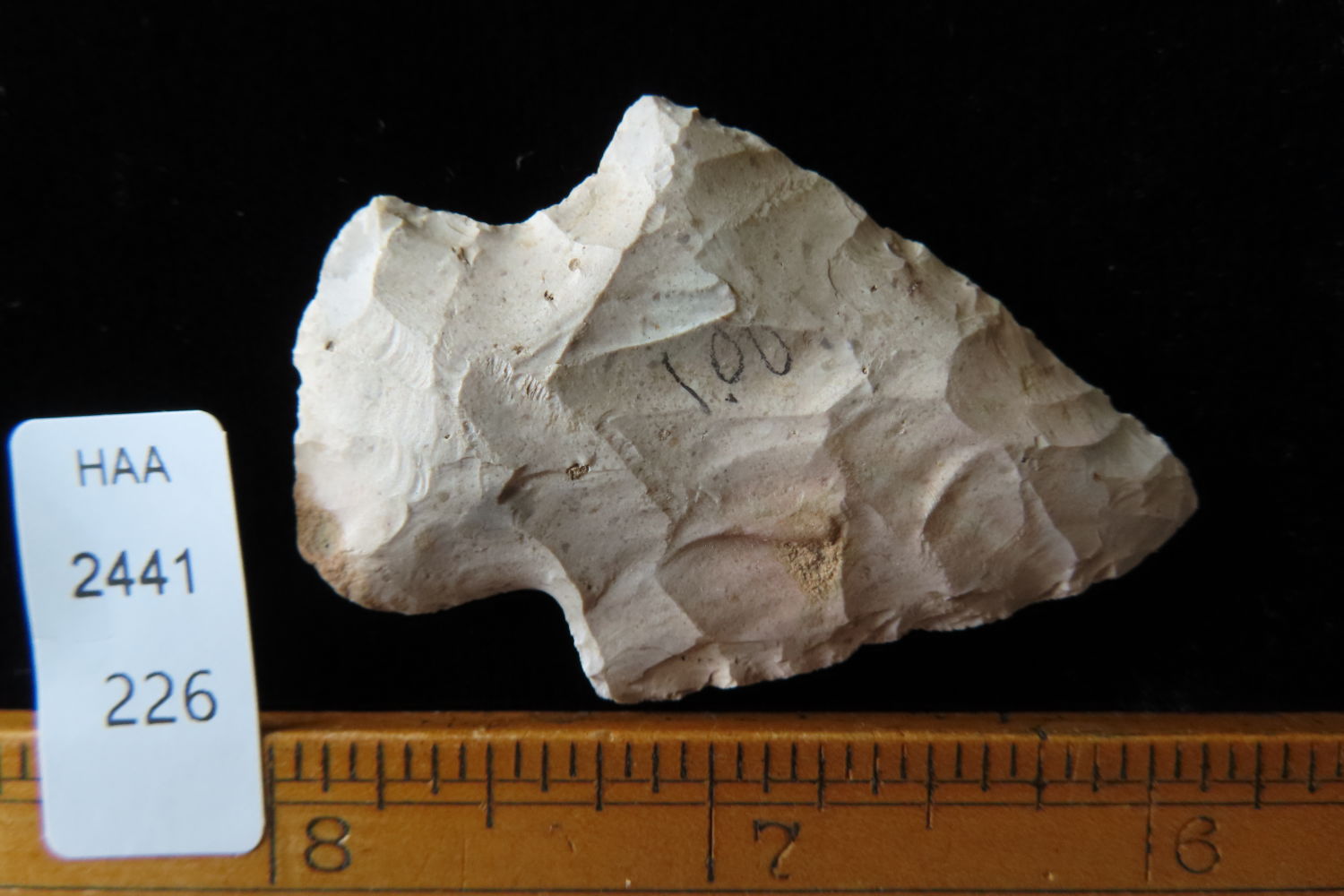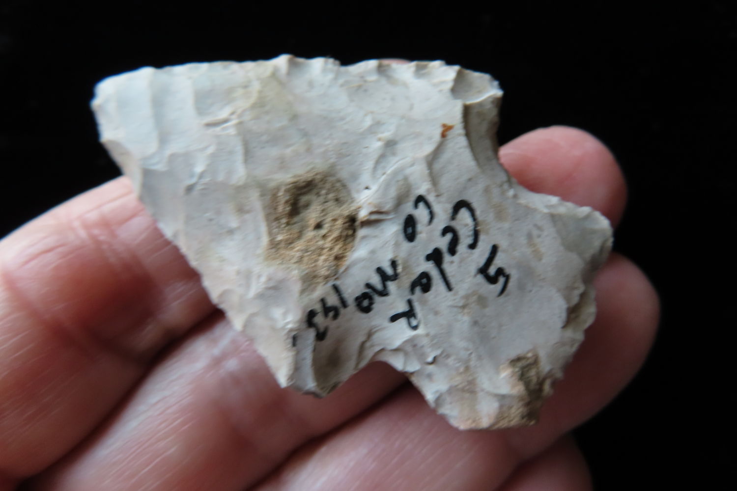 2 1/8″ Stemmed Point found in Cedar Co. Missouri 1935, Authentic Native American Arrowhead
