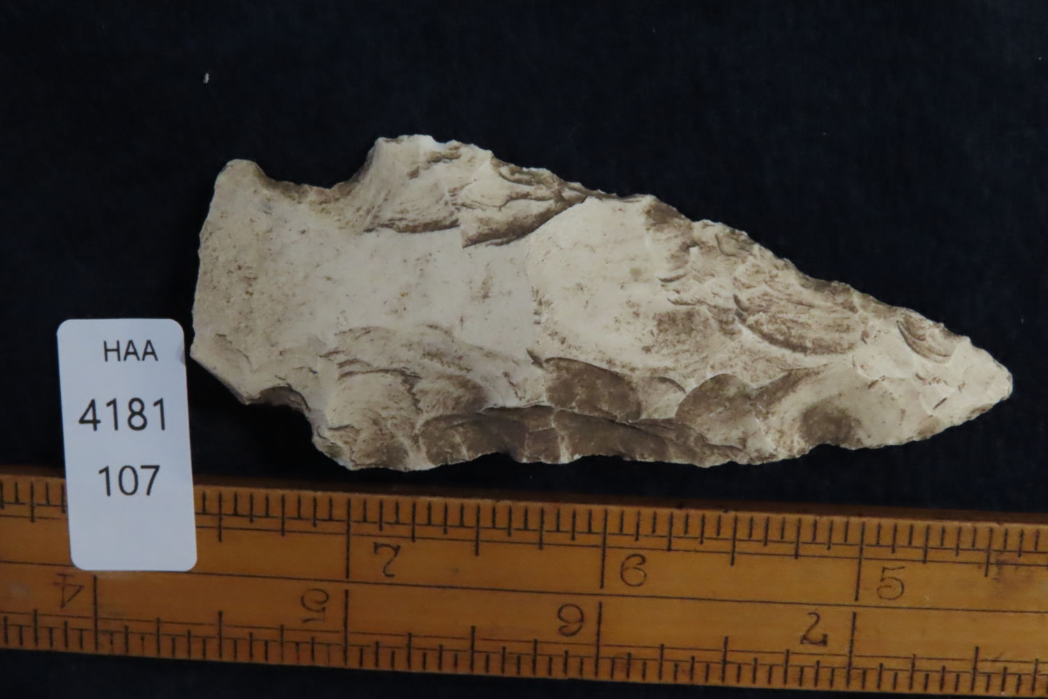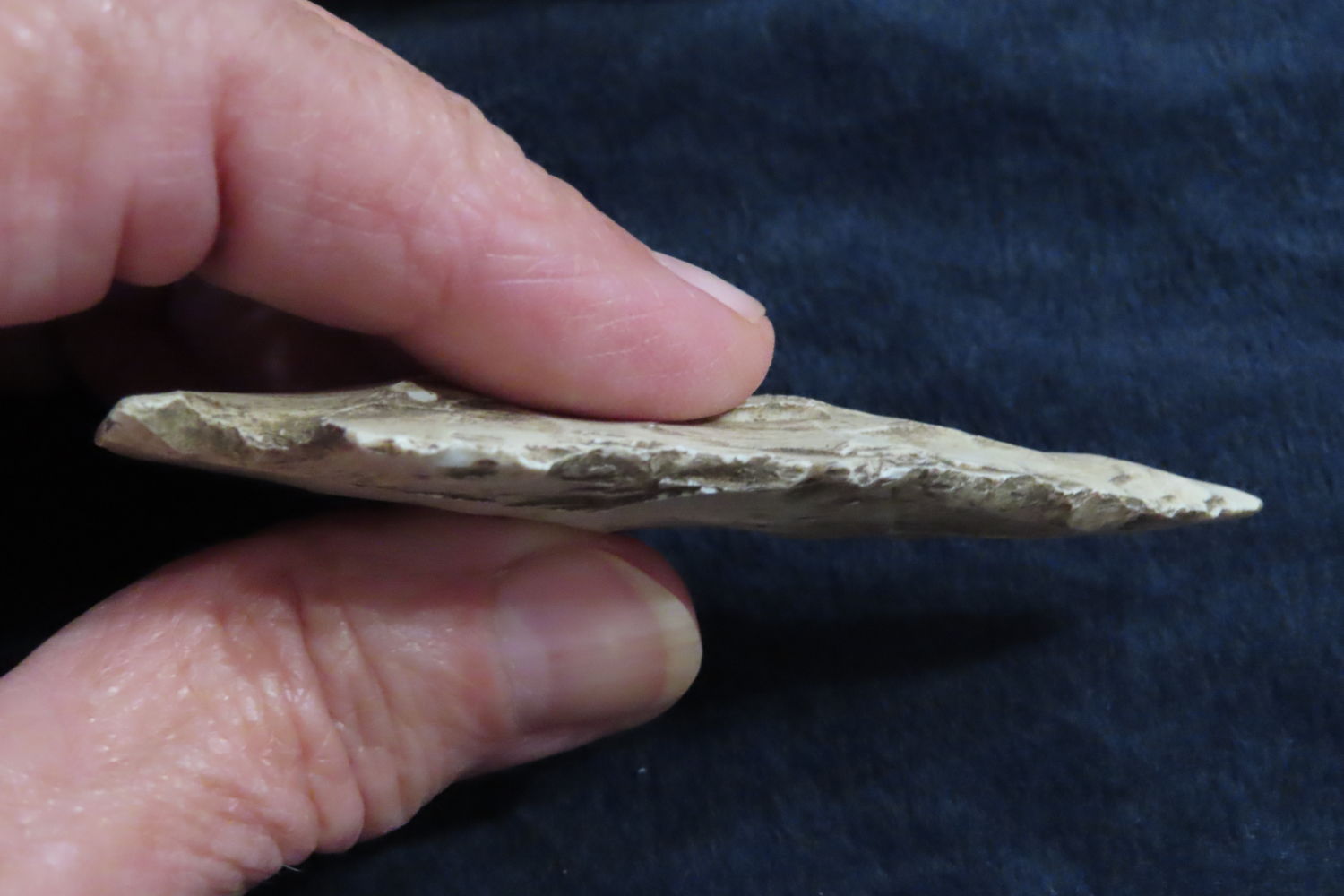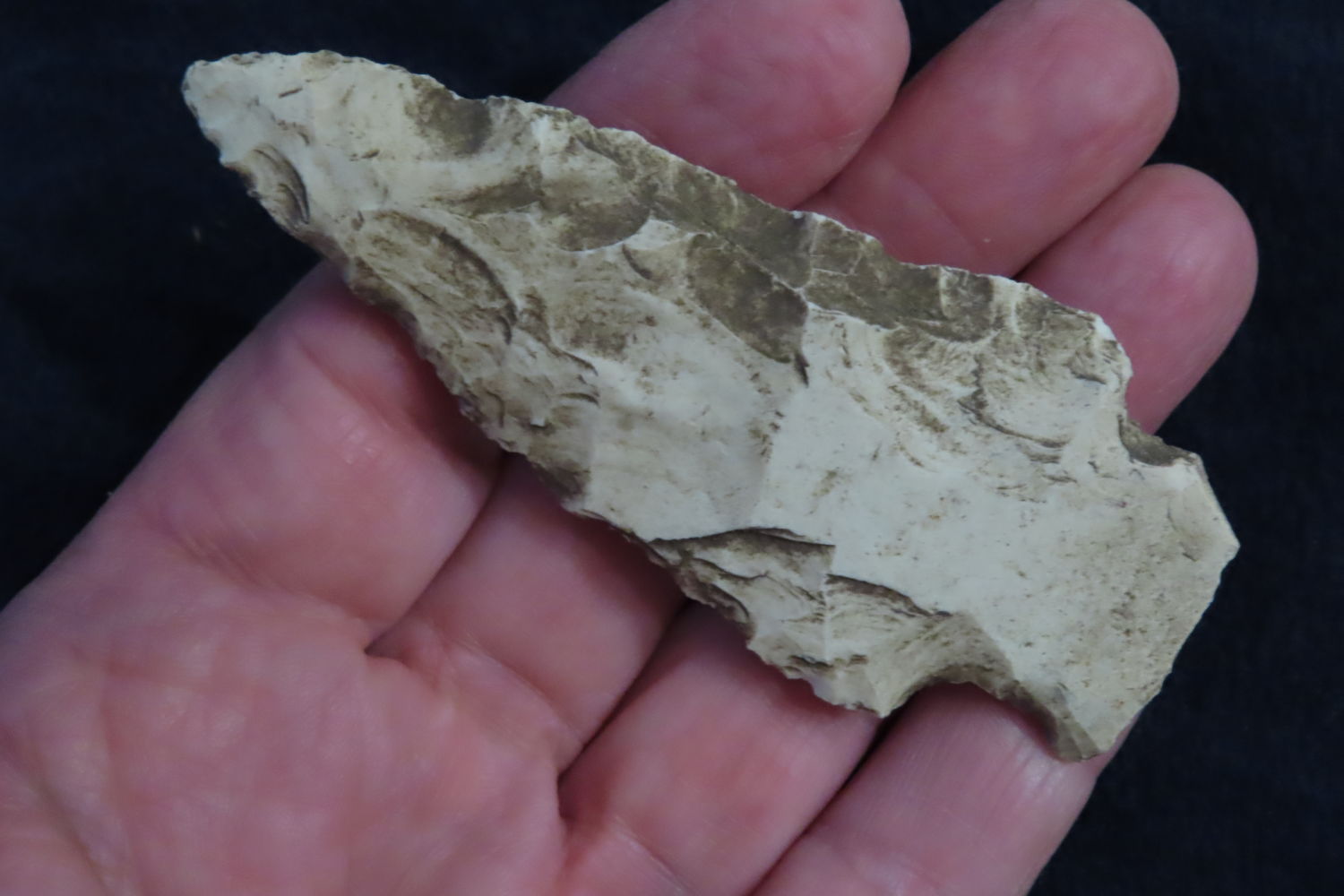 3 3/16″ Kampsville found by Ronald and Eileen Hubbard at the Kinderhook, IL hog lot.
