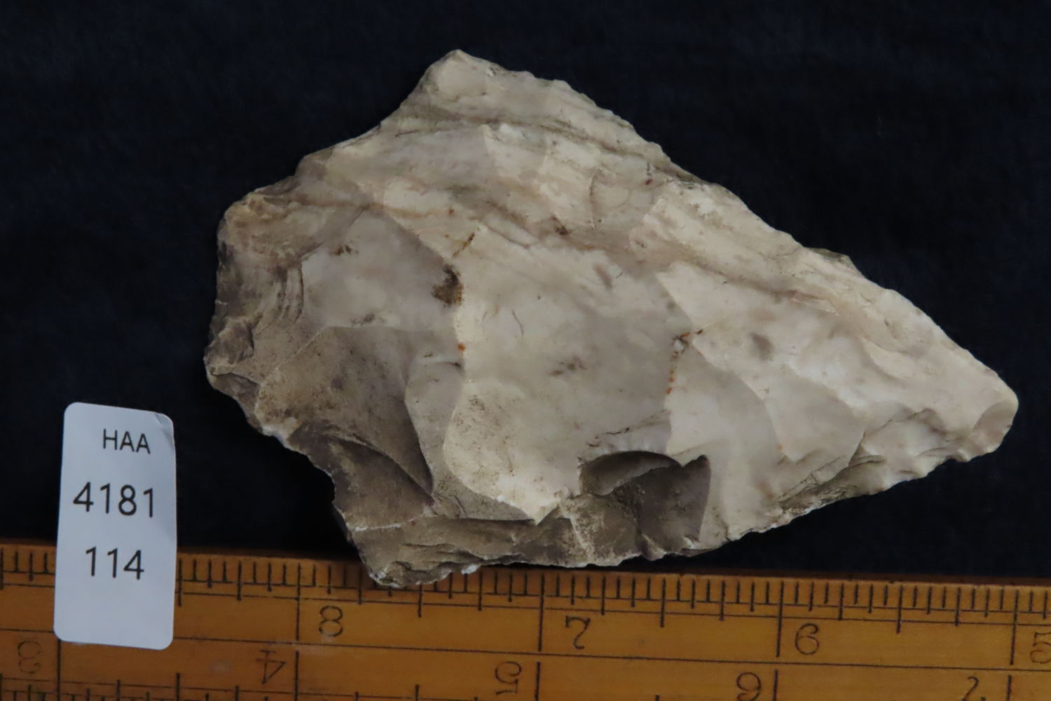 3 3/8″ Large Preform found by Ronald and Eileen Hubbard at the Kinderhook, IL hog lot.