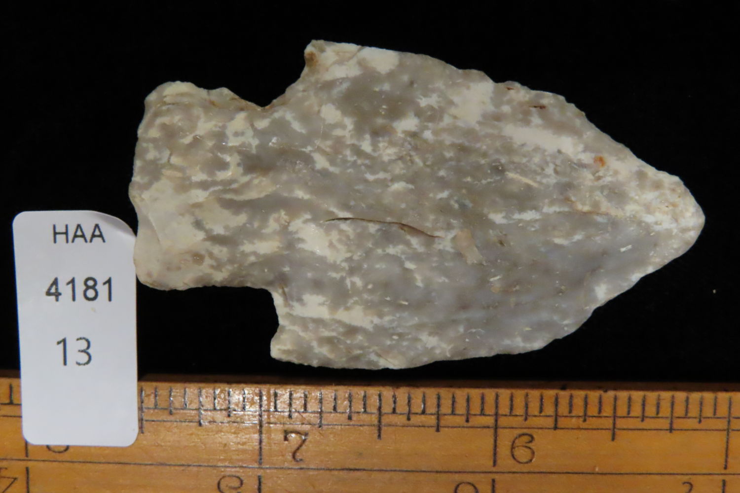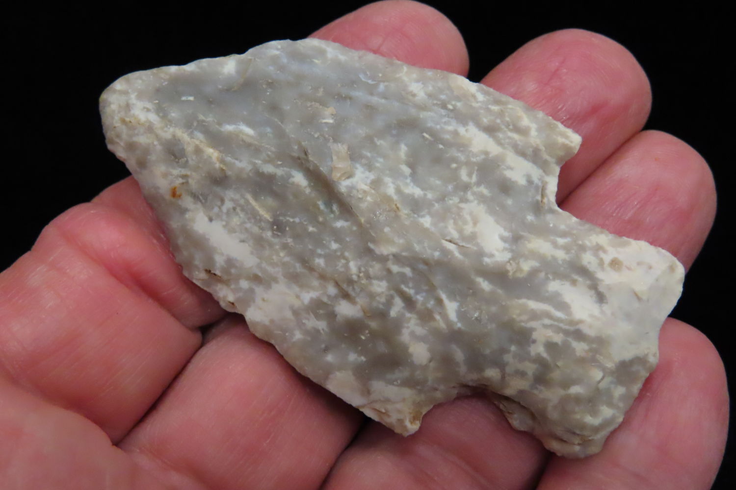 2 7/16″ Stone Square Stem found by Ronald and Eileen Hubbard at the Kinderhook, IL hog lot.