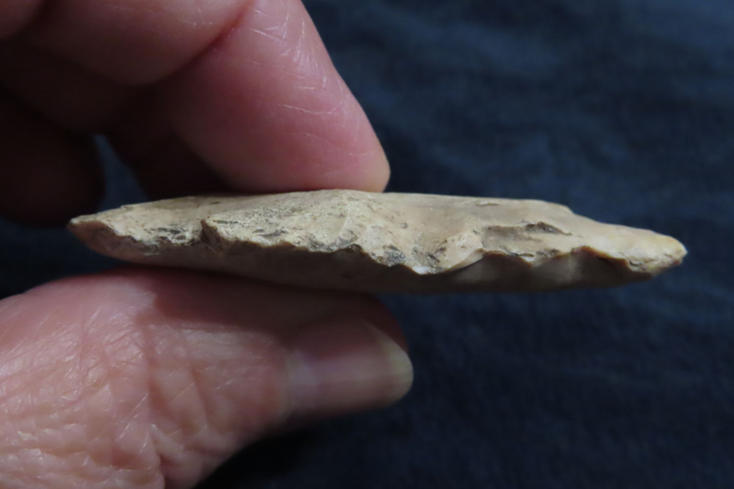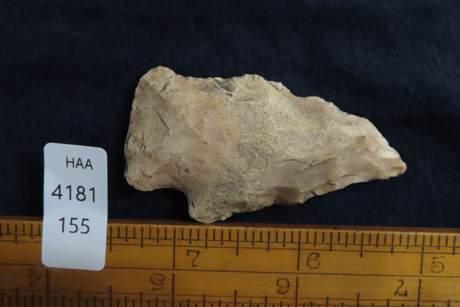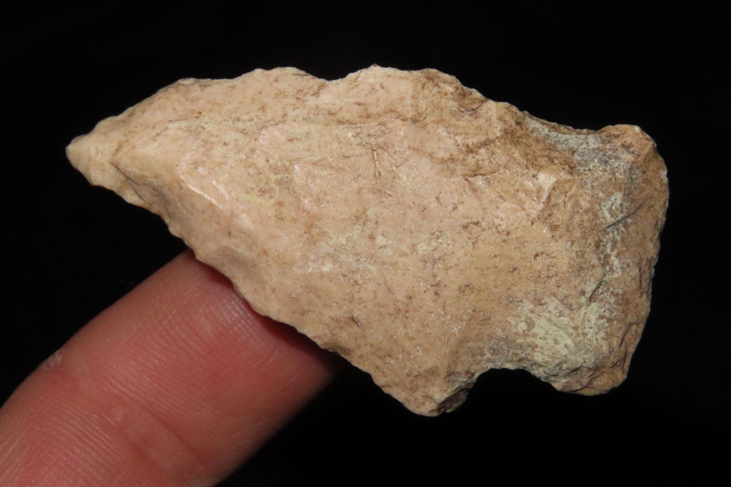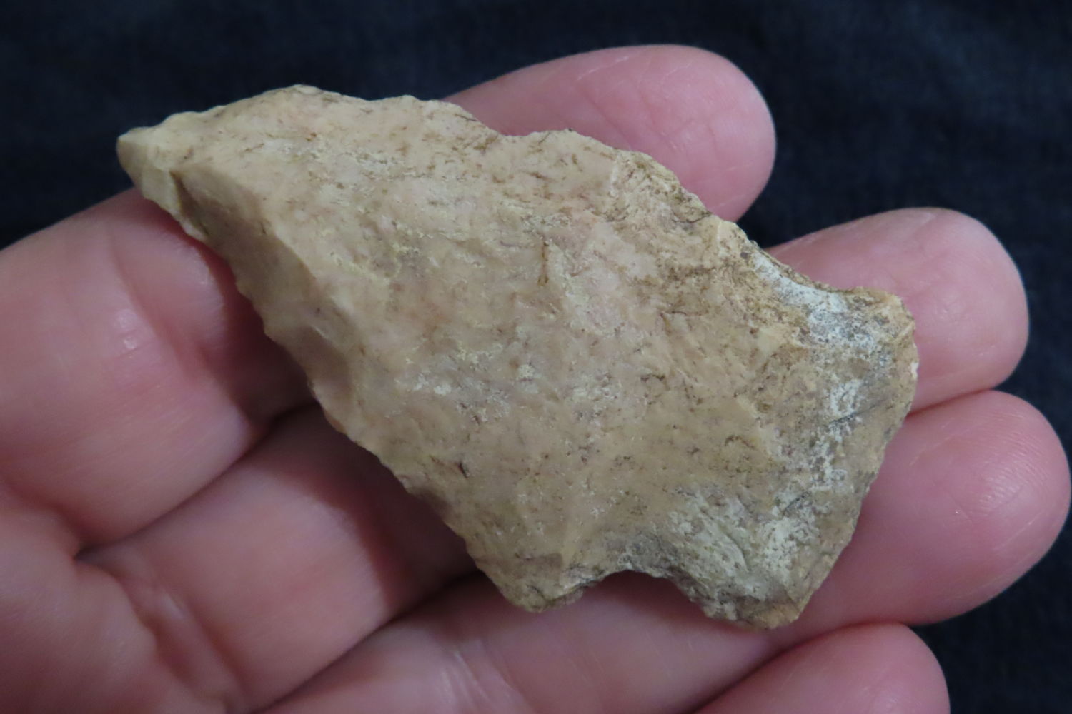 2 1/4″ Archaic Arrowhead found by Ronald and Eileen Hubbard at the Kinderhook, IL hog lot.