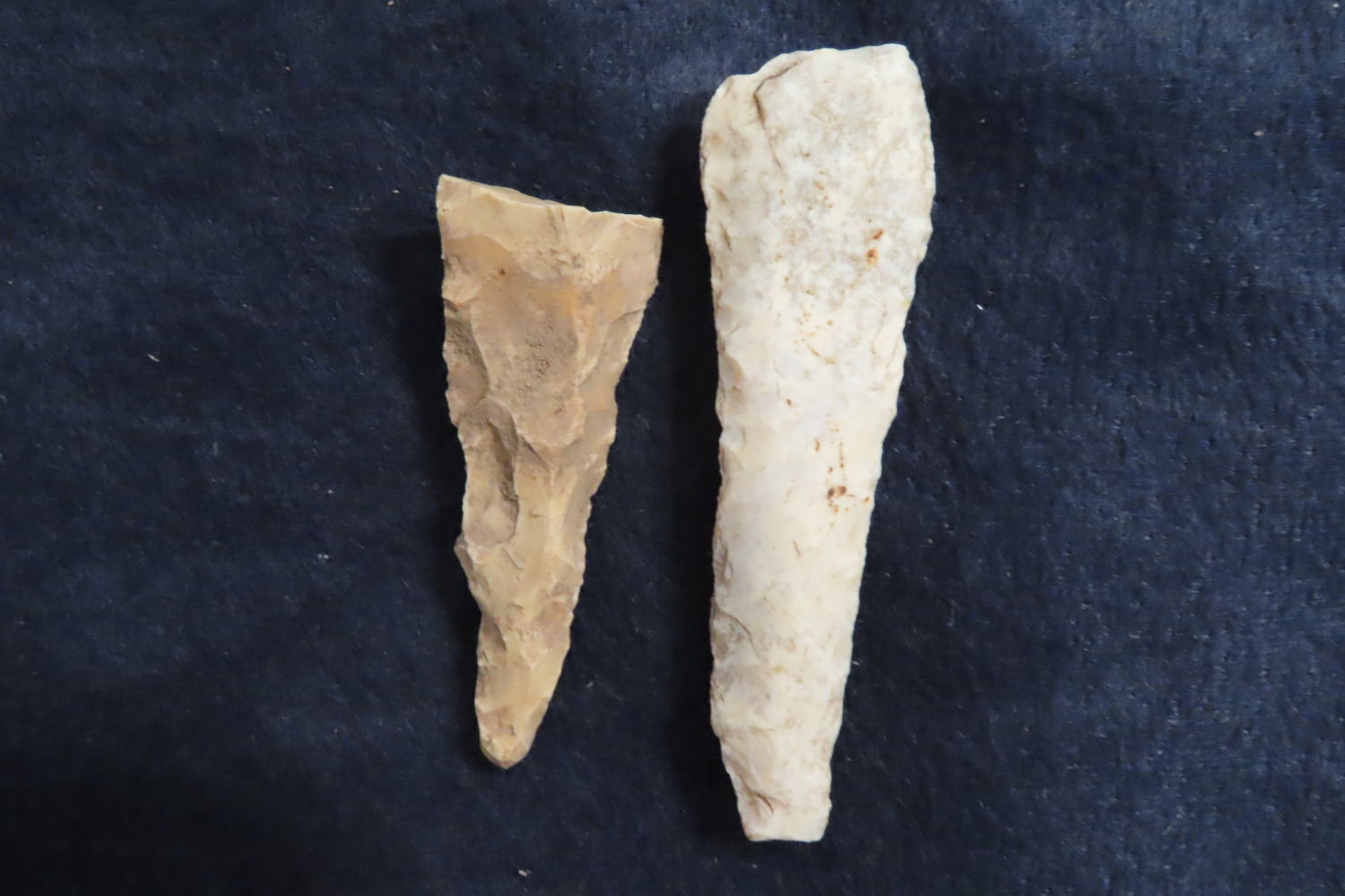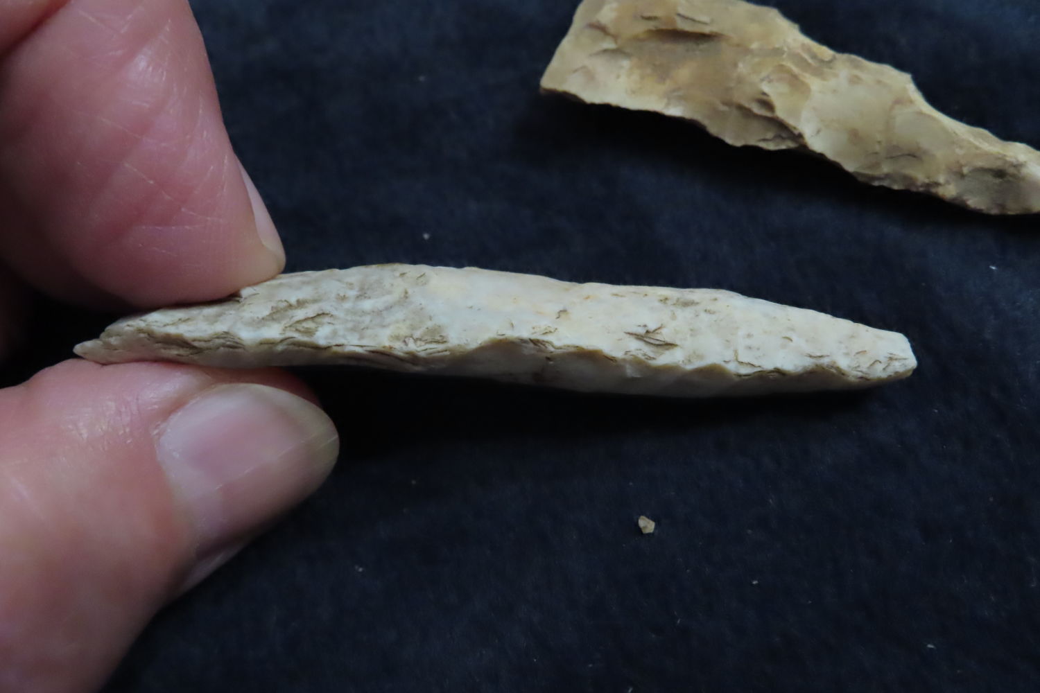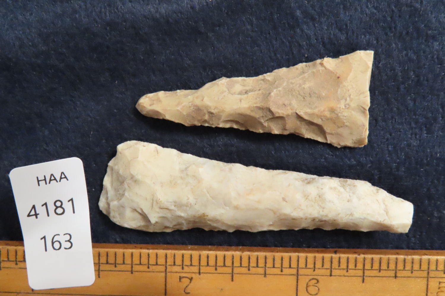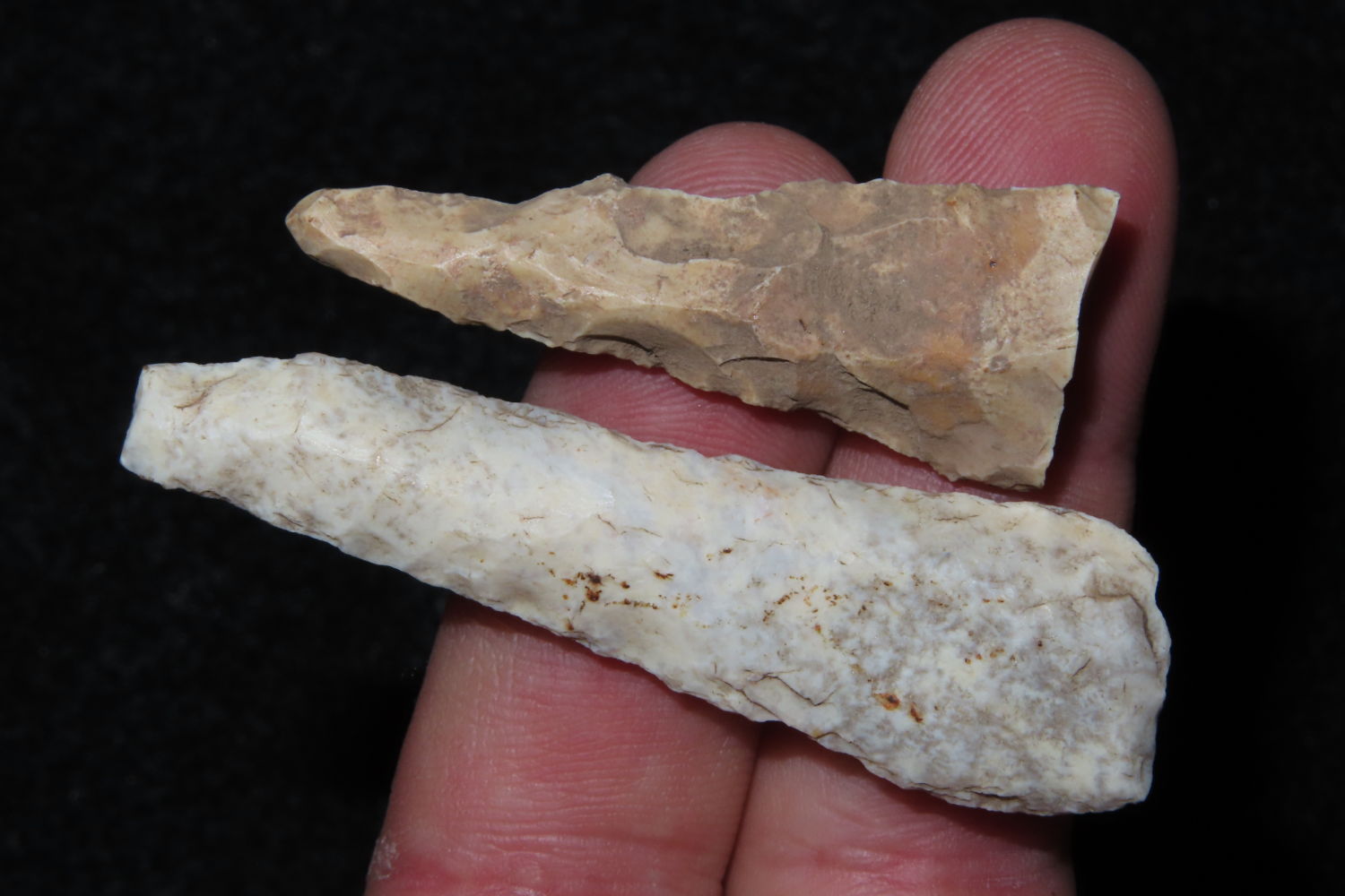 Lot of 2 Drills, longest is 2 7/16″, found by Ronald and Eileen Hubbard at the Kinderhook, IL hog lot.