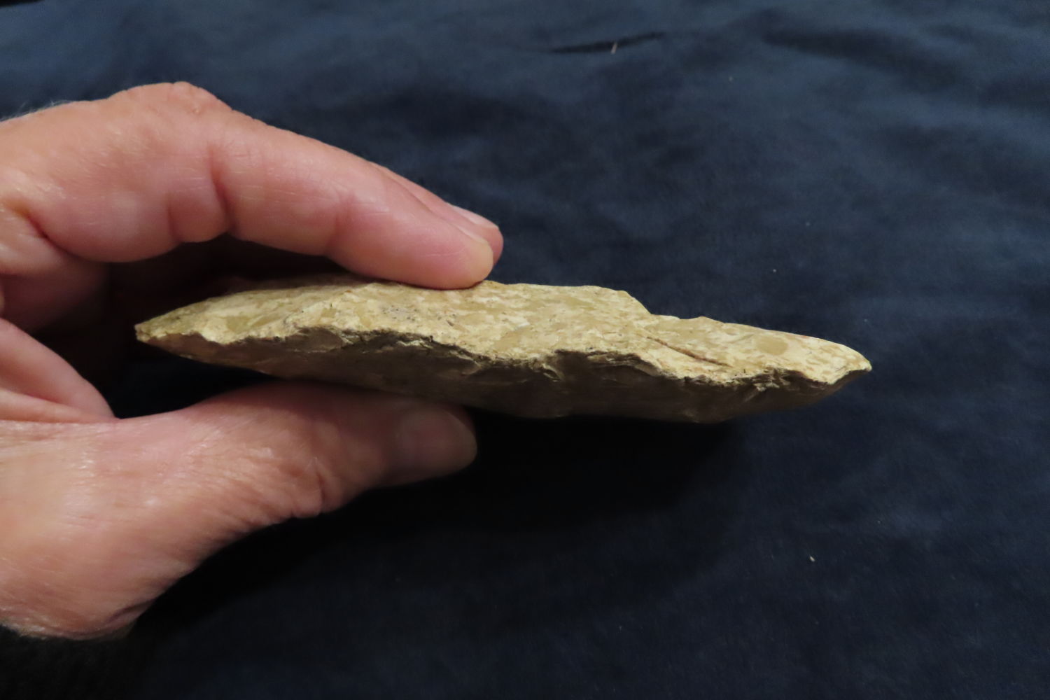 4 3/4″ Archaic Blade found by Ronald and Eileen Hubbard at the Kinderhook, IL hog lot.