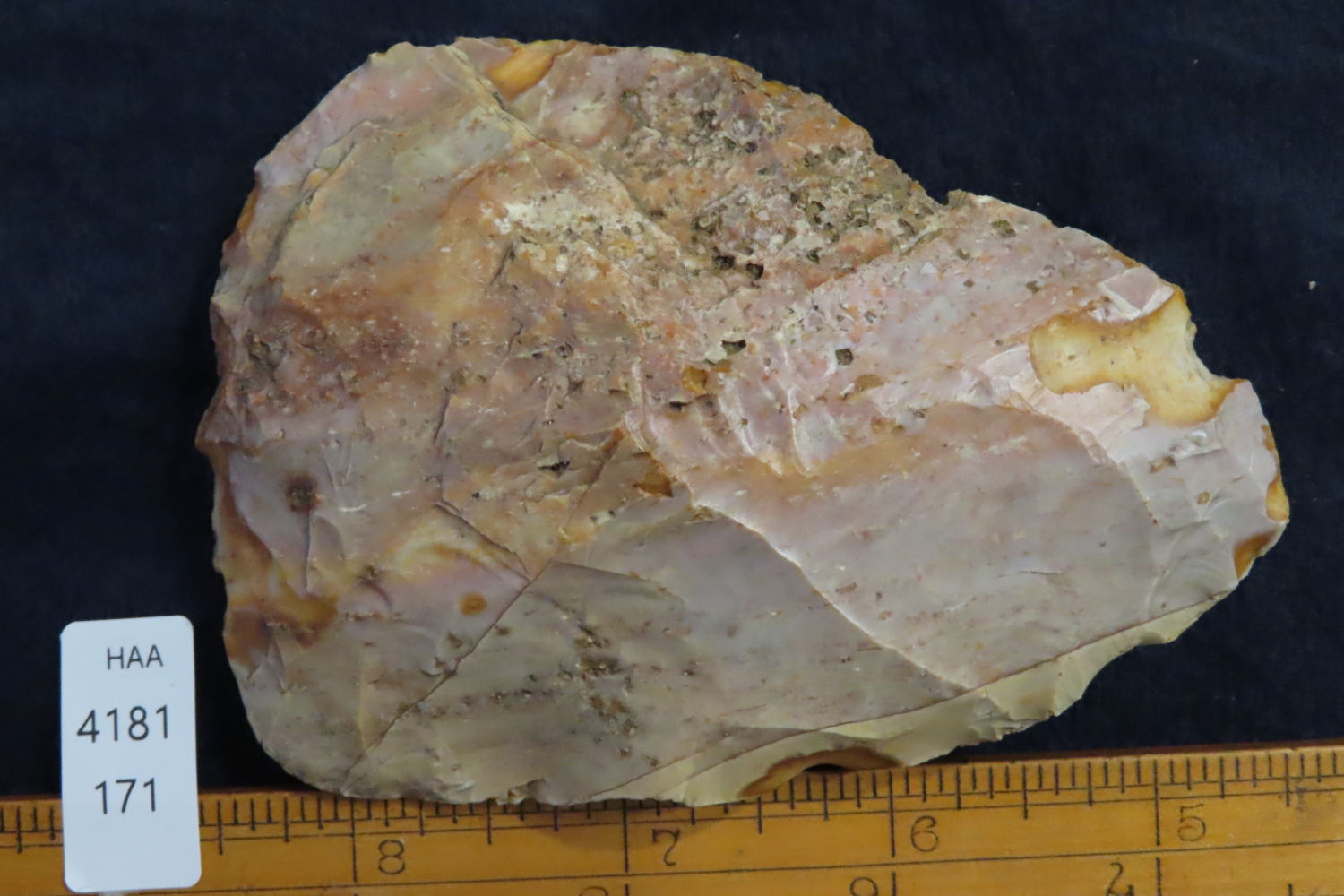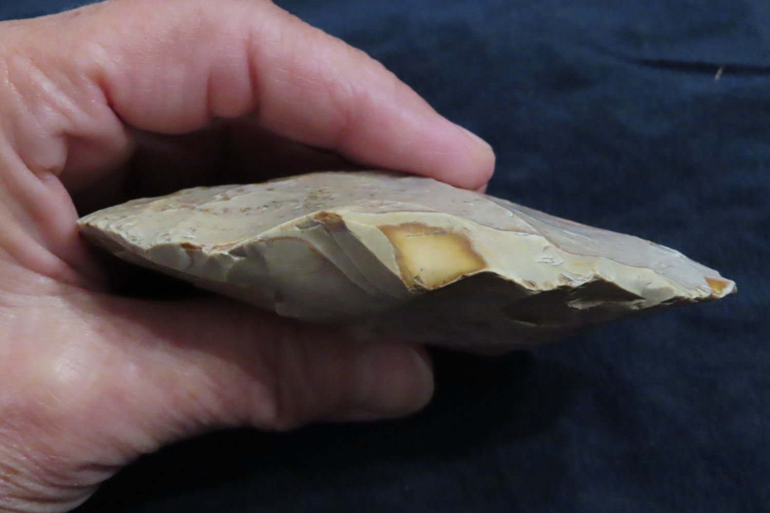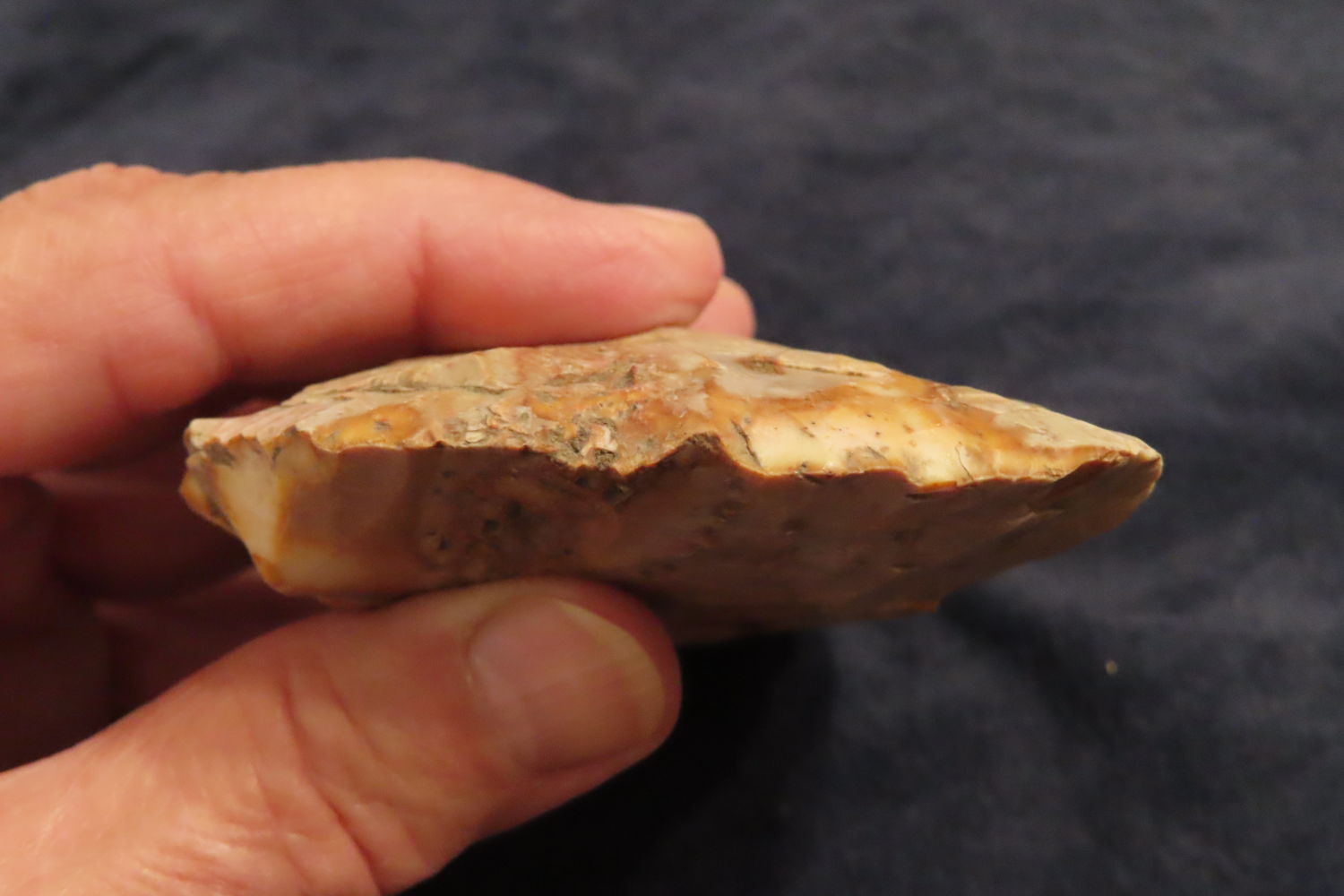4″ Colorful Archaic Blade, found by Ronald and Eileen Hubbard at the Kinderhook, IL hog lot.