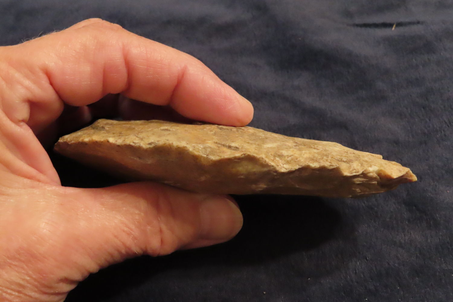 4 3/8″ Archaic Blade found by Ronald and Eileen Hubbard at the Kinderhook, IL hog lot.