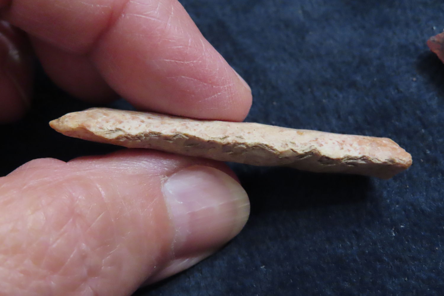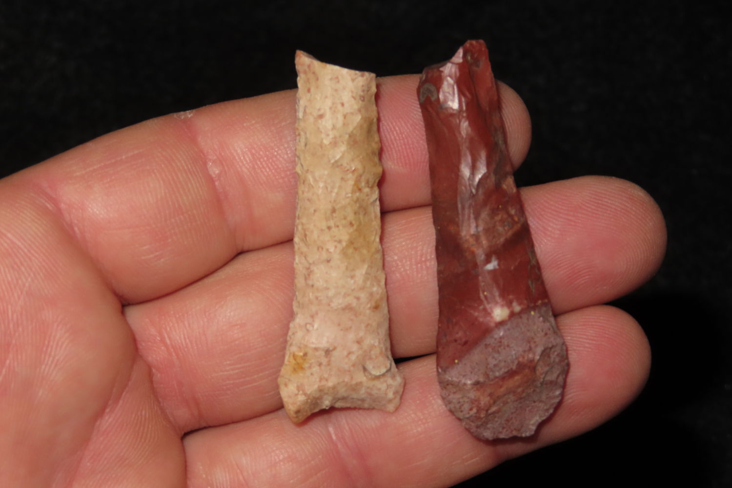Lot of 2 Colorful Drills, Longest is 2 3/16" found by Ronald and Eileen Hubbard at the Kinderhook, IL hog lot.