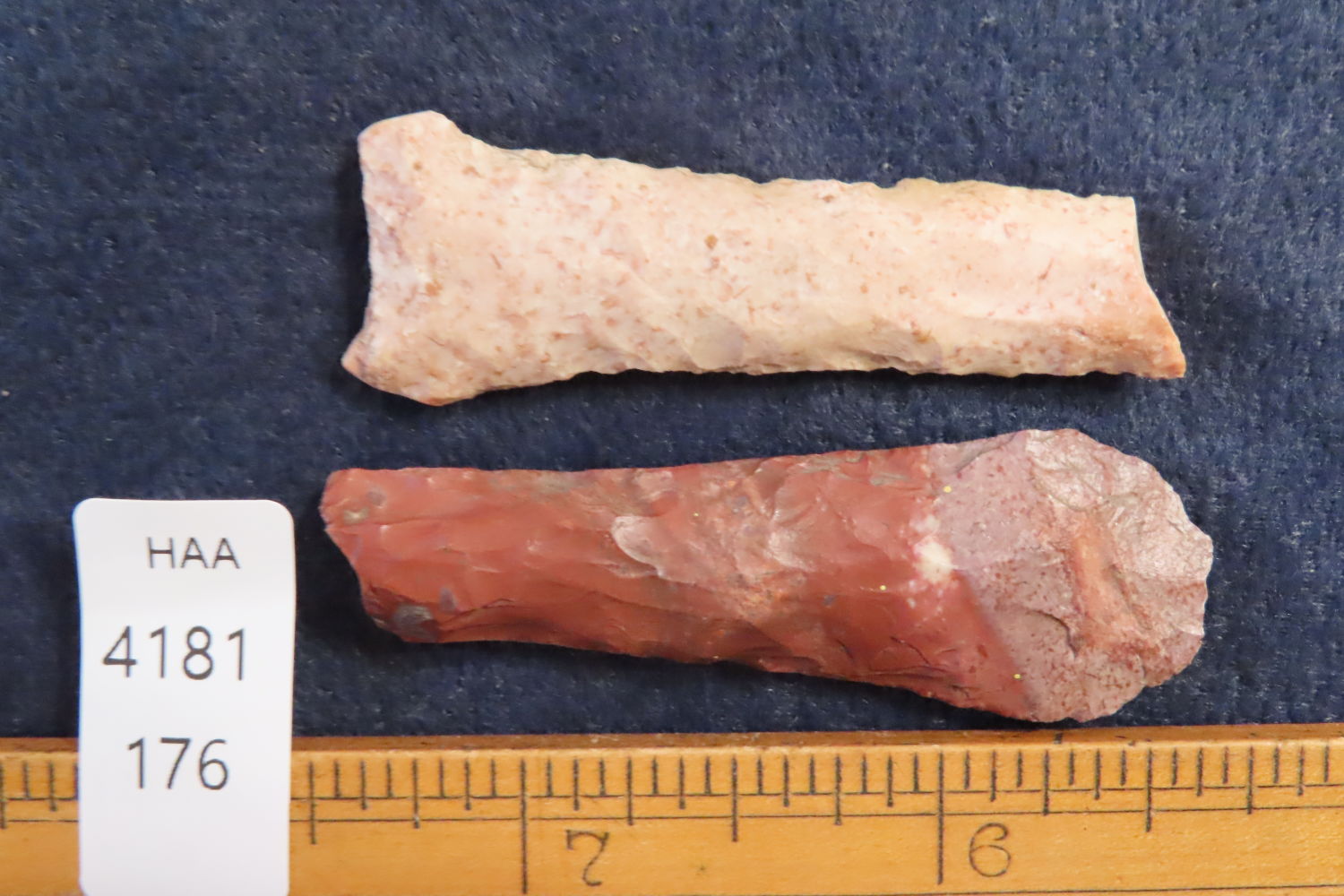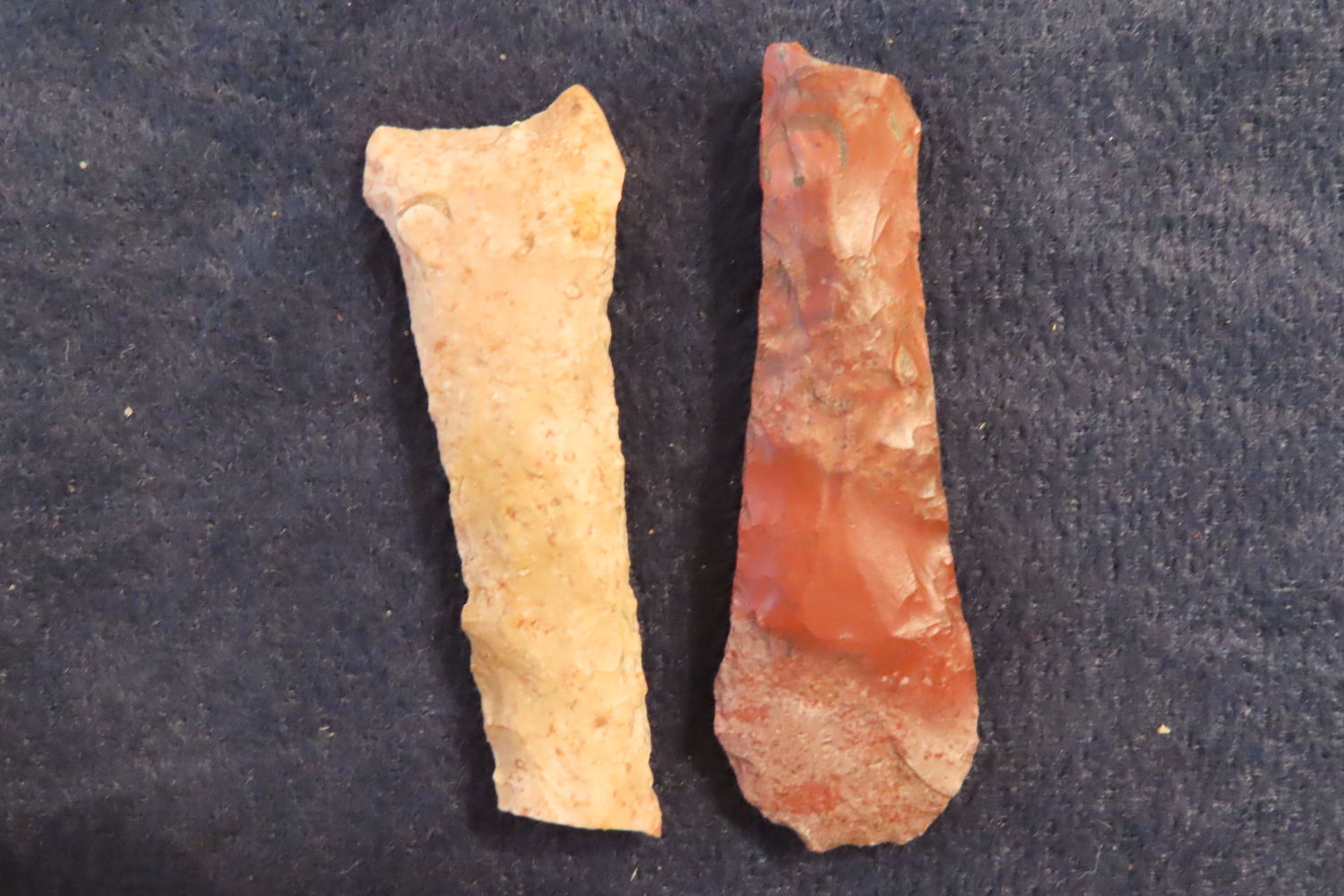 Lot of 2 Colorful Drills, Longest is 2 3/16″ found by Ronald and Eileen Hubbard at the Kinderhook, IL hog lot.