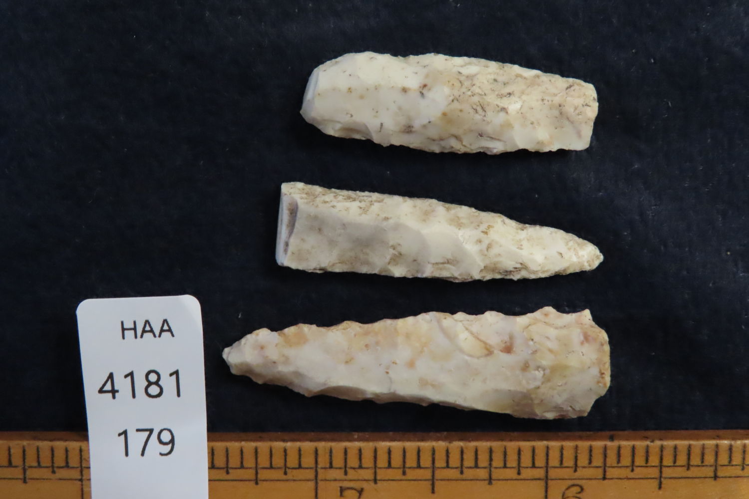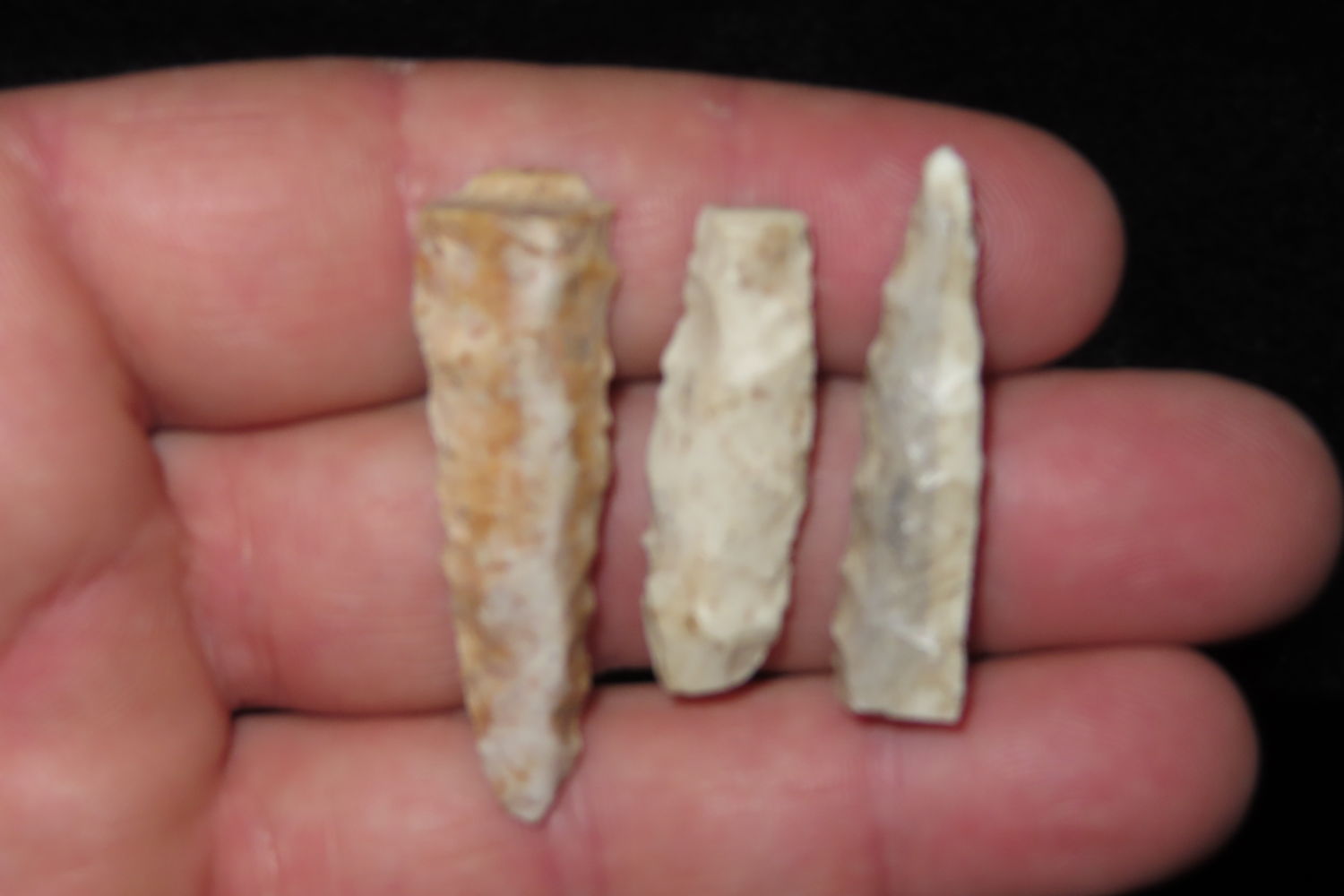 Lot of 3 Drills, Longest measures 1 11/16″, found by Ronald and Eileen Hubbard at the Kinderhook, IL hog lot.
