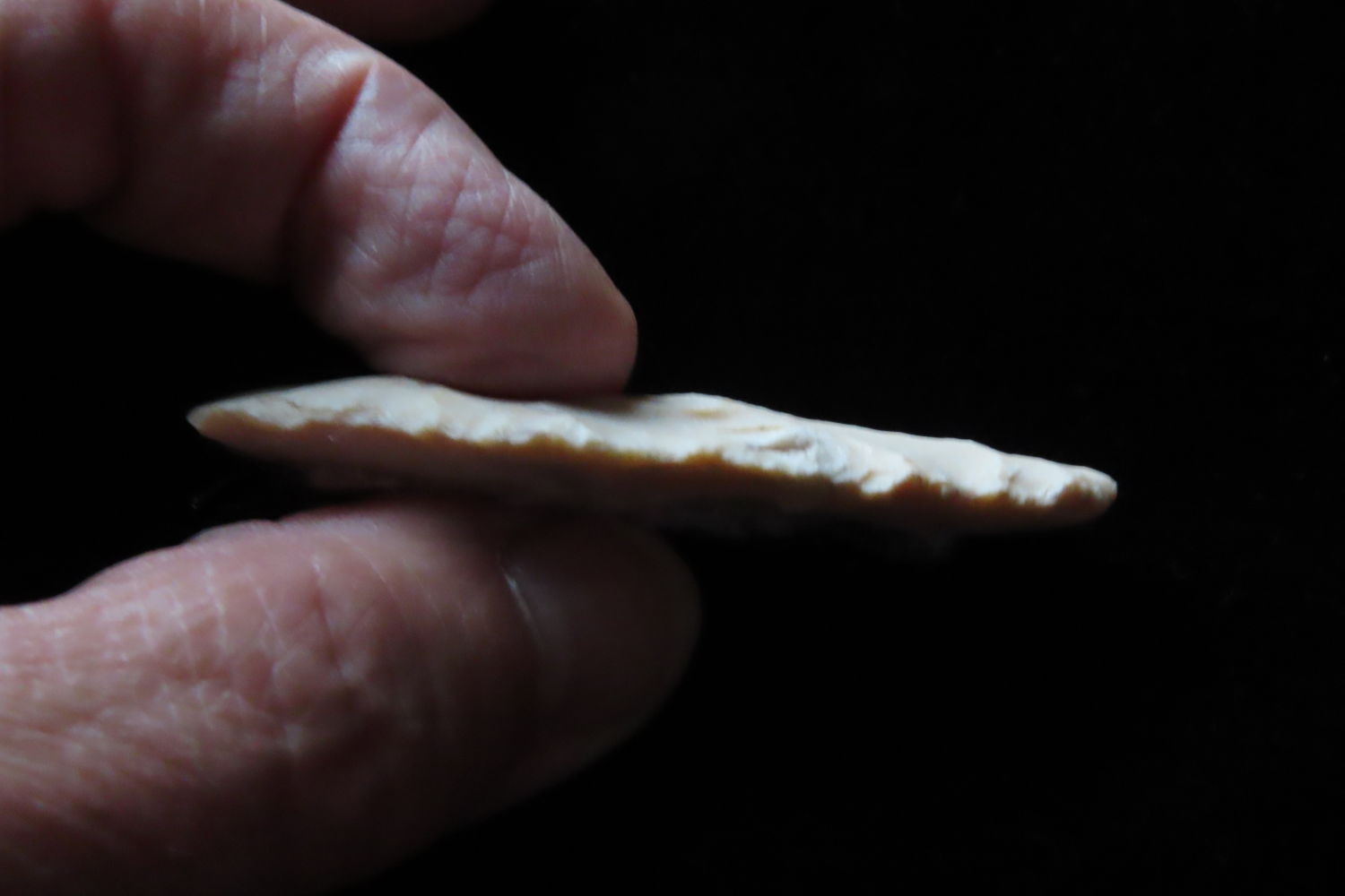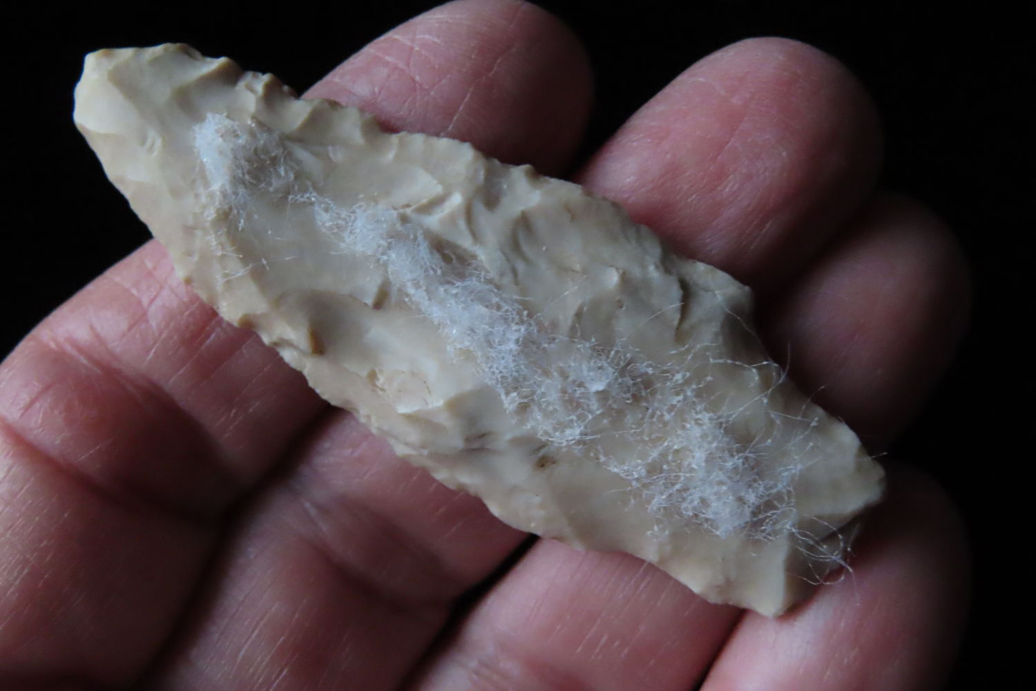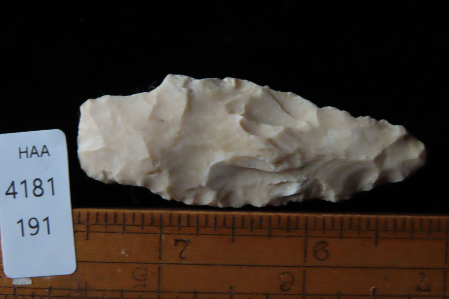 2 7/16″ Stemmed Point found by Ronald and Eileen Hubbard at the Kinderhook, IL hog lot.