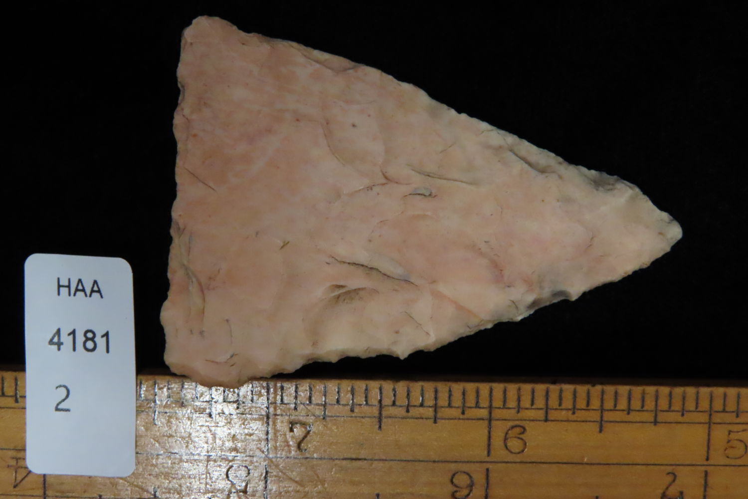 2 1/4″ Copena Triangular Blade found by Ronald and Eileen Hubbard at the Kinderhook, IL hog lot.