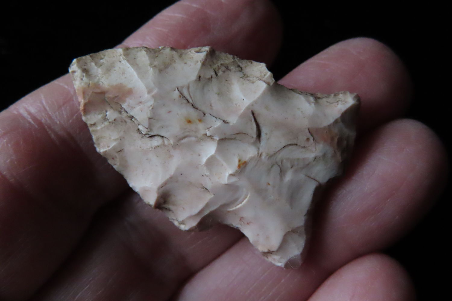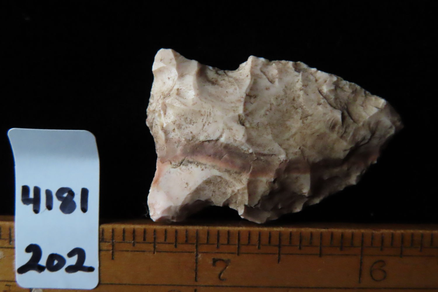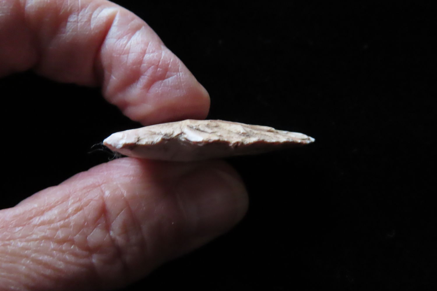 1 3/8″ Archaic Point found by Ronald and Eileen Hubbard at the Kinderhook, IL hog lot.