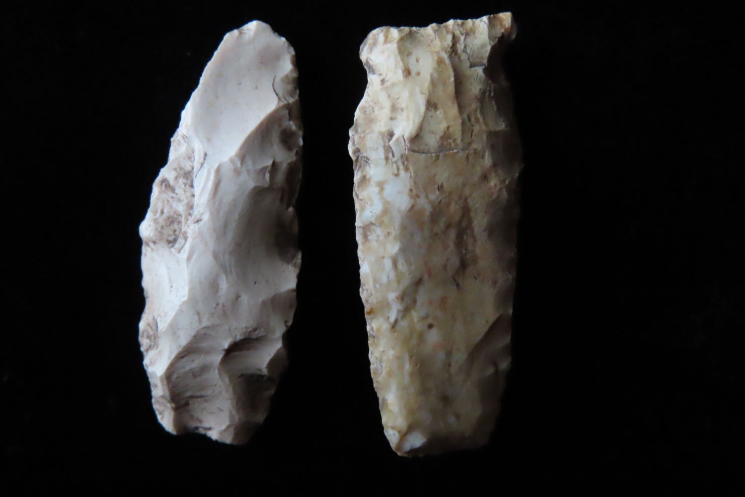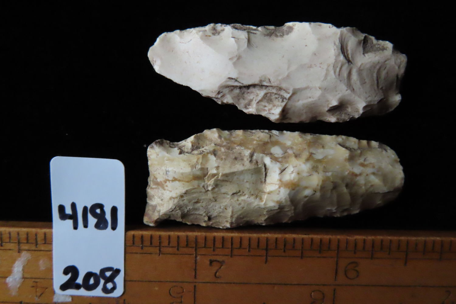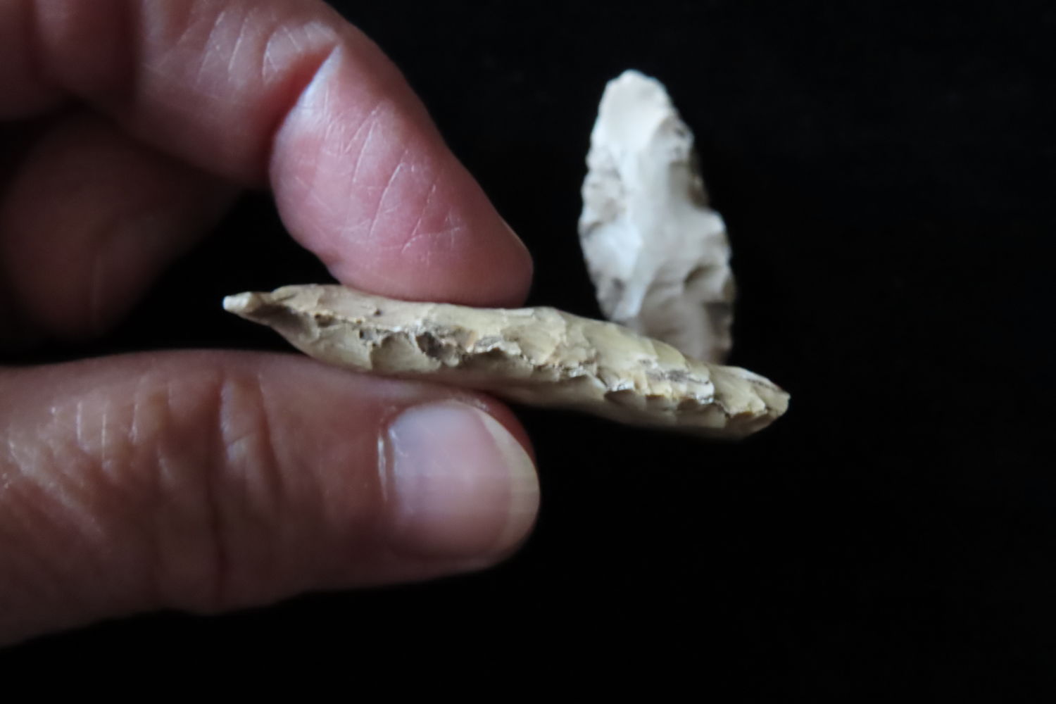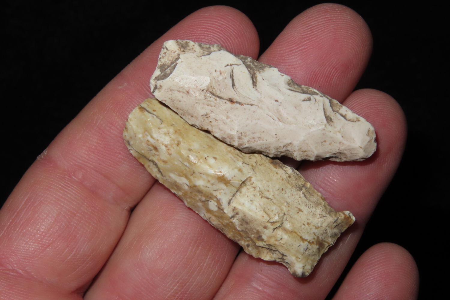 Grouping of 2 Arrowheads found by Ronald and Eileen Hubbard at the Kinderhook, IL hog lot.
