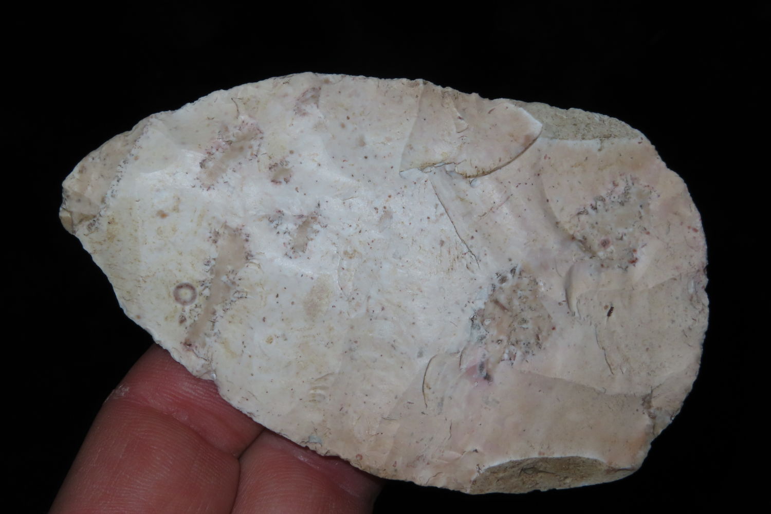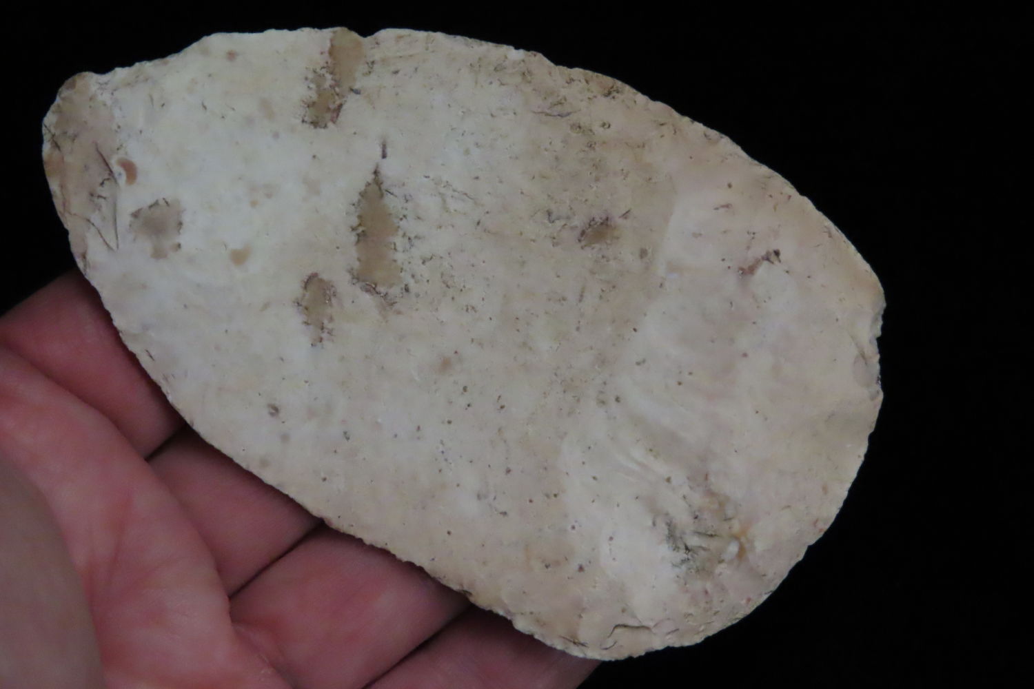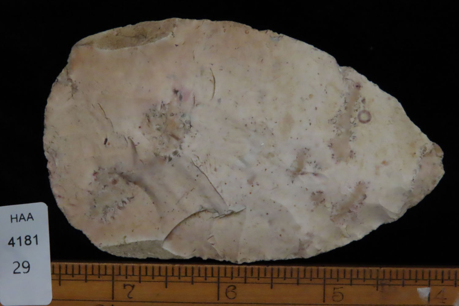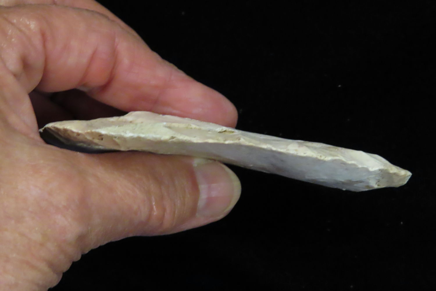 3 13/16″ North Bi-Face Blade found by Ronald and Eileen Hubbard at the Kinderhook, IL hog lot.