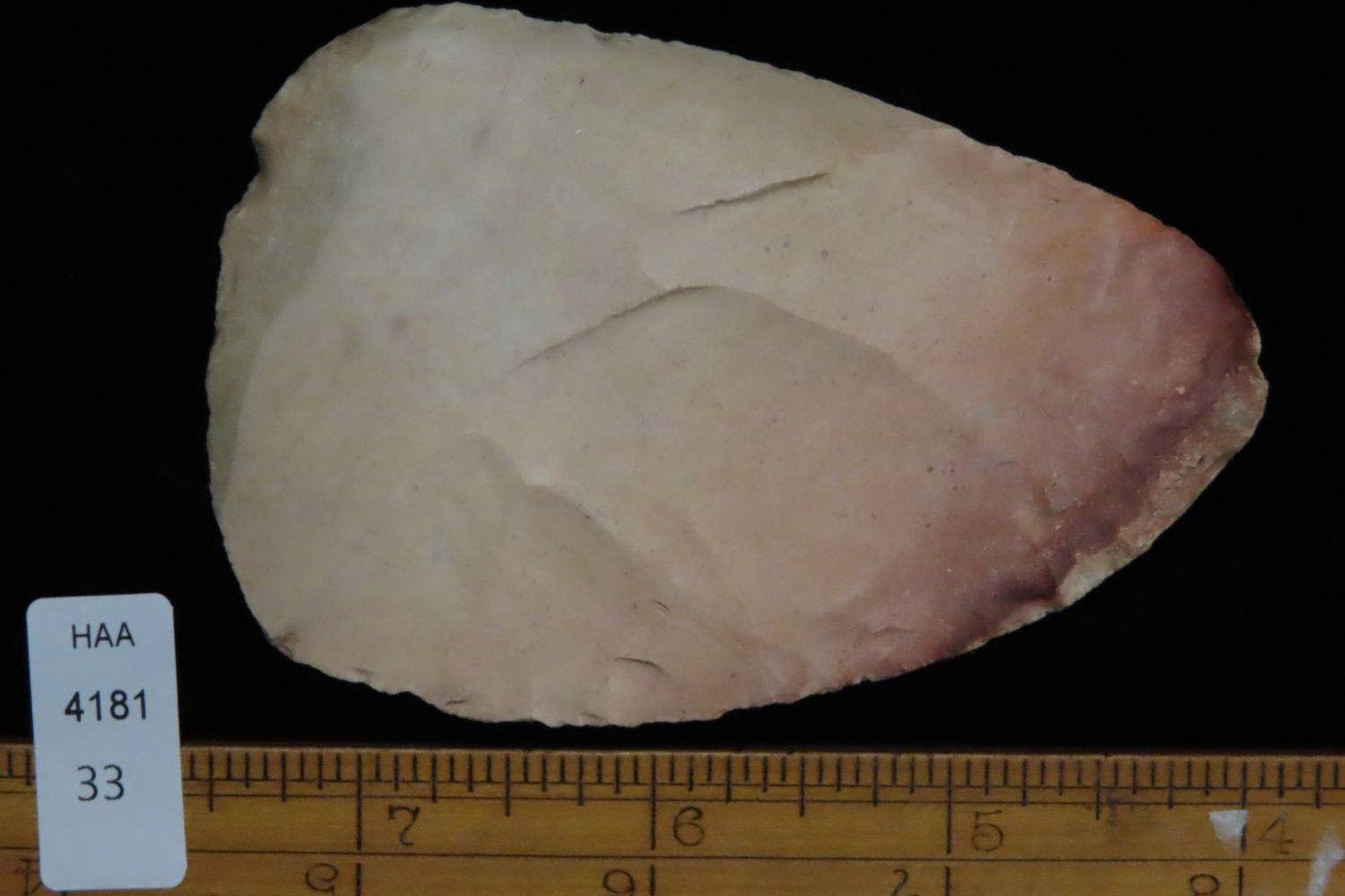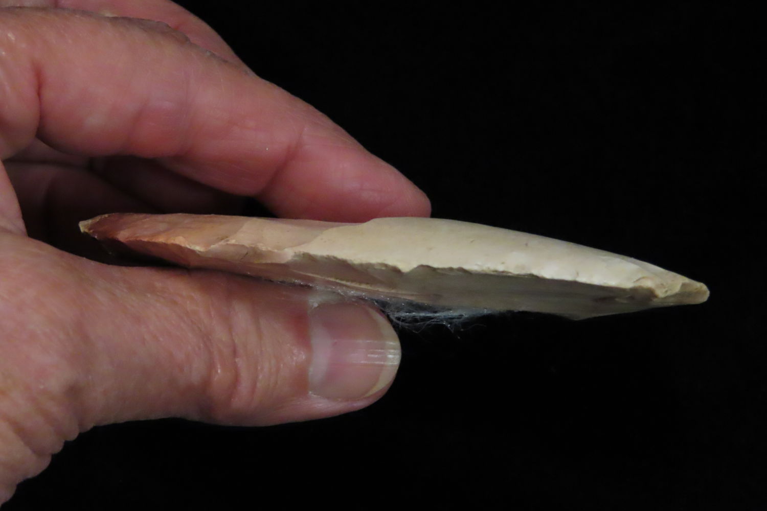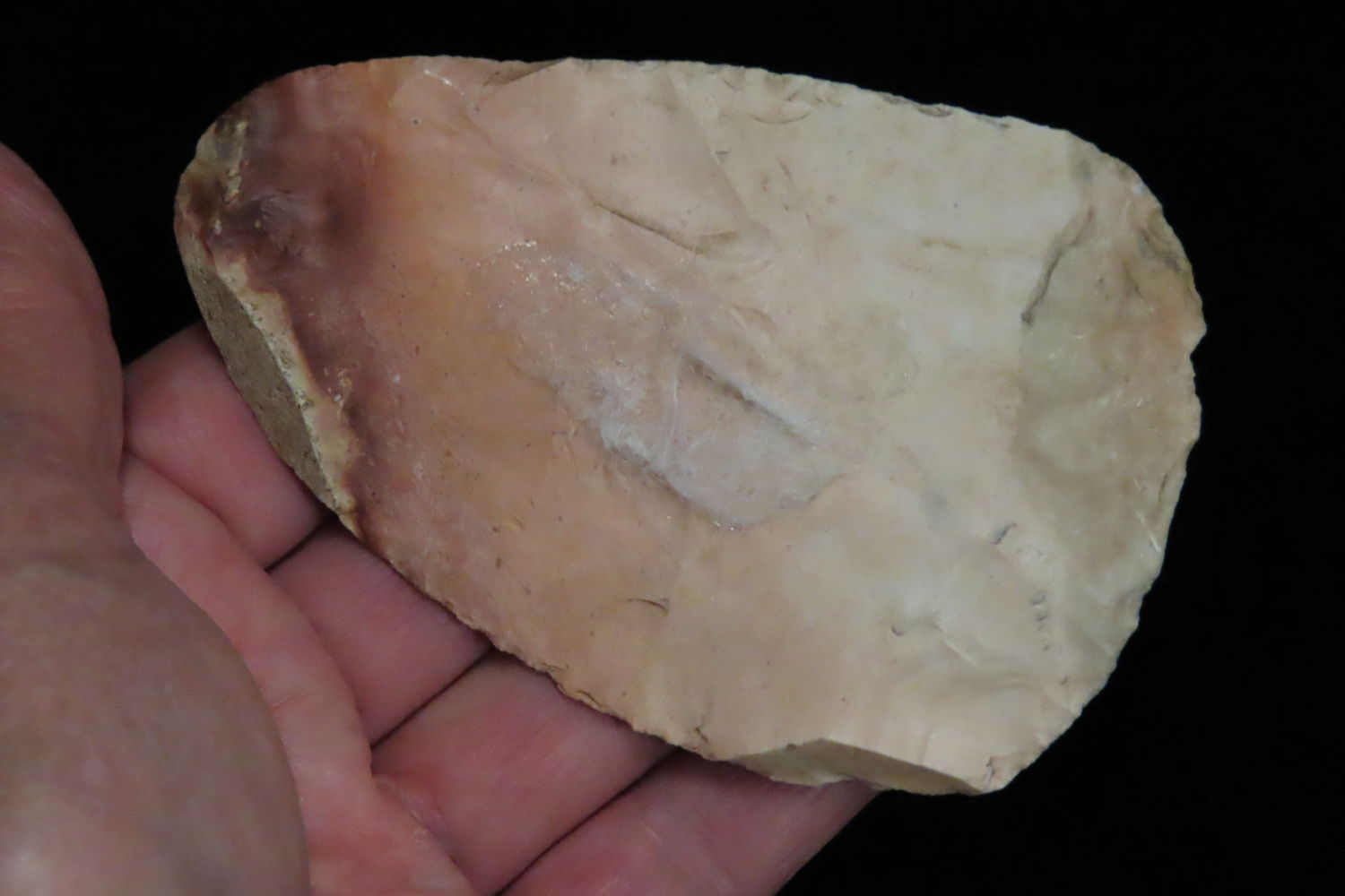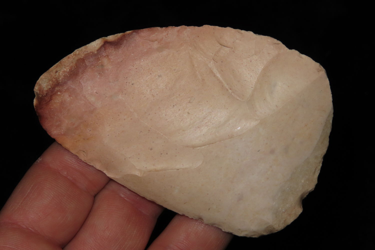 3 5/8″ North Bi-Face Blade found by Ronald and Eileen Hubbard at the Kinderhook, IL hog lot.