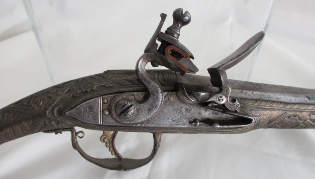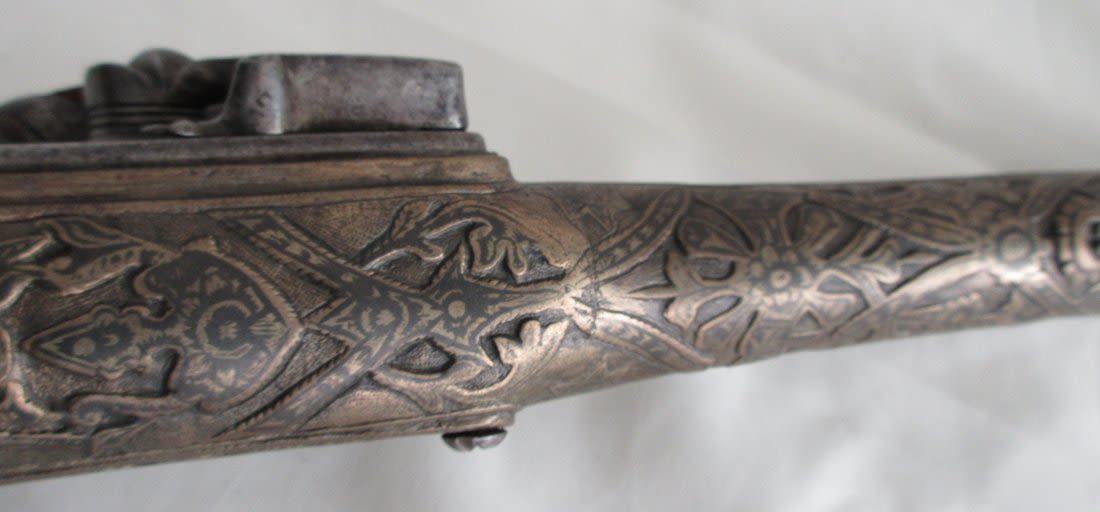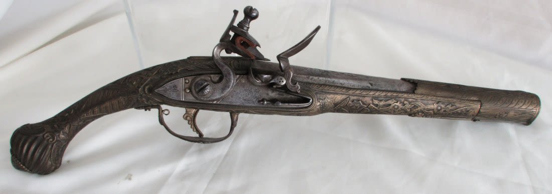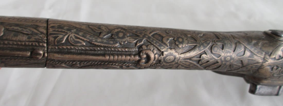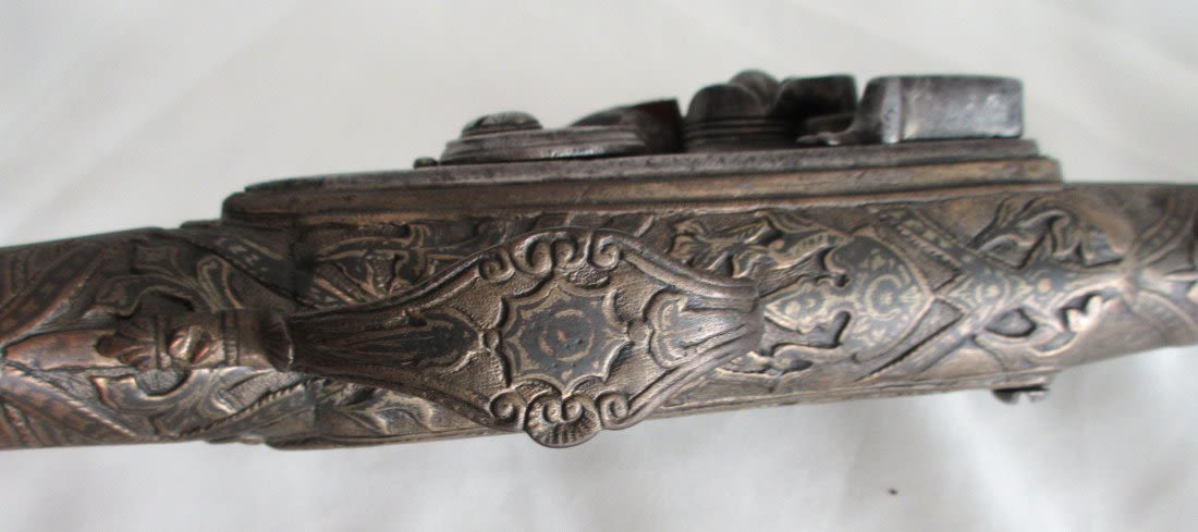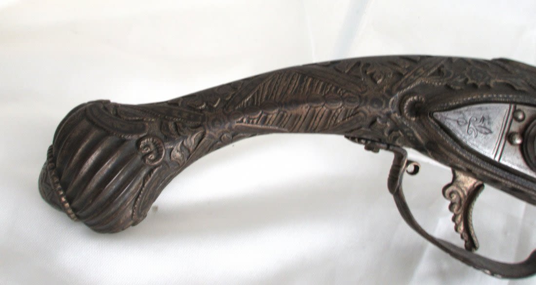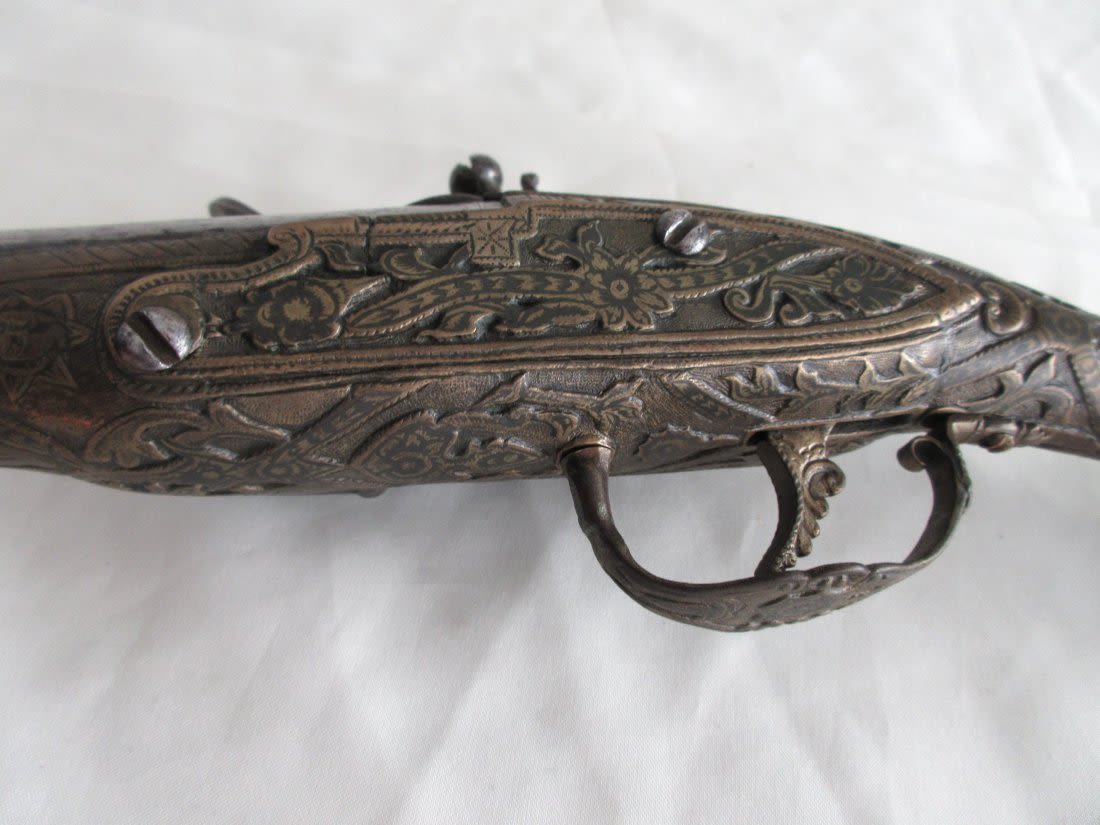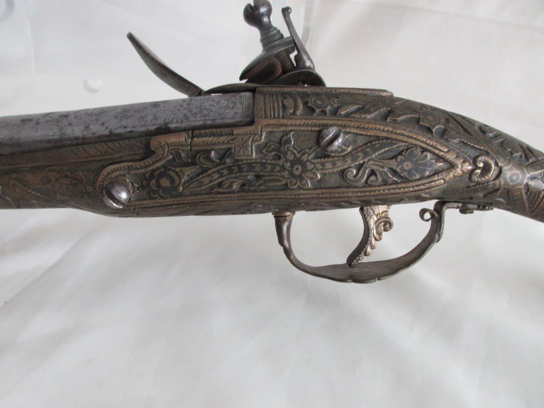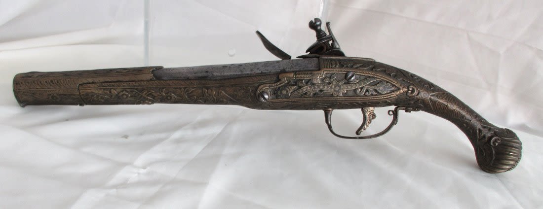 Very elaborate late 1700’s early 1800’s flintlock pistol. Had to be made special for someoneimportant. Most elaborate and great condition.