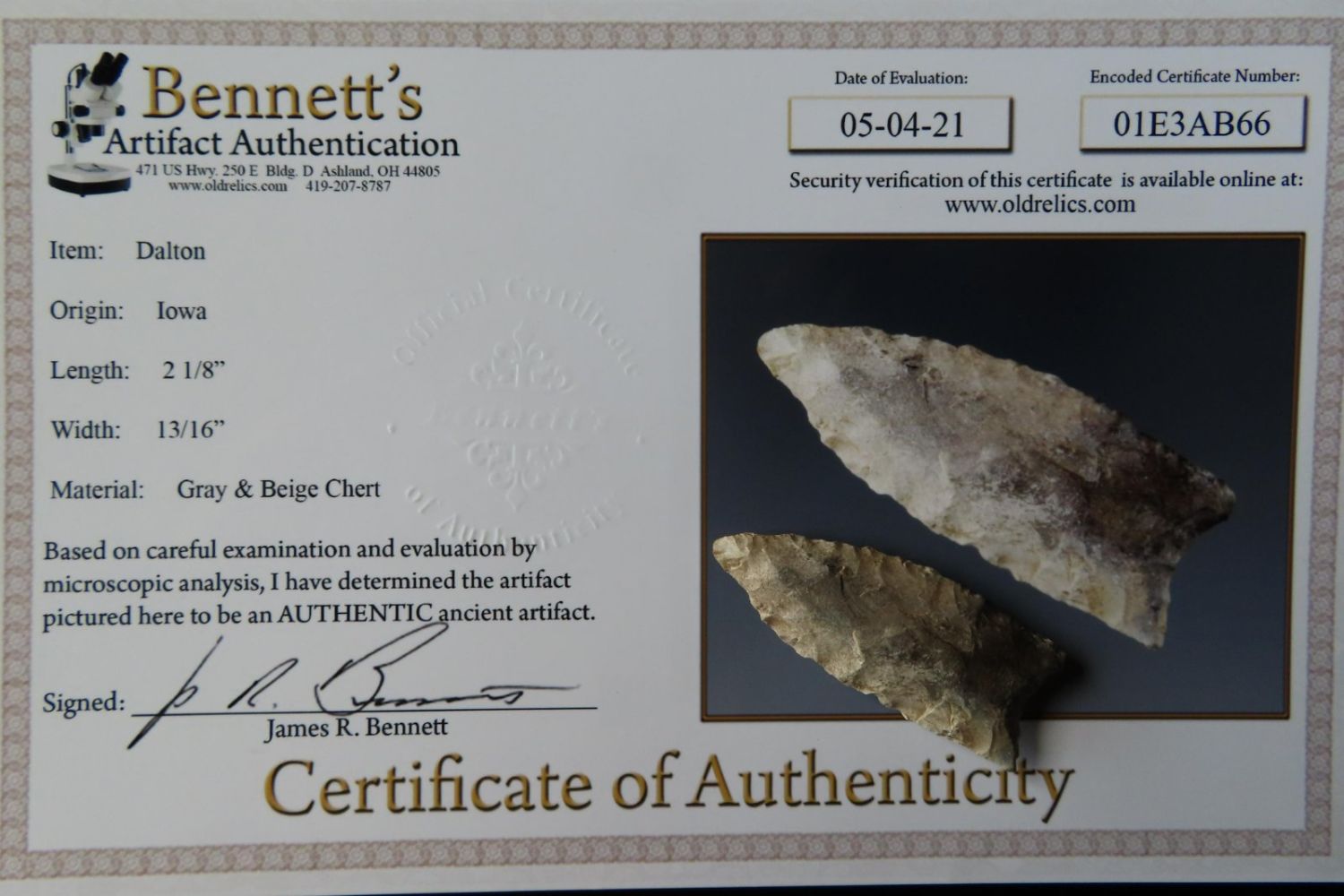 2 1/8" Avon Dalton Bennett COA from Iowa