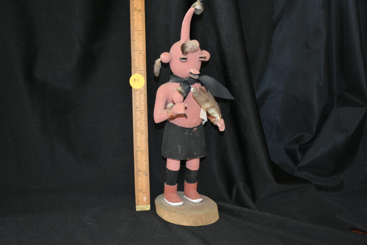 Hopi Mudhead kachina 9-3/4” with feathers