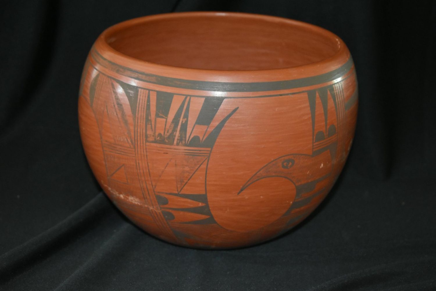 large, red Maricopa pot by Stella Huma, with eagle