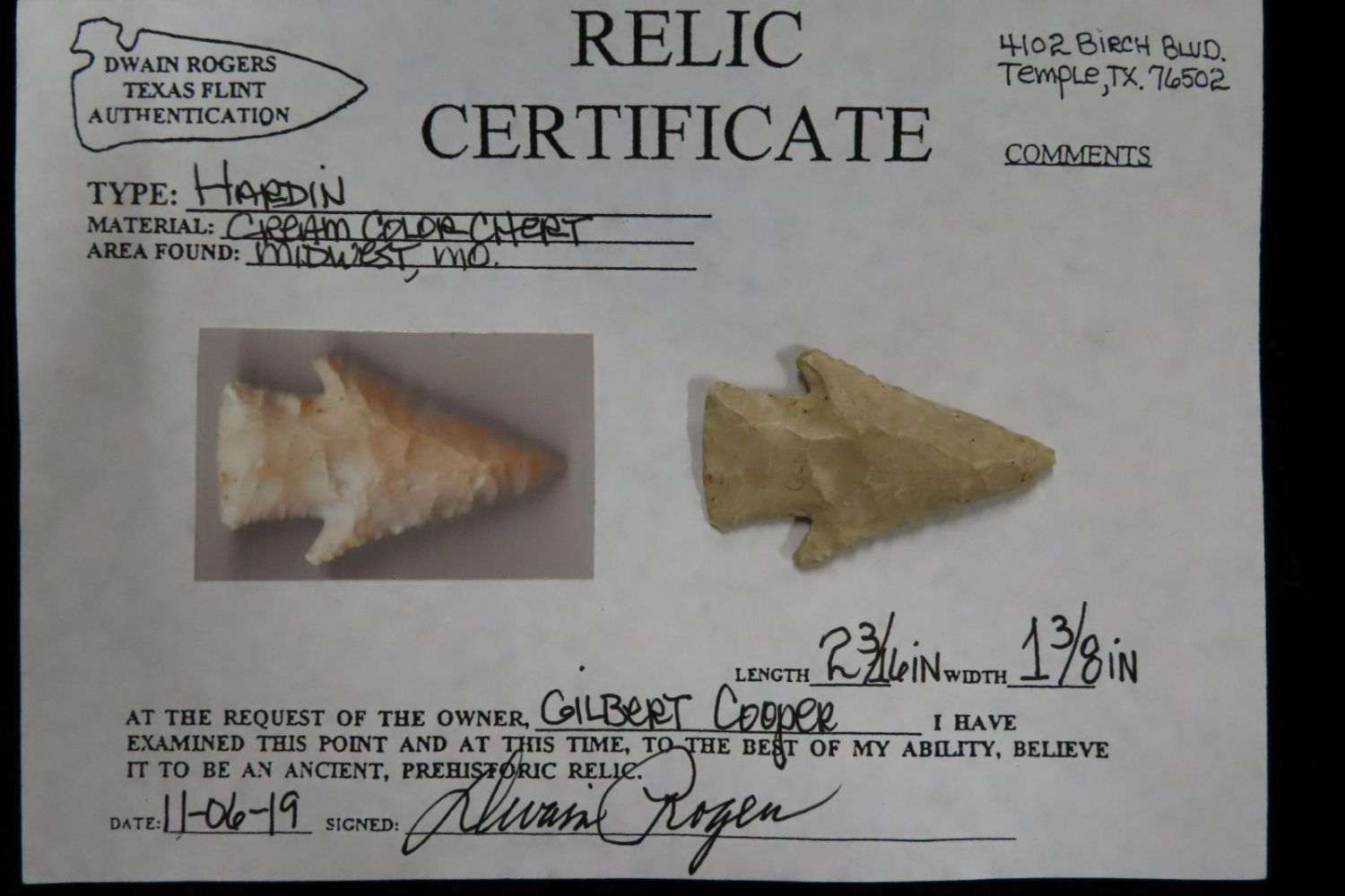 2 3/16" Hardin Rogers COA Midwest MO Made of Burlington Chert