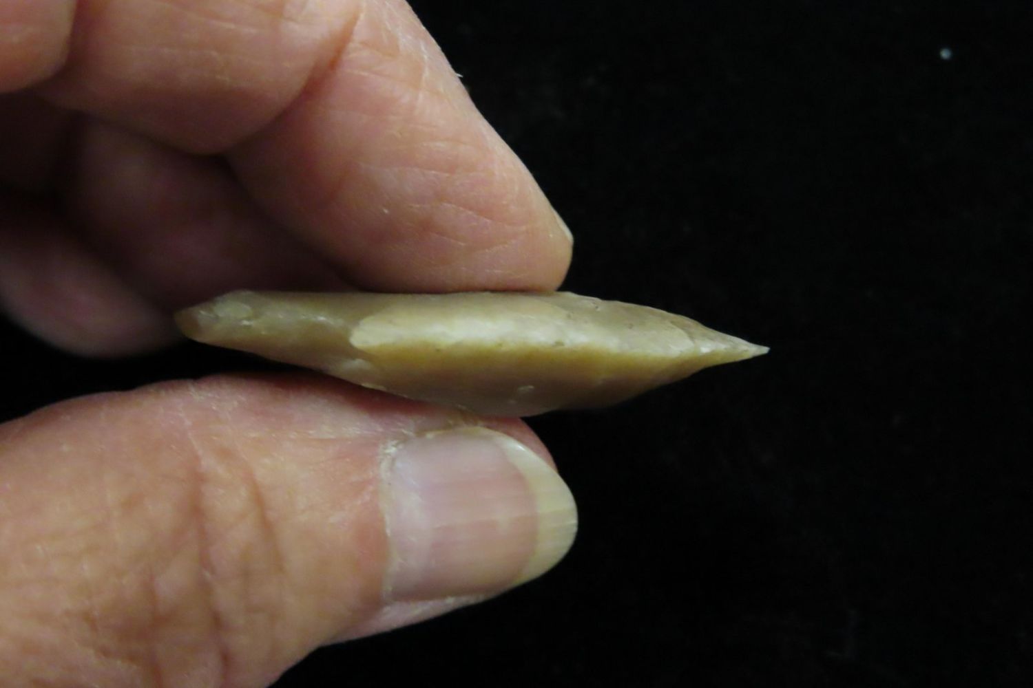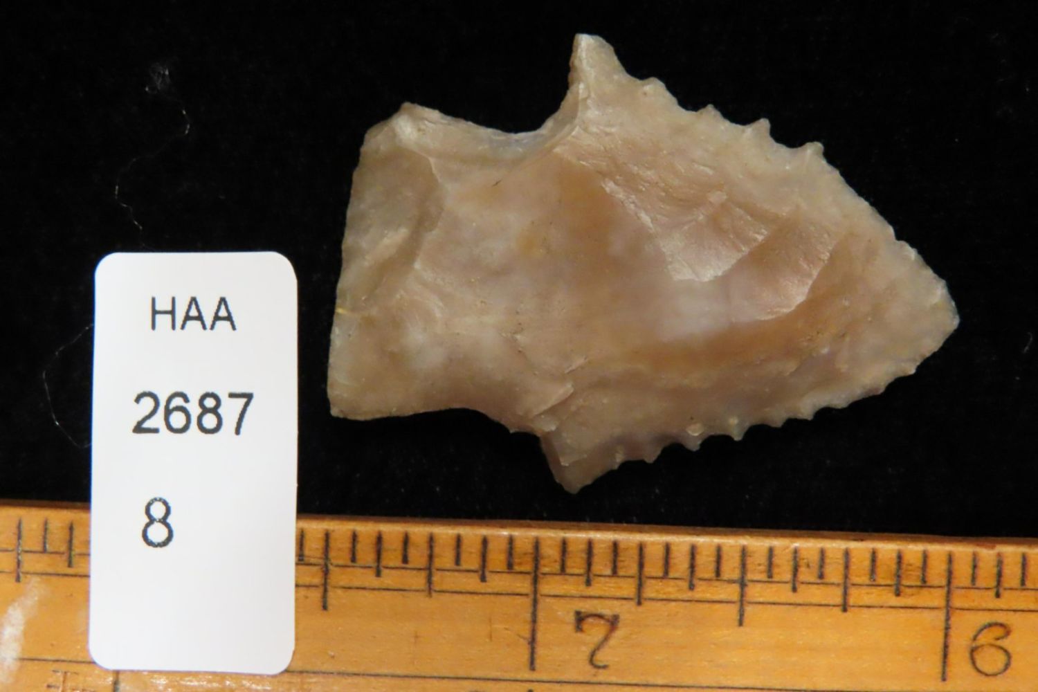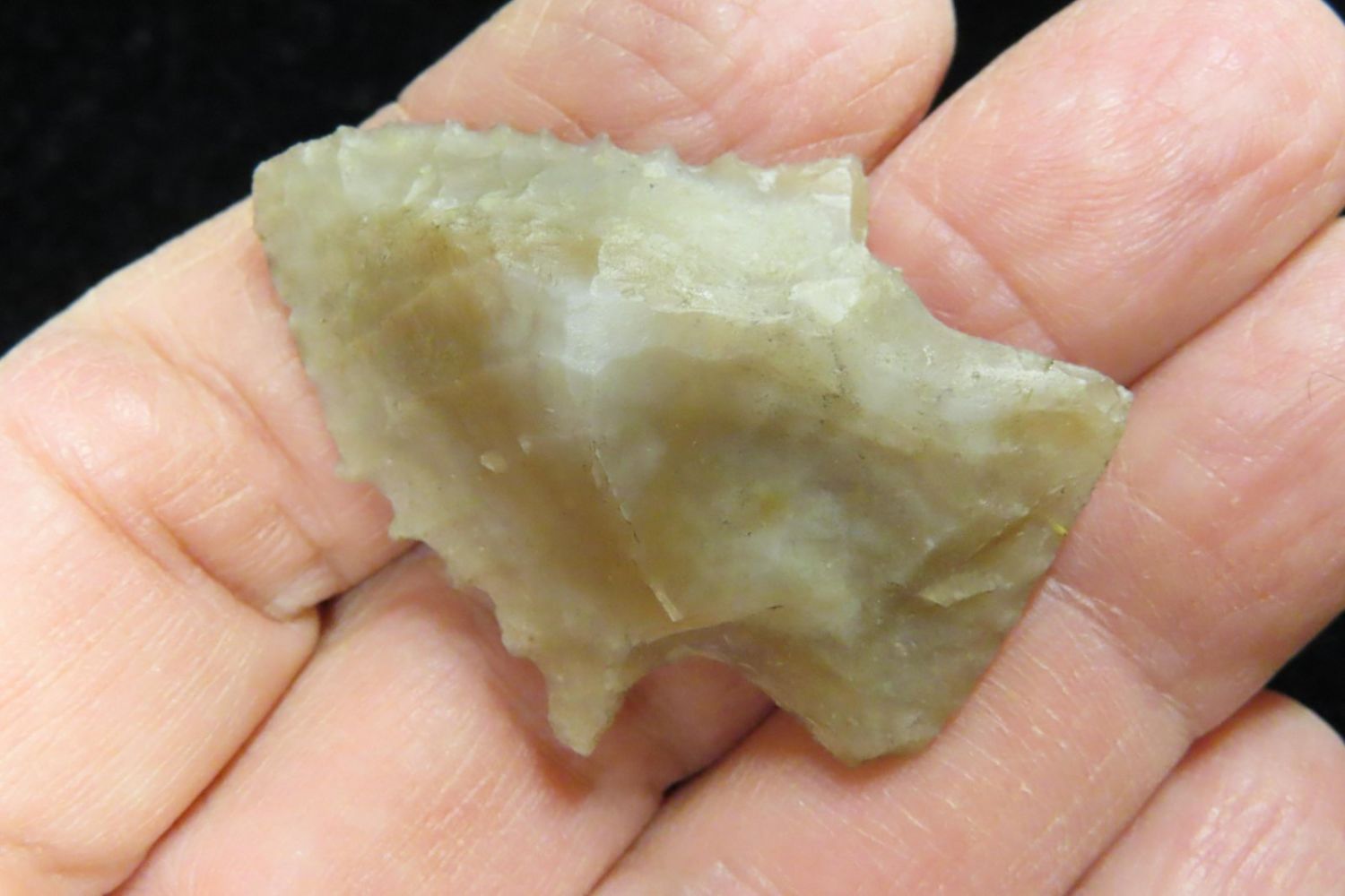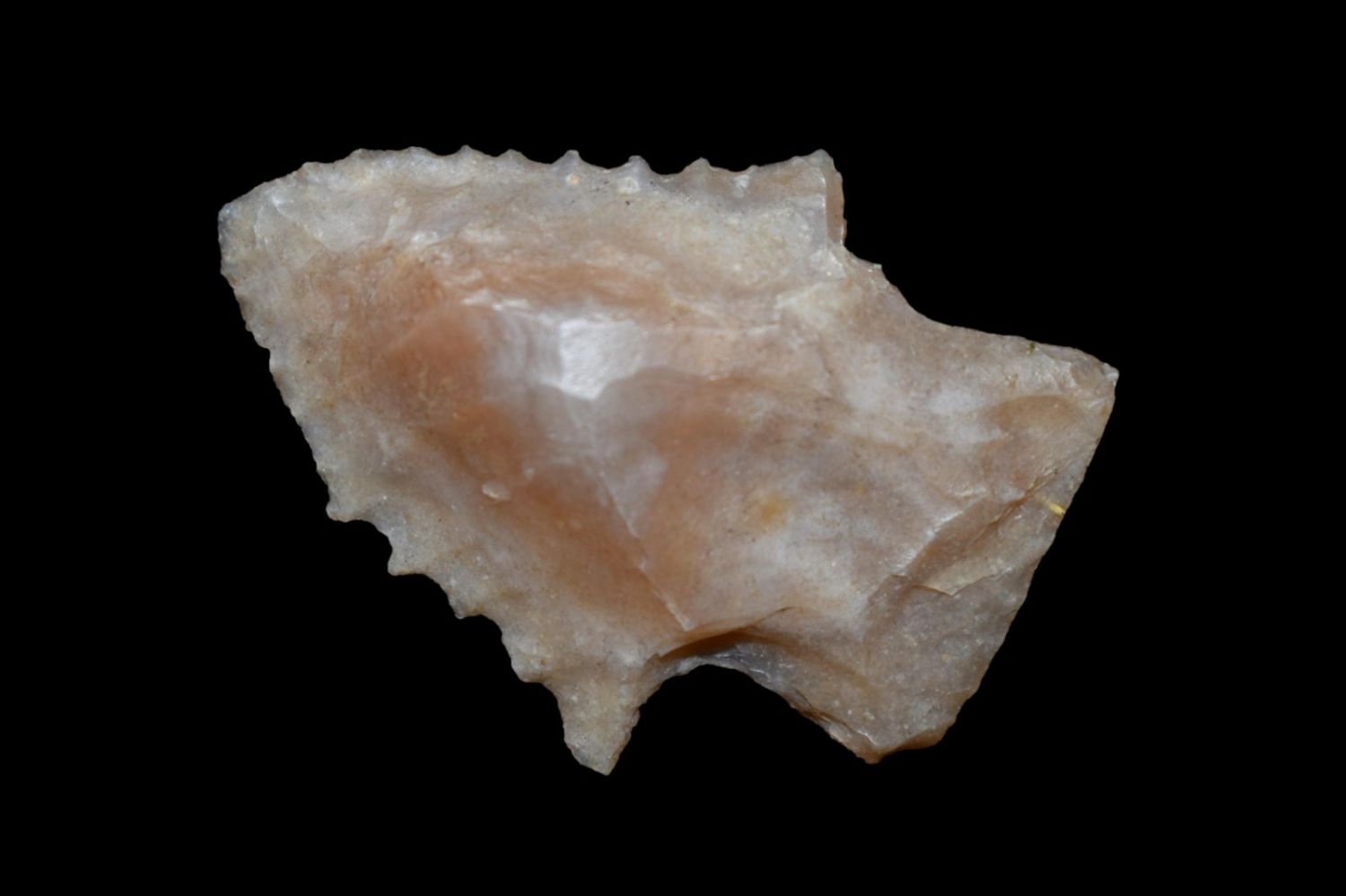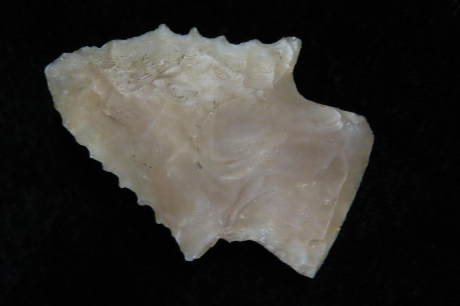 1 5/8" Stemmed point with heavy serrations. Completely Translucent. Made out of Novaculate. Yell Co Arkansas