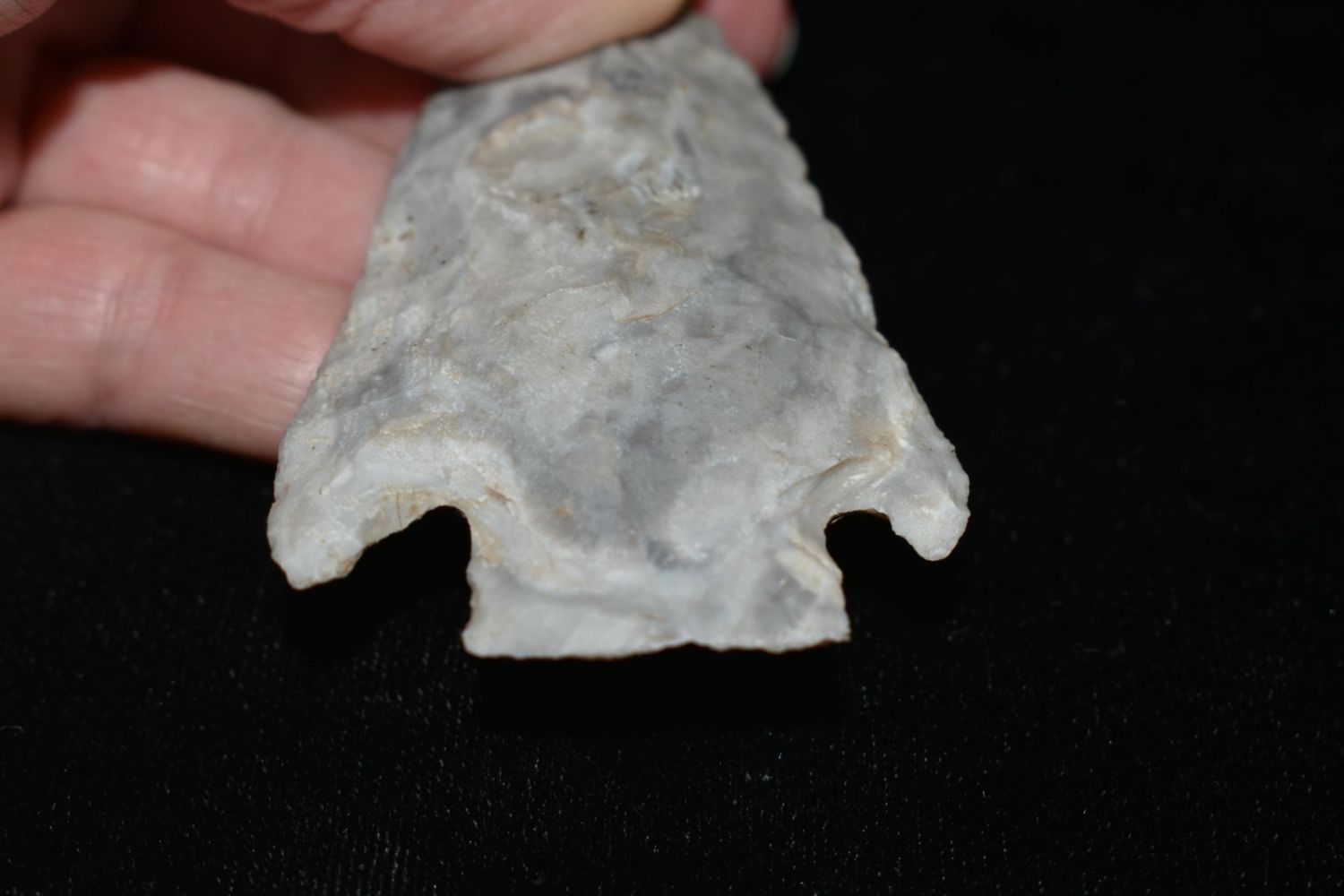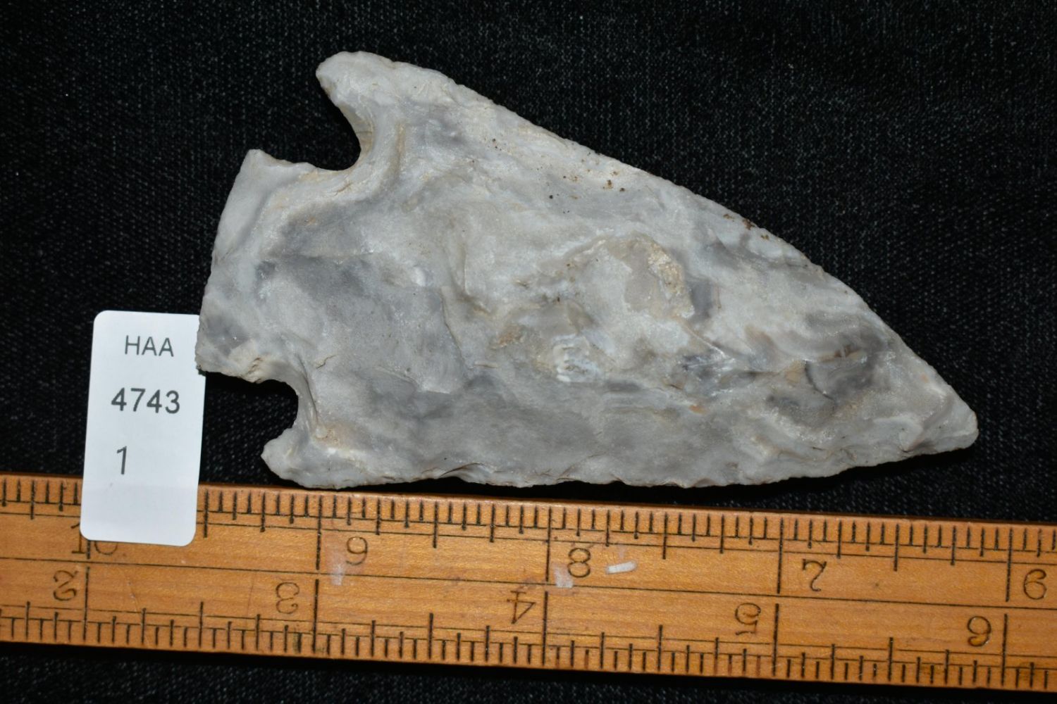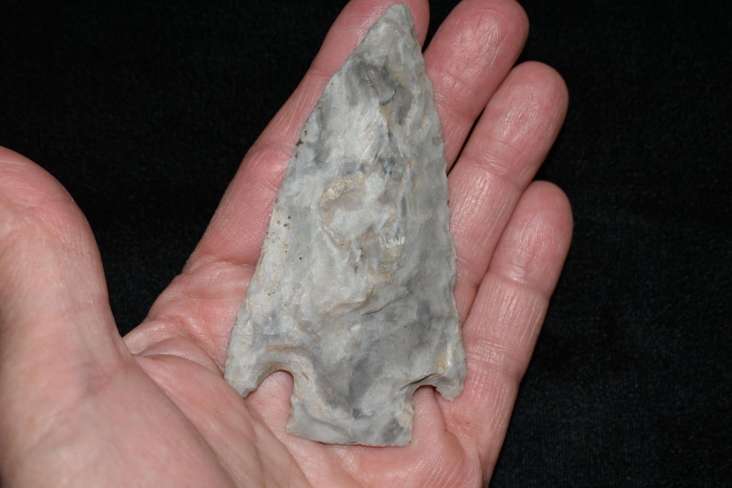 3 3/8" Smith. Mozarkite. Coloful blue and grey. From the James and Joe George Collection. Joe George was an avid collector and finder of Native American artifacts in the greater St Louis Missouri area. Joe collected his entire life. Upon his passing he turned his collection over to his son James. James was also a very avid collector. He enjoyed walking various waterways and attending artifact shows. James is looking forward to passing down his collection to the relic community for caretaking.