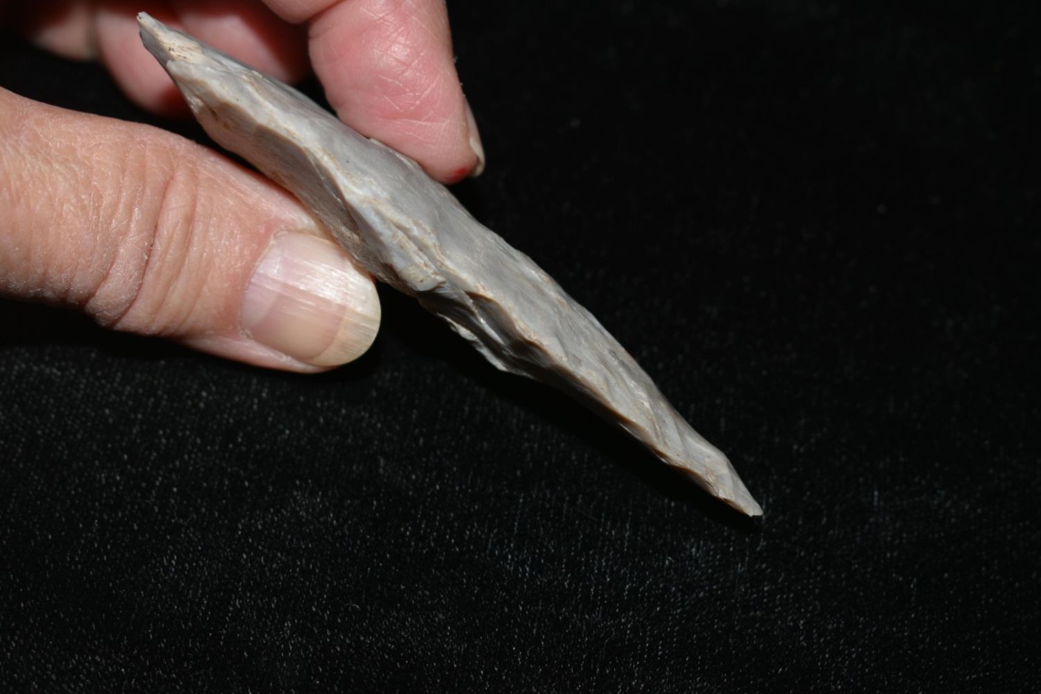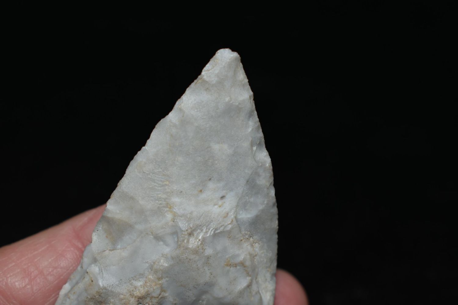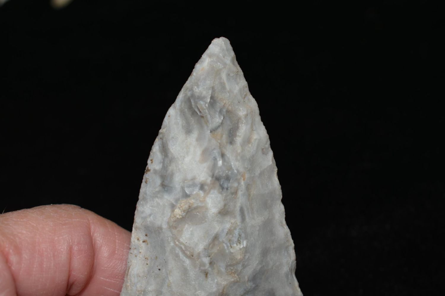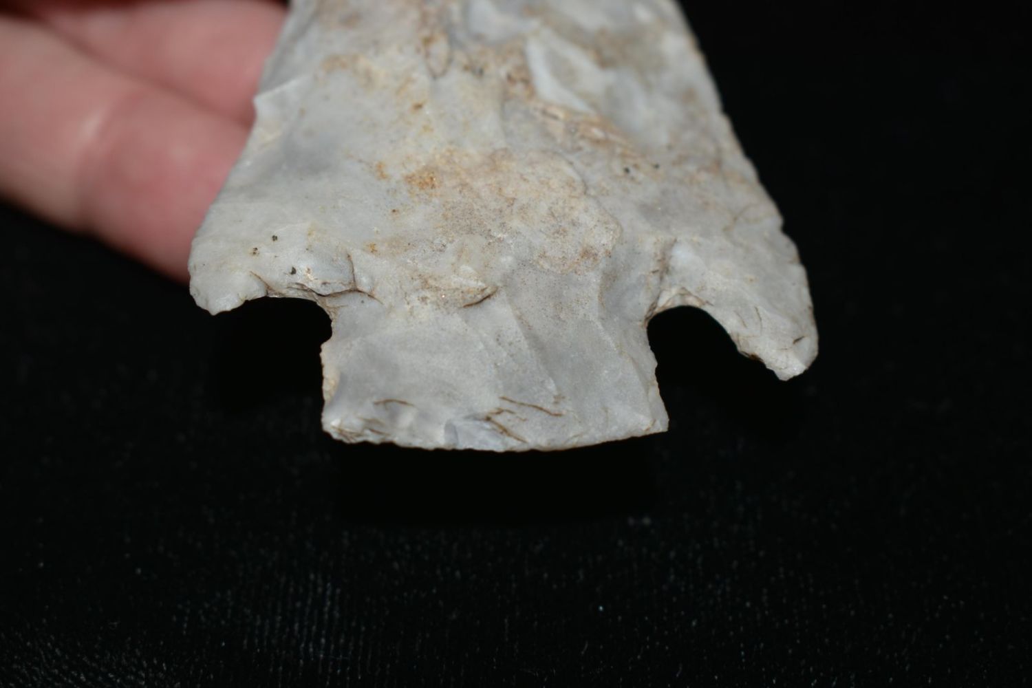 3 3/8" Smith. Mozarkite. Coloful blue and grey. From the James and Joe George Collection. Joe George was an avid collector and finder of Native American artifacts in the greater St Louis Missouri area. Joe collected his entire life. Upon his passing he turned his collection over to his son James. James was also a very avid collector. He enjoyed walking various waterways and attending artifact shows. James is looking forward to passing down his collection to the relic community for caretaking.