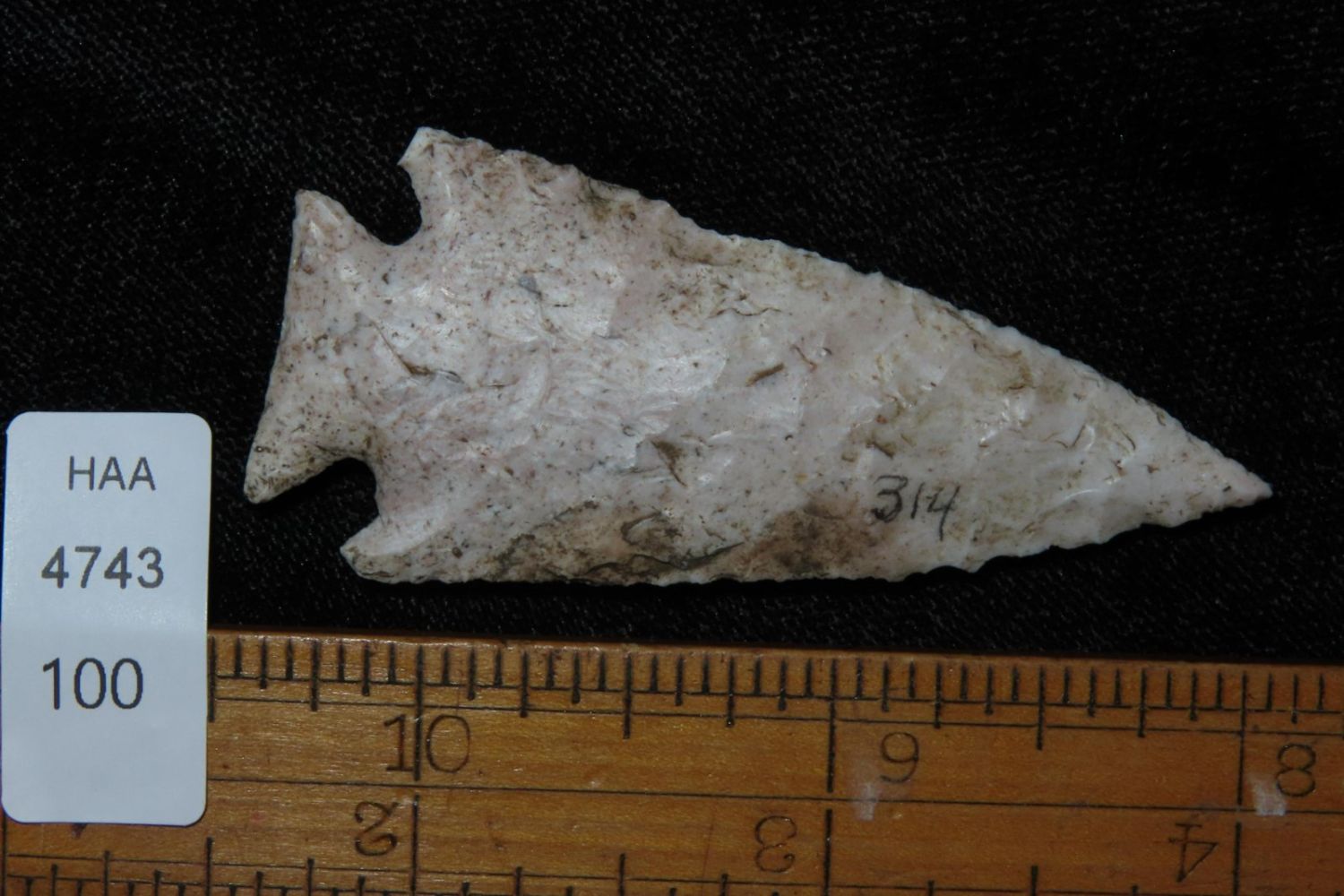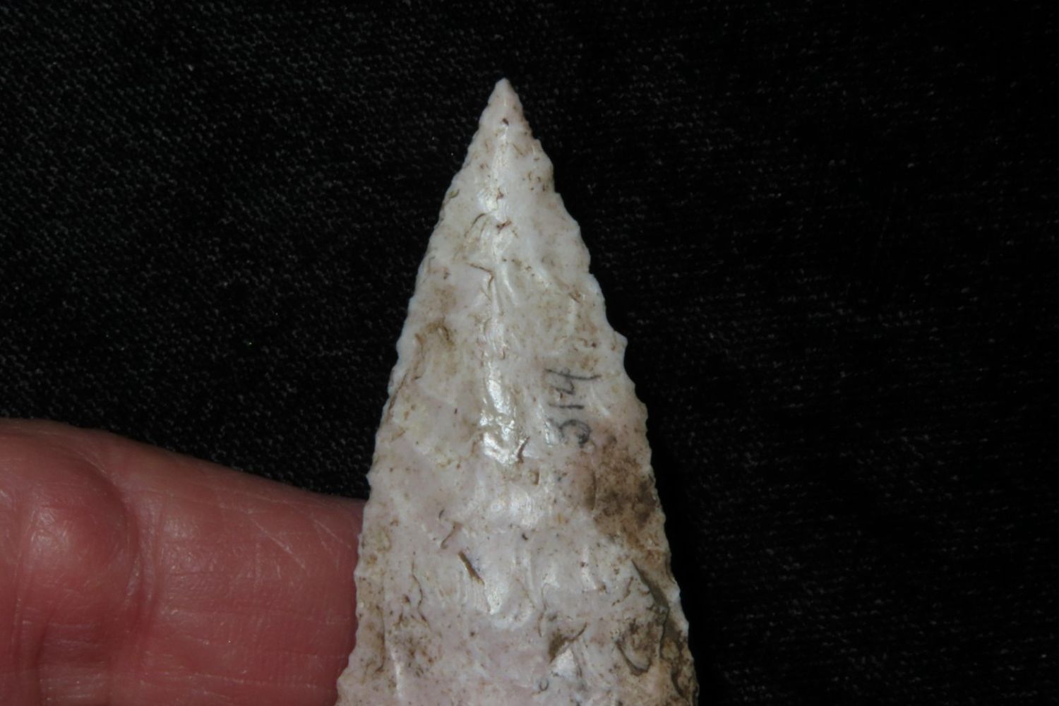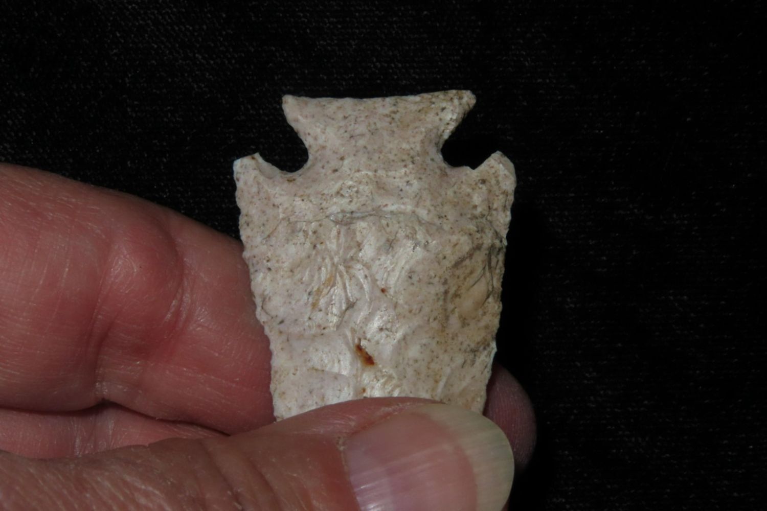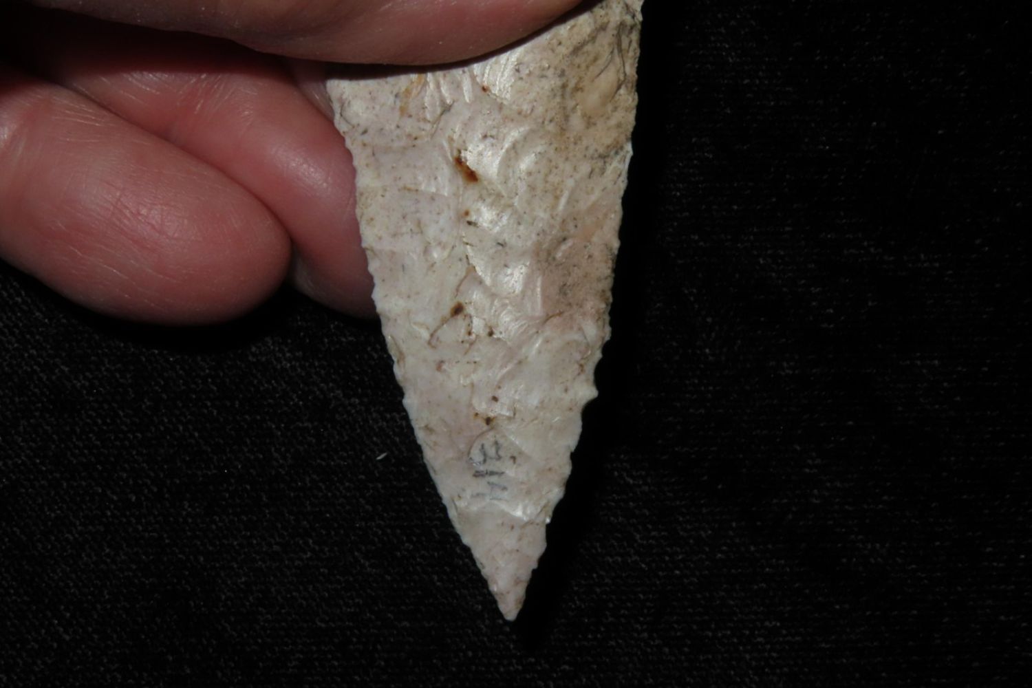 2 3/8" Pelican Lake . Very well made. From the James and Joe George Collection. Joe George was an avid collector and finder of Native American artifacts in the greater St Louis Missouri area. Joe collected his entire life. Upon his passing he turned his collection over to his son James. James was also a very avid collector. He enjoyed walking various waterways and attending artifact shows. James is looking forward to passing down his collection to the relic community for caretaking.