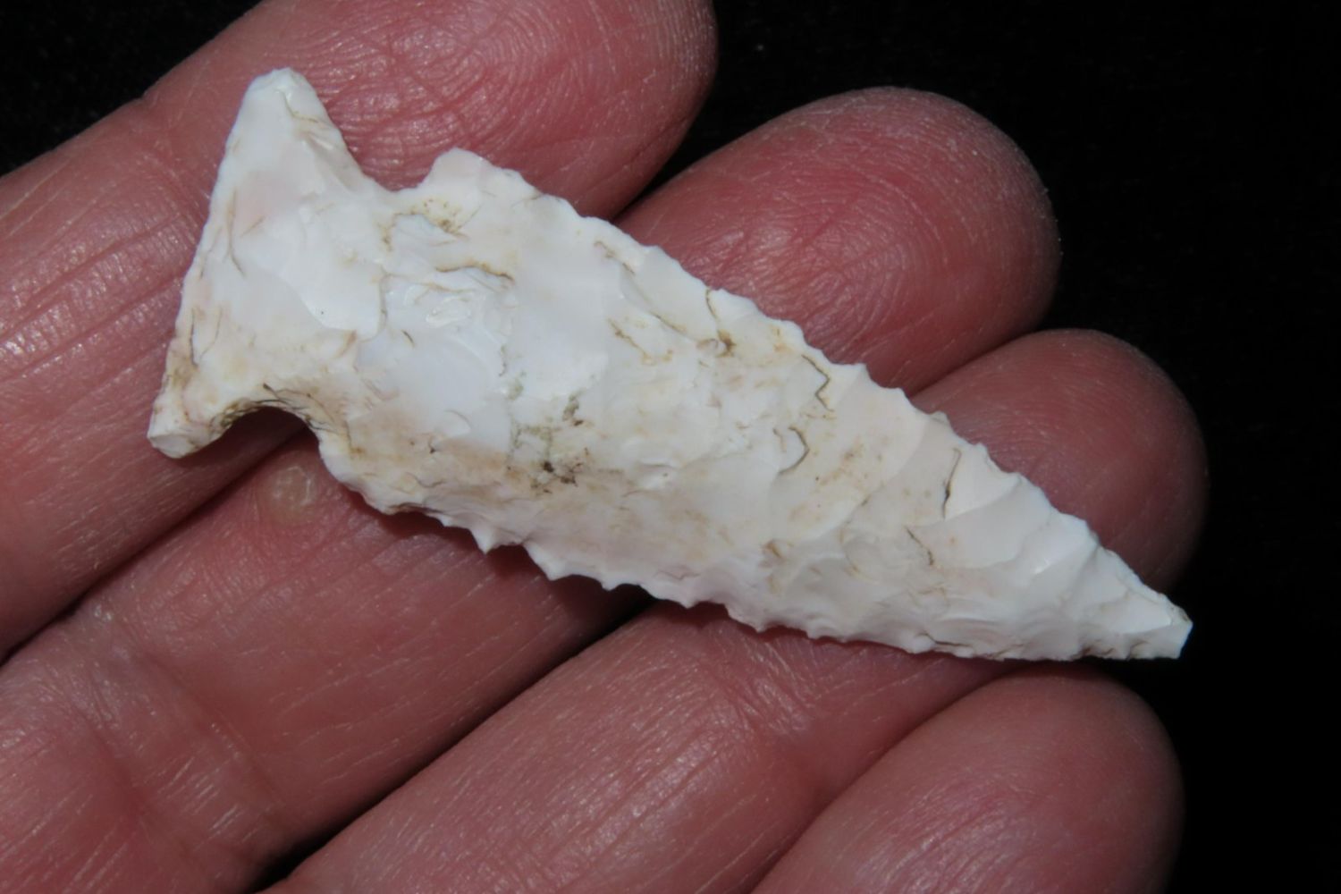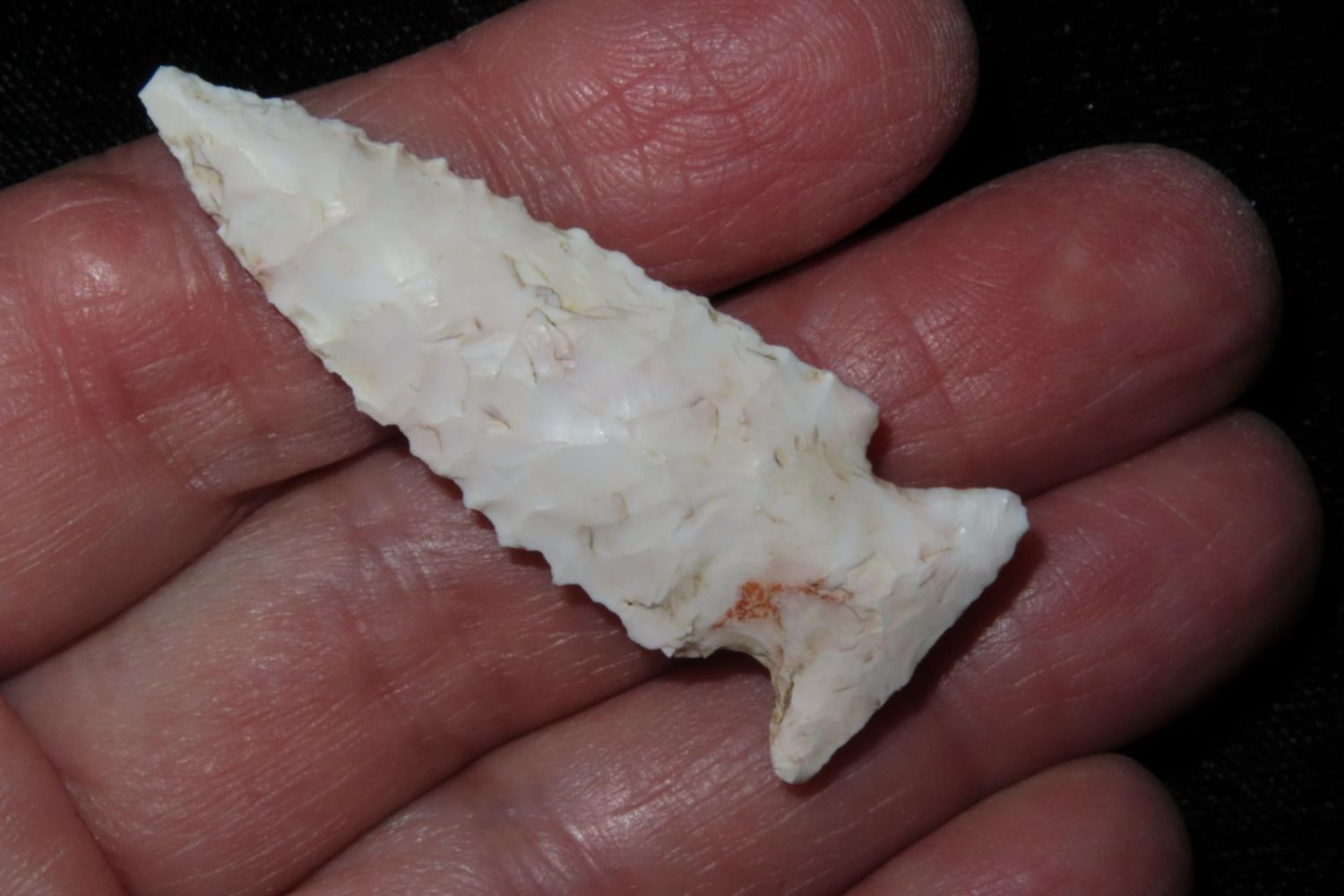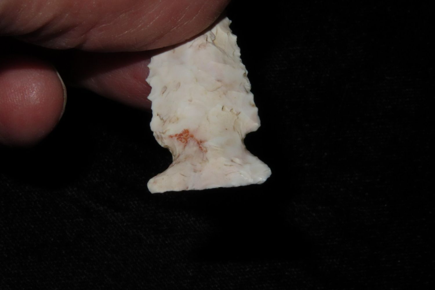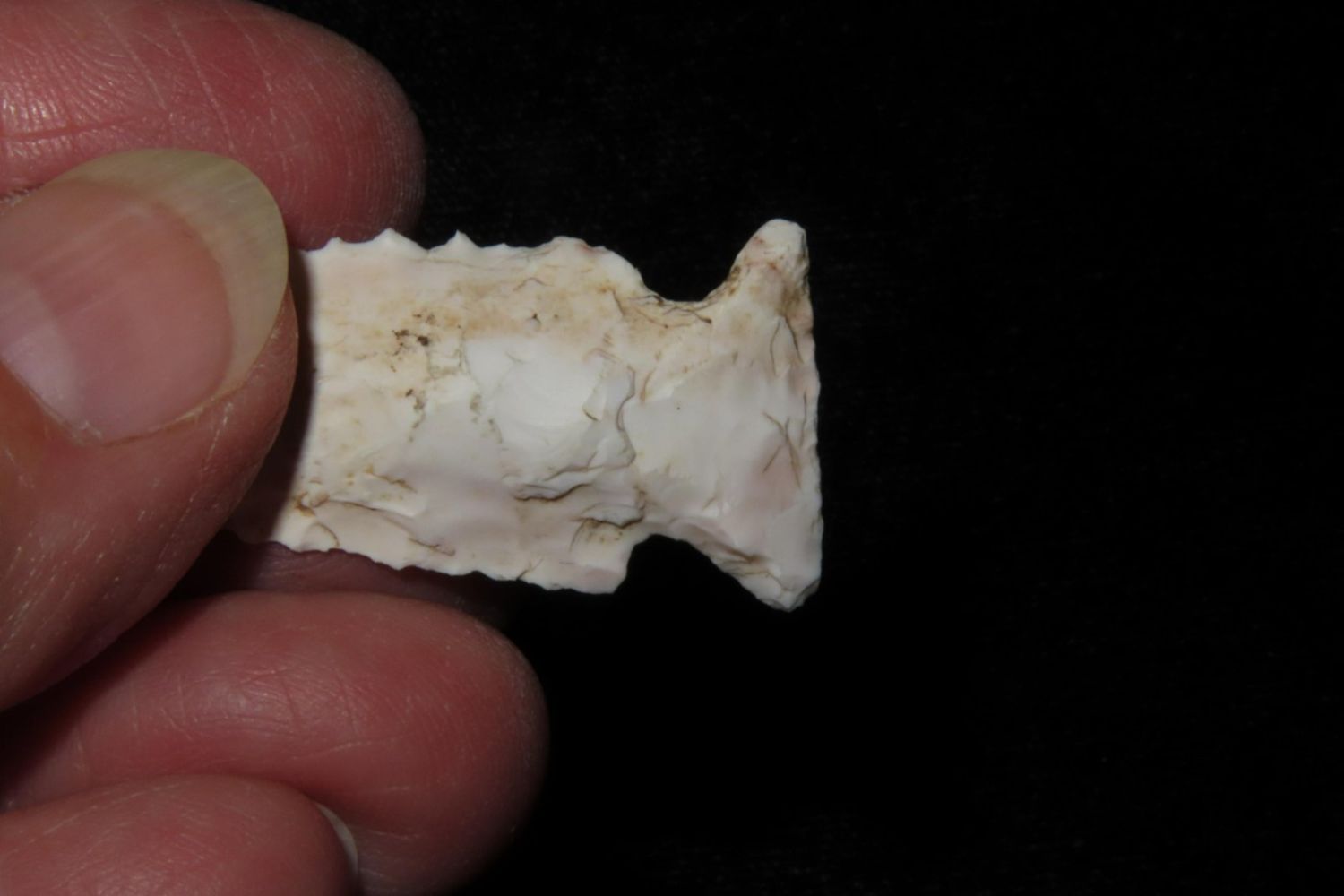 1 7/8" Kings Corner Notch. From the James and Joe George Collection. Joe George was an avid collector and finder of Native American artifacts in the greater St Louis Missouri area. Joe collected his entire life. Upon his passing he turned his collection over to his son James. James was also a very avid collector. He enjoyed walking various waterways and attending artifact shows. James is looking forward to passing down his collection to the relic community for caretaking.