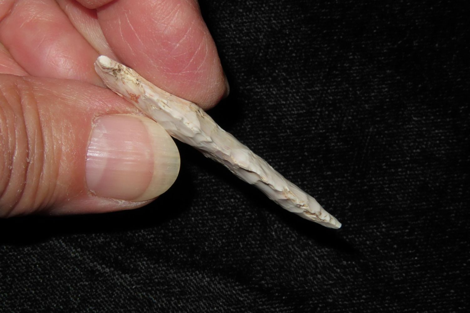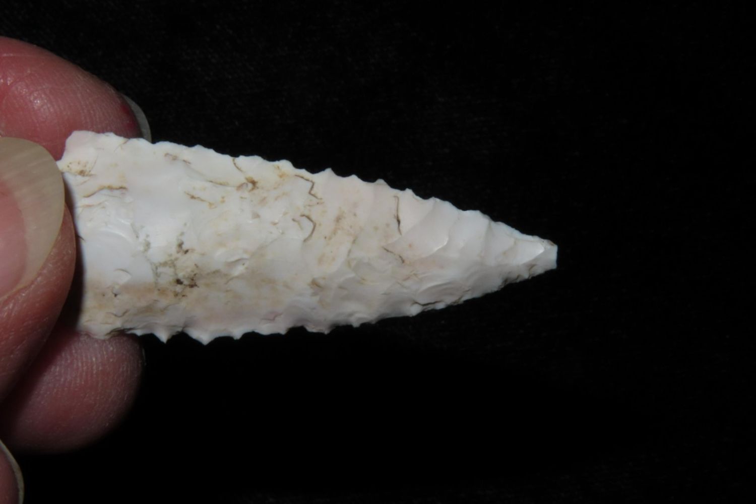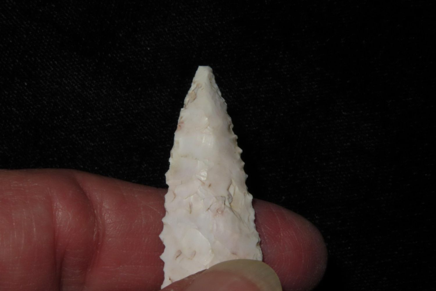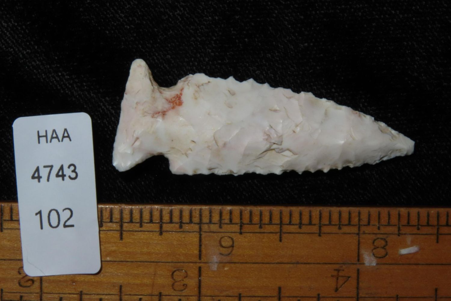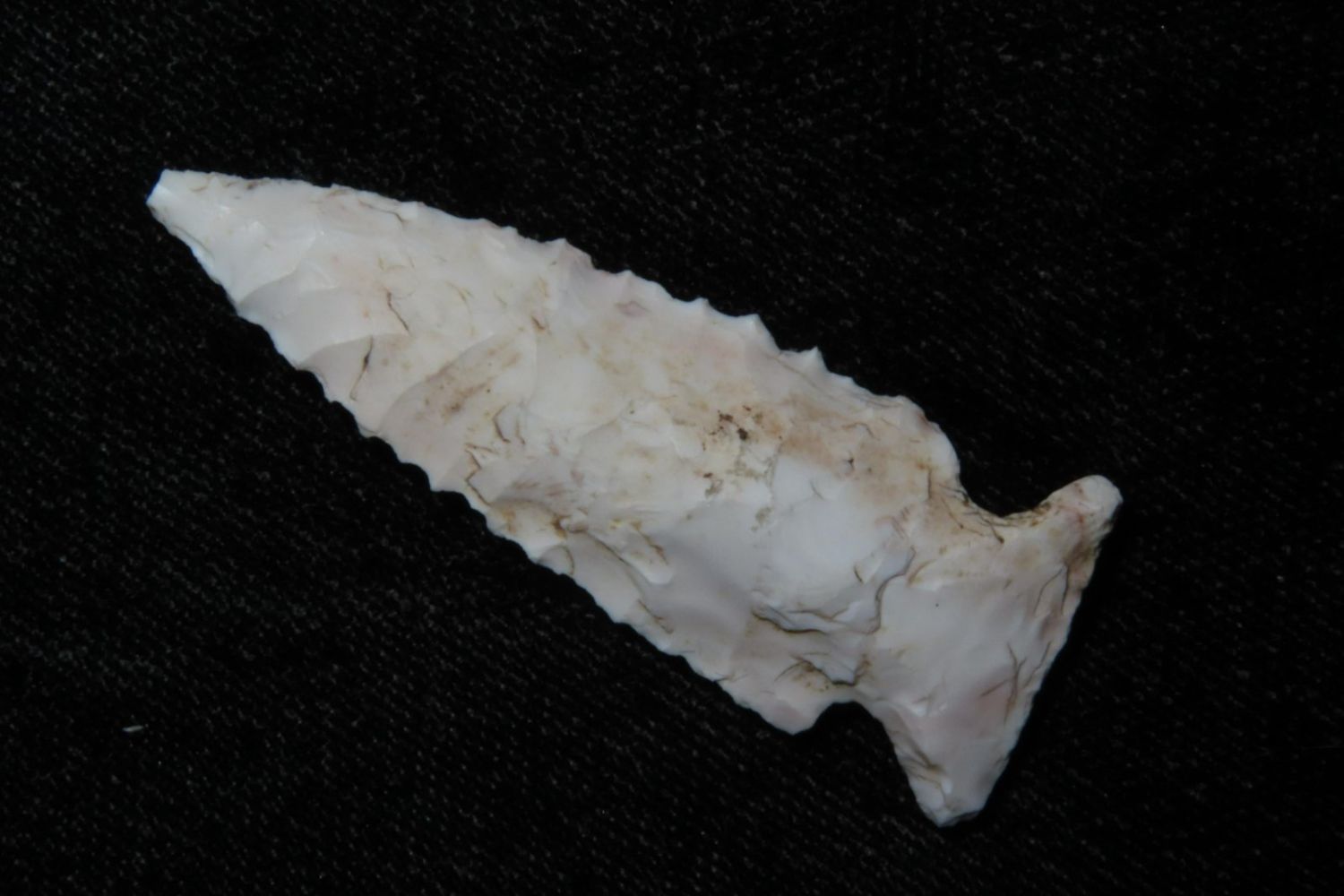 1 7/8" Kings Corner Notch. From the James and Joe George Collection. Joe George was an avid collector and finder of Native American artifacts in the greater St Louis Missouri area. Joe collected his entire life. Upon his passing he turned his collection over to his son James. James was also a very avid collector. He enjoyed walking various waterways and attending artifact shows. James is looking forward to passing down his collection to the relic community for caretaking.