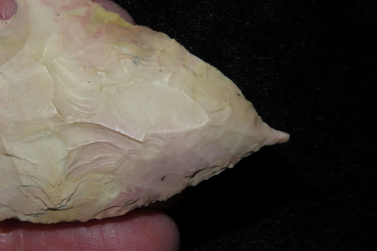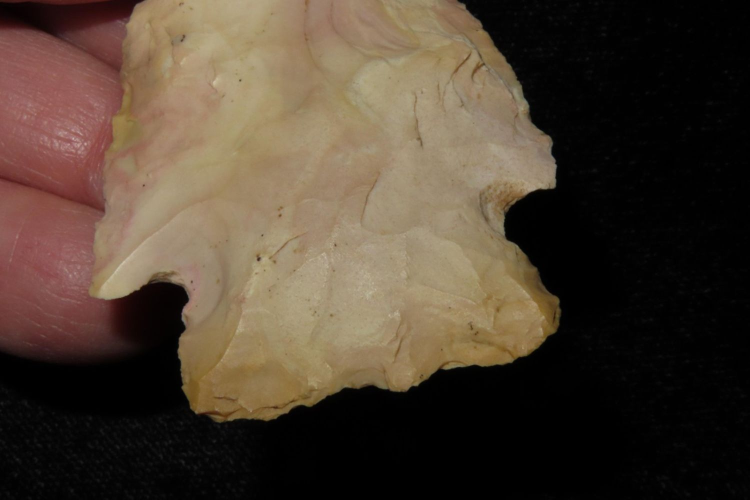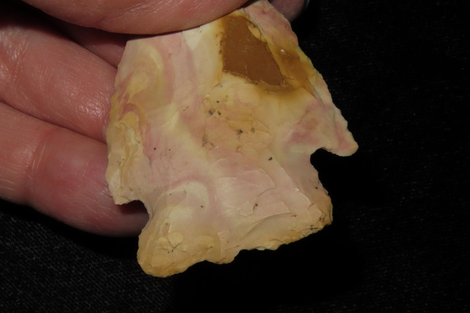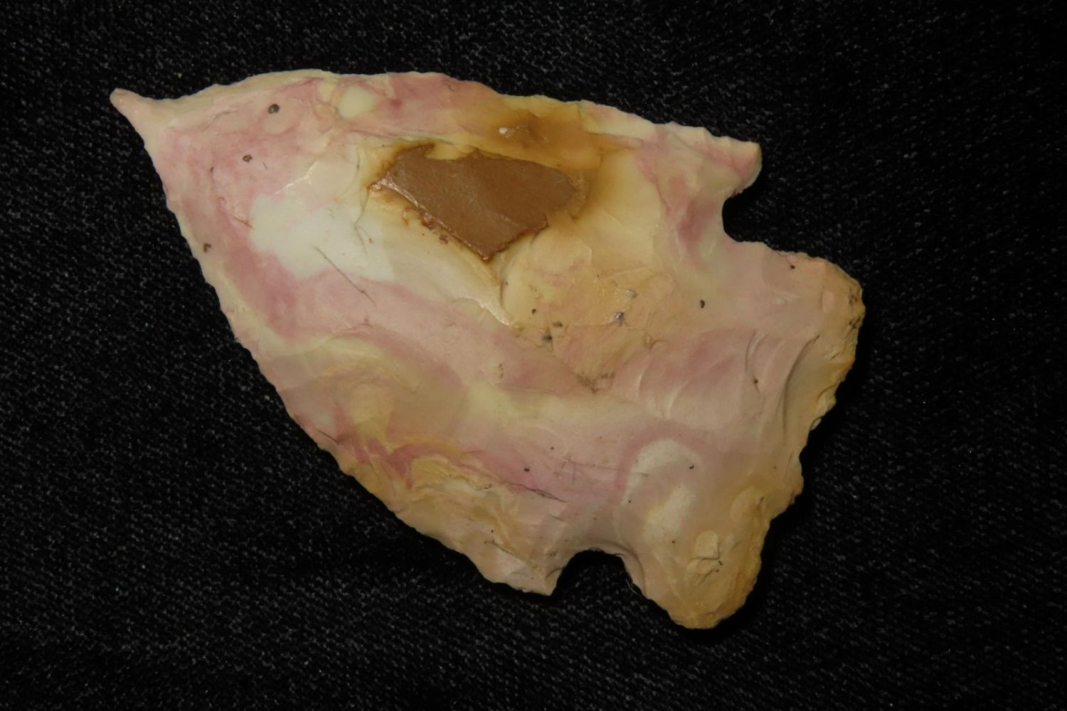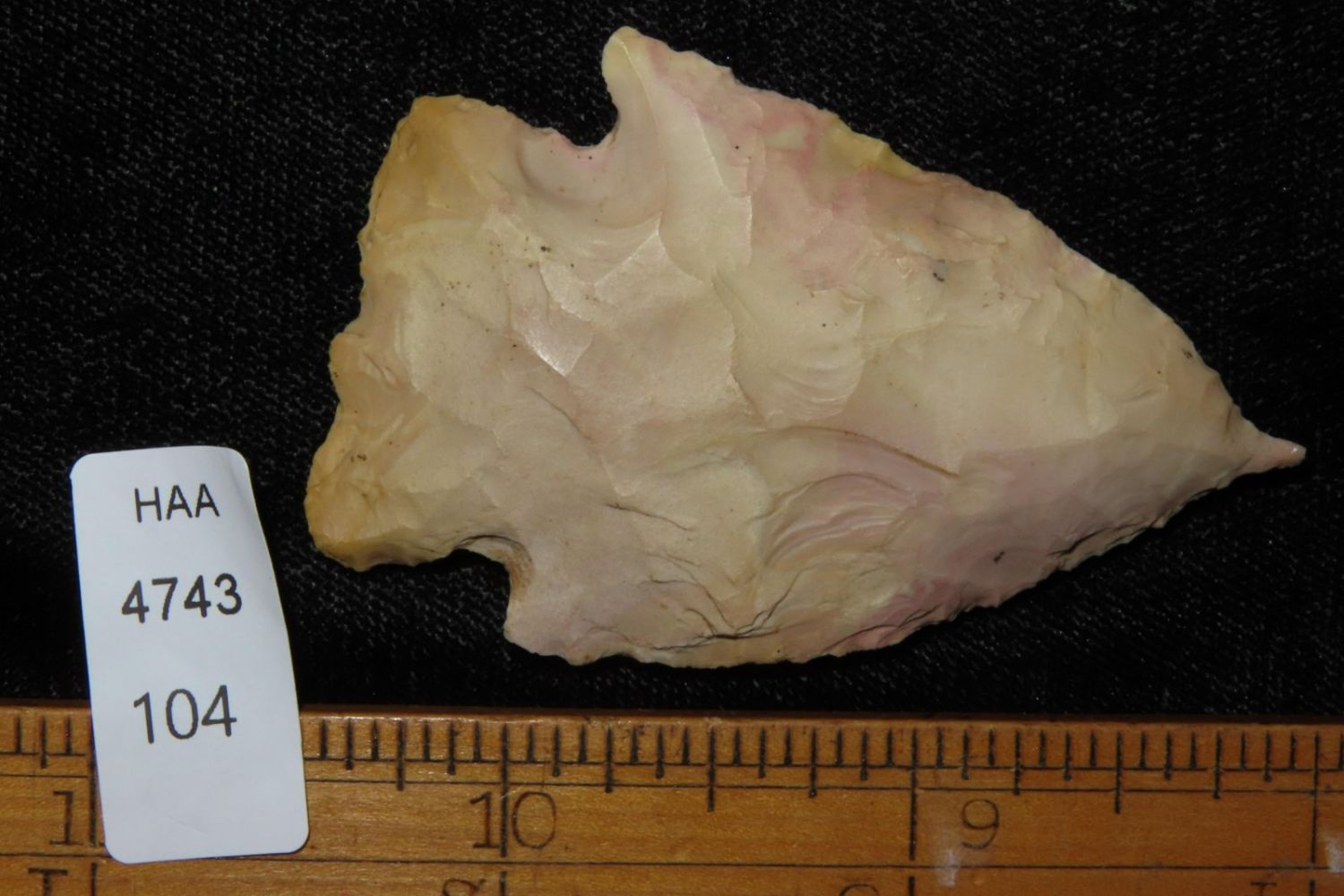 2 3/8" Needle Tipped Afton with good color. From the James and Joe George Collection. Joe George was an avid collector and finder of Native American artifacts in the greater St Louis Missouri area. Joe collected his entire life. Upon his passing he turned his collection over to his son James. James was also a very avid collector. He enjoyed walking various waterways and attending artifact shows. James is looking forward to passing down his collection to the relic community for caretaking.