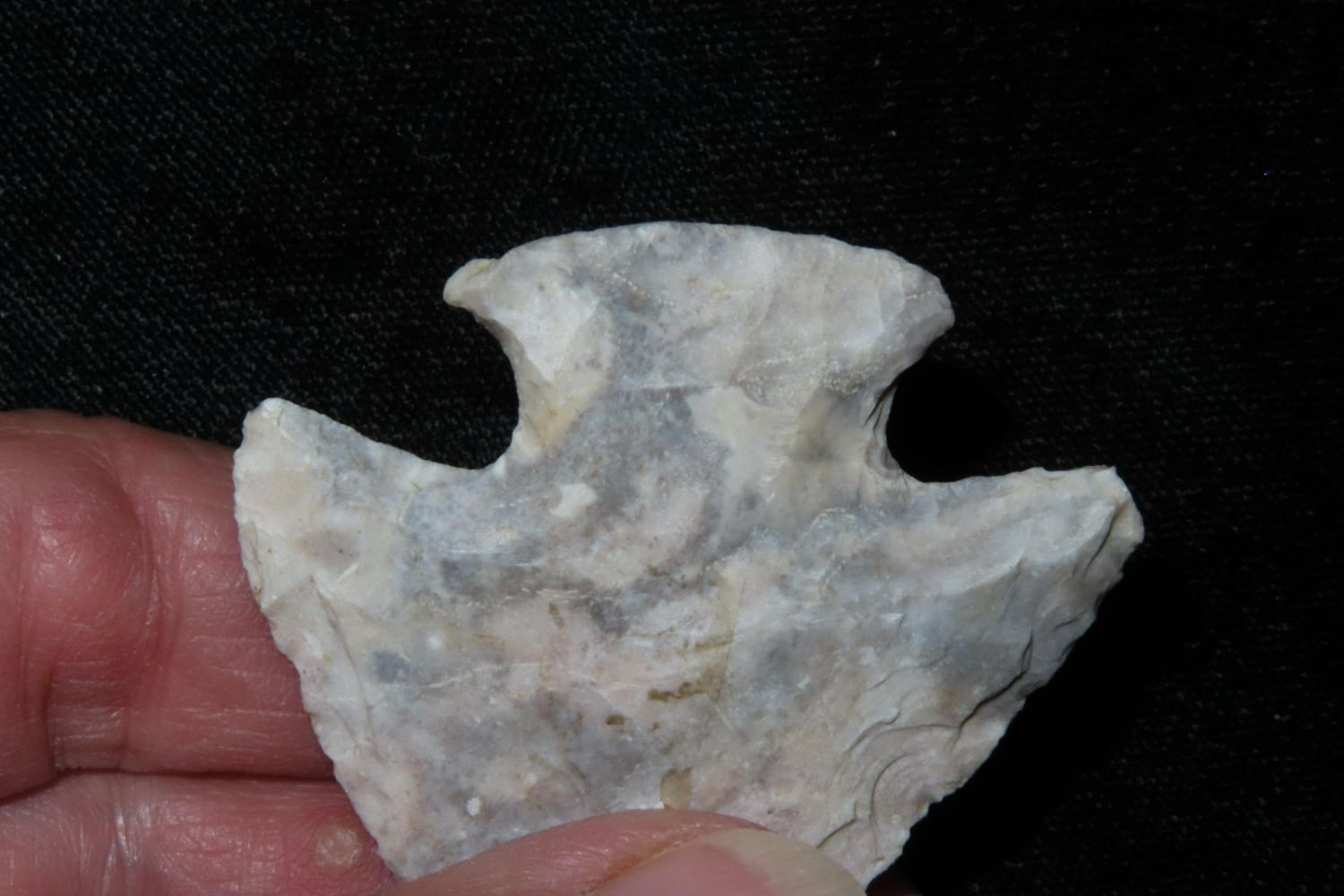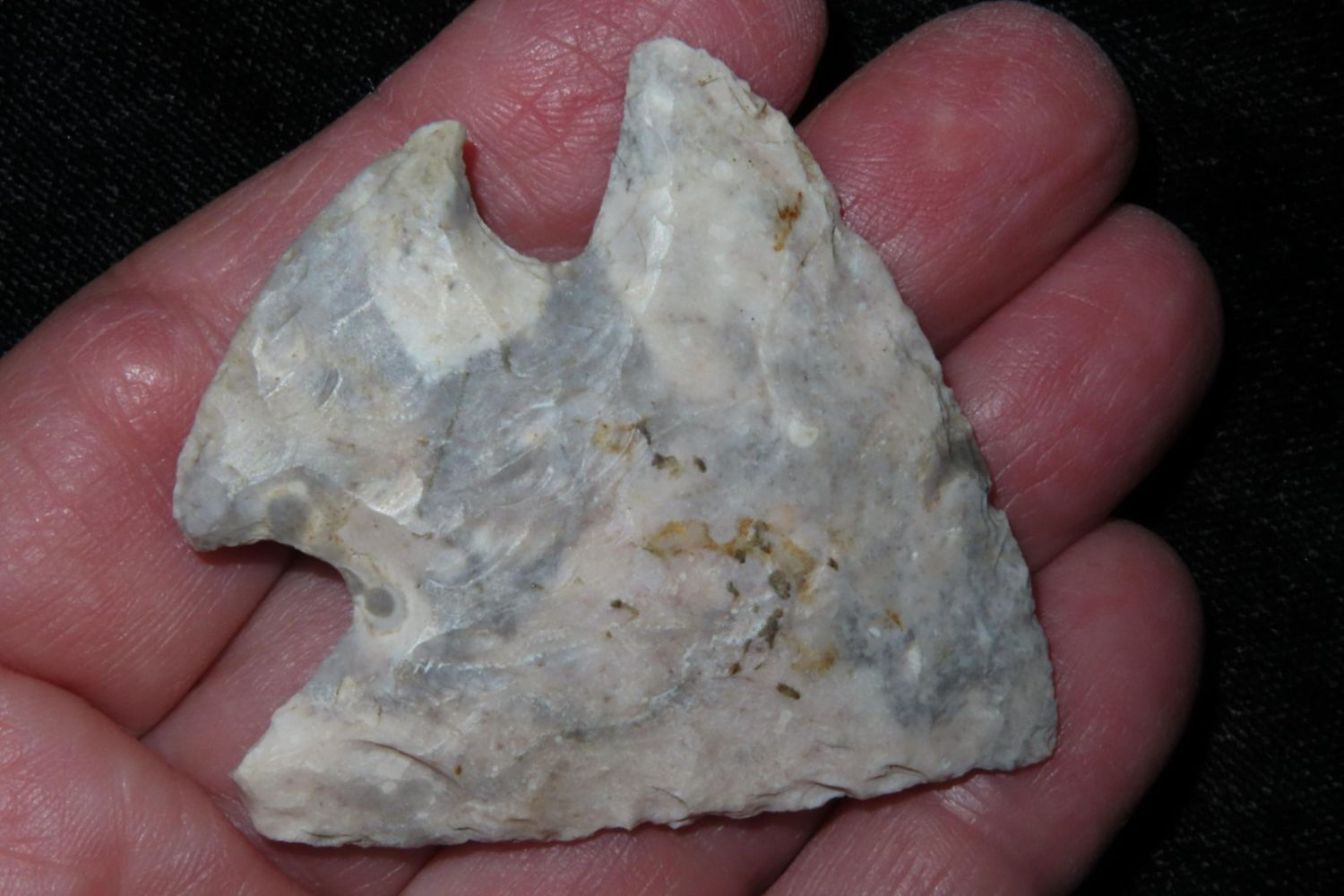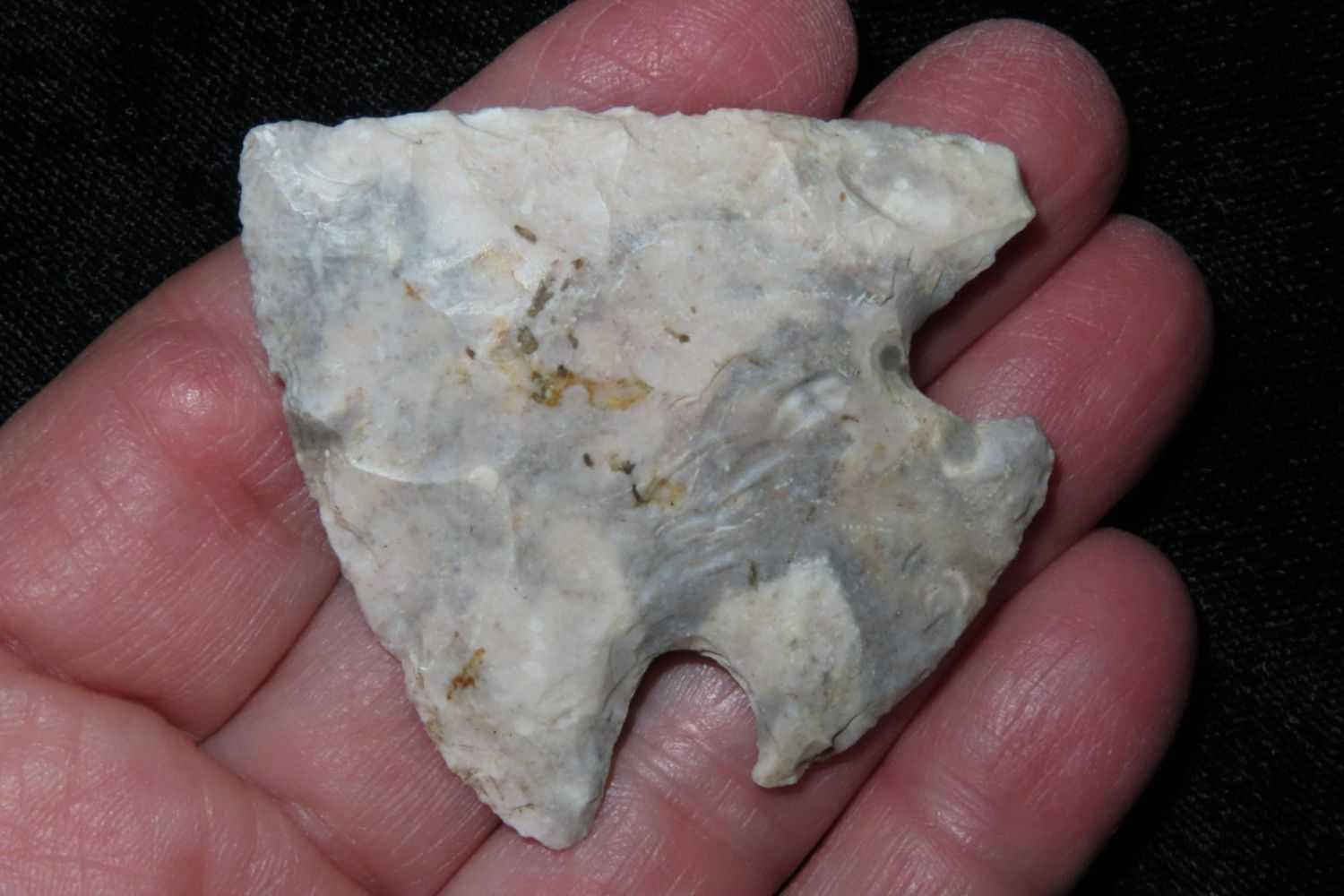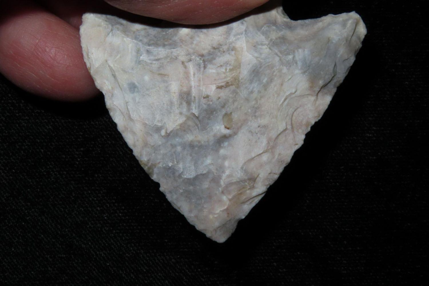 2" Classic Snyders made from colorful heat treated Mozarkite. From the James and Joe George Collection. Joe George was an avid collector and finder of Native American artifacts in the greater St Louis Missouri area. Joe collected his entire life. Upon his passing he turned his collection over to his son James. James was also a very avid collector. He enjoyed walking various waterways and attending artifact shows. James is looking forward to passing down his collection to the relic community for caretaking.