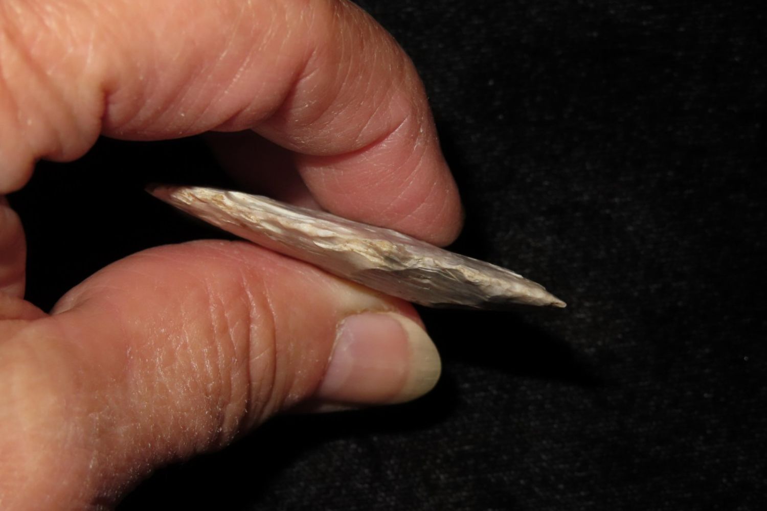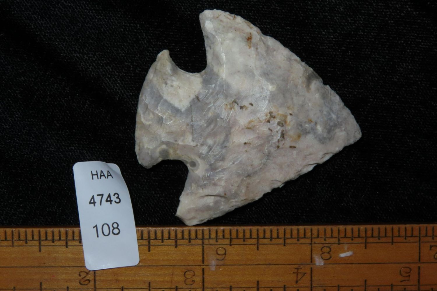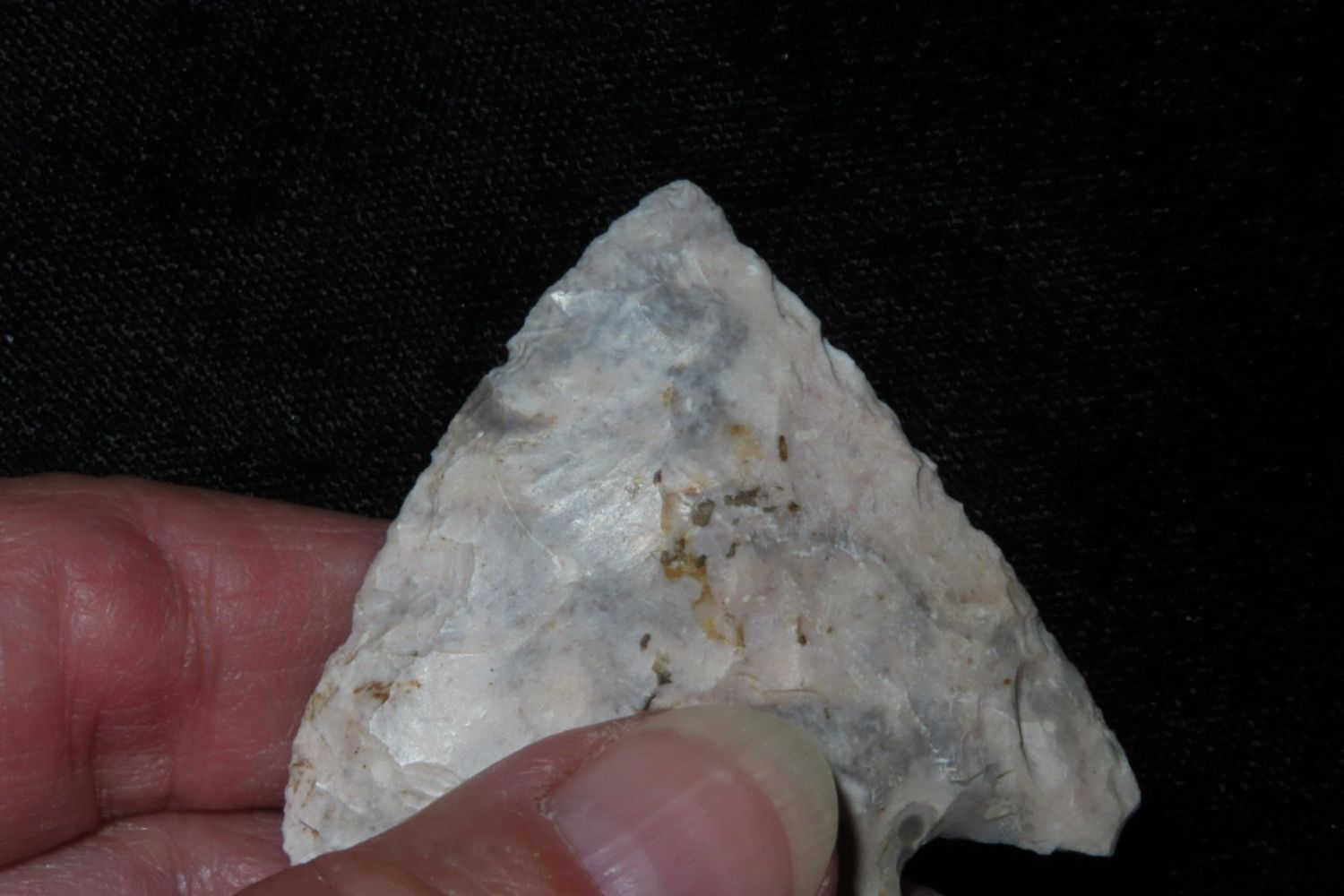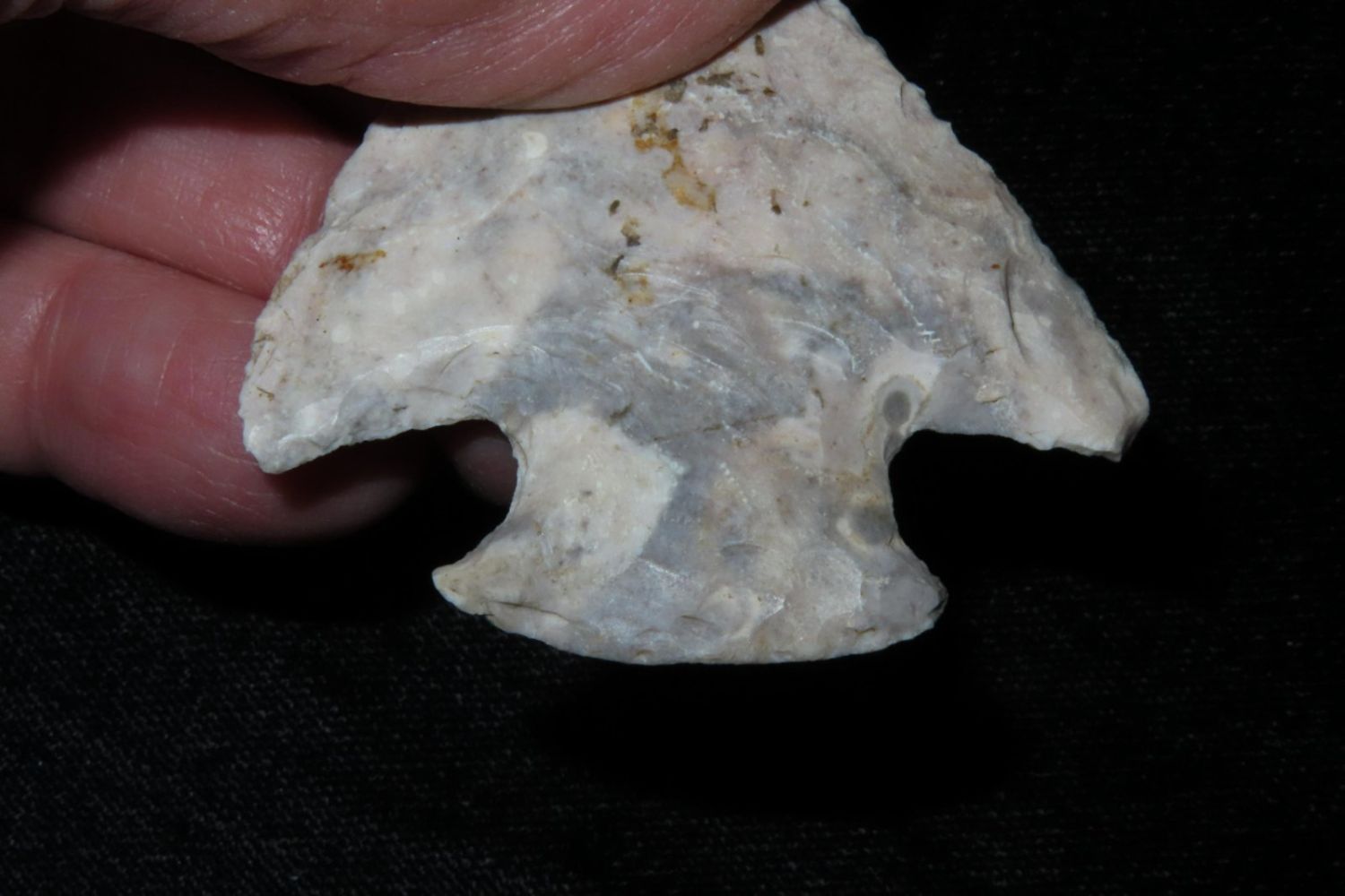 2" Classic Snyders made from colorful heat treated Mozarkite. From the James and Joe George Collection. Joe George was an avid collector and finder of Native American artifacts in the greater St Louis Missouri area. Joe collected his entire life. Upon his passing he turned his collection over to his son James. James was also a very avid collector. He enjoyed walking various waterways and attending artifact shows. James is looking forward to passing down his collection to the relic community for caretaking.