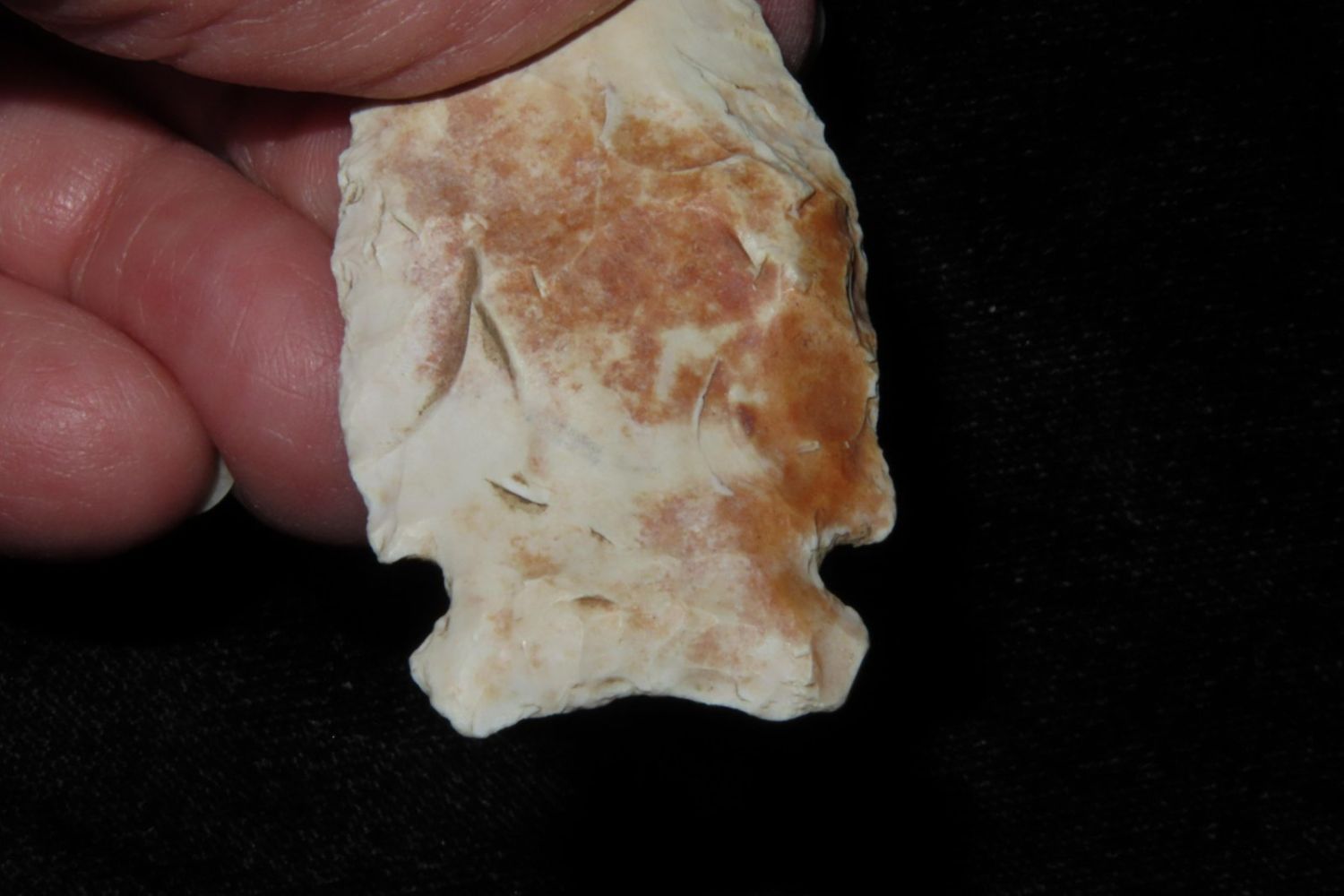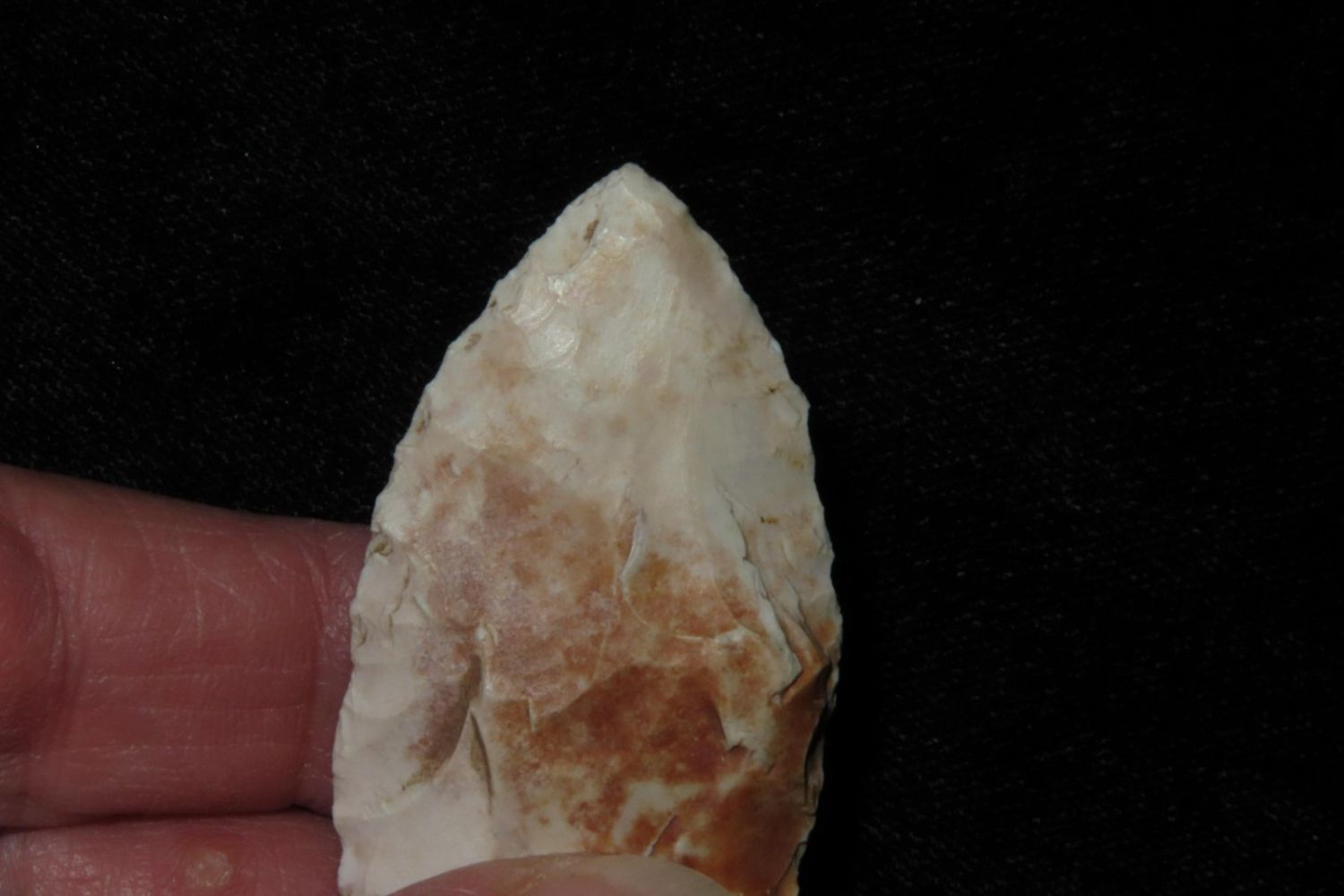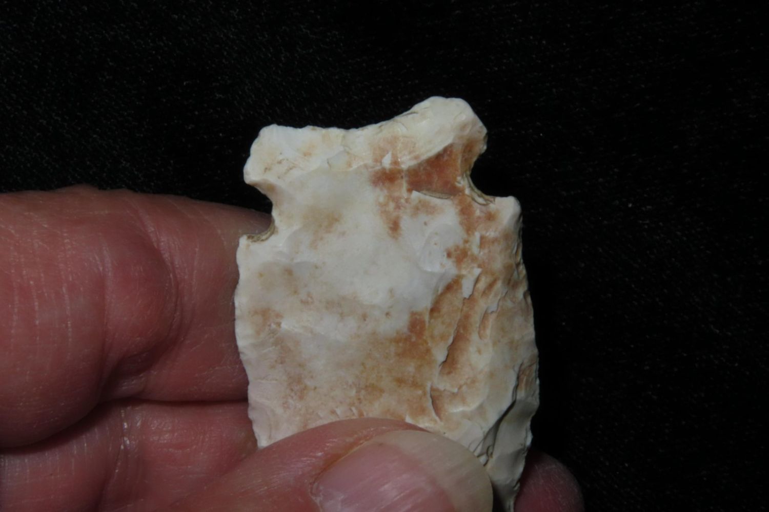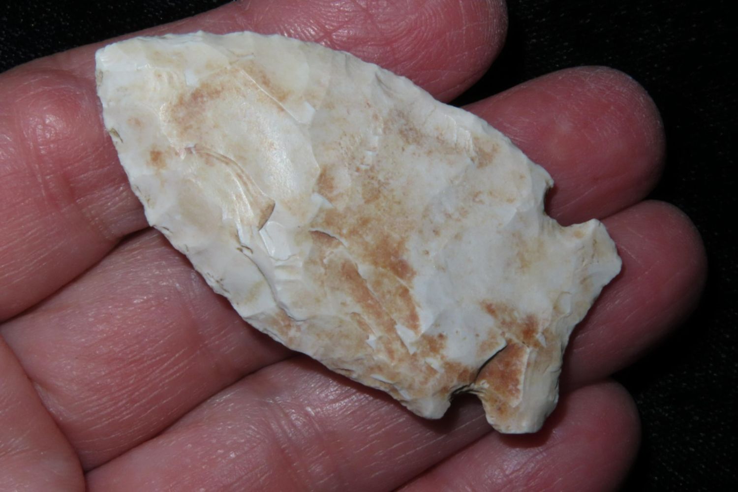 2 1/16" Howard County. From the James and Joe George Collection. Joe George was an avid collector and finder of Native American artifacts in the greater St Louis Missouri area. Joe collected his entire life. Upon his passing he turned his collection over to his son James. James was also a very avid collector. He enjoyed walking various waterways and attending artifact shows. James is looking forward to passing down his collection to the relic community for caretaking.