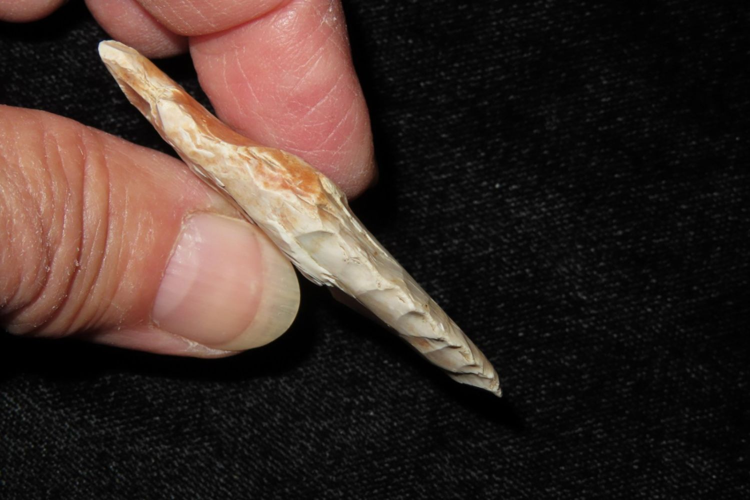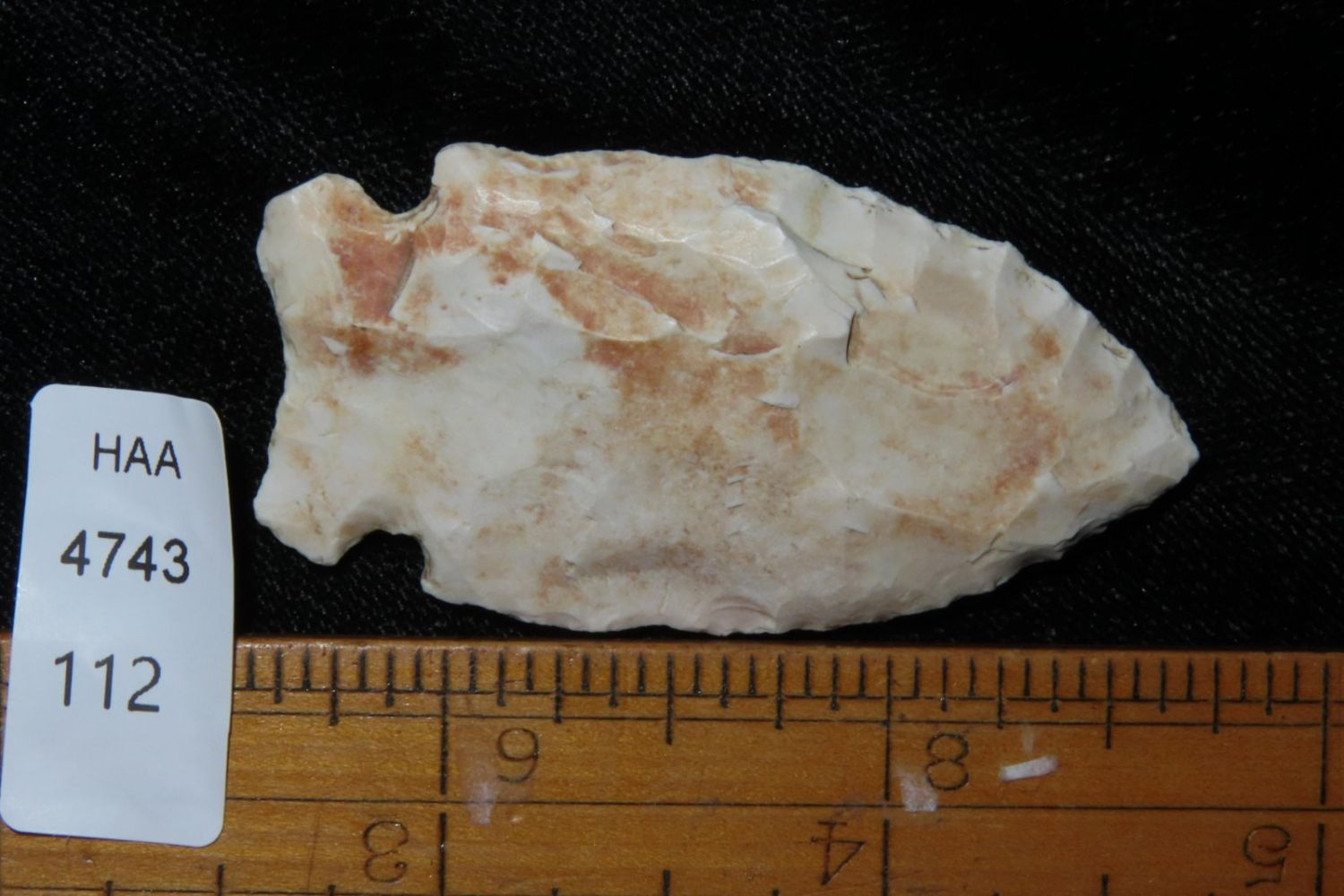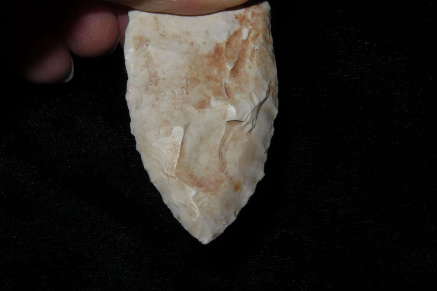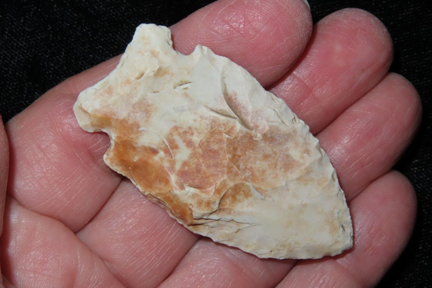 2 1/16" Howard County. From the James and Joe George Collection. Joe George was an avid collector and finder of Native American artifacts in the greater St Louis Missouri area. Joe collected his entire life. Upon his passing he turned his collection over to his son James. James was also a very avid collector. He enjoyed walking various waterways and attending artifact shows. James is looking forward to passing down his collection to the relic community for caretaking.