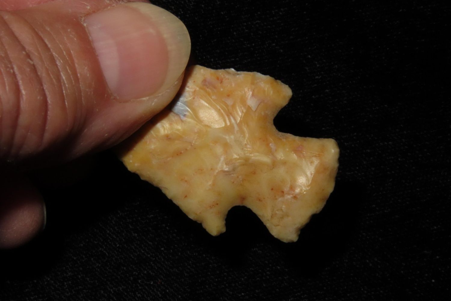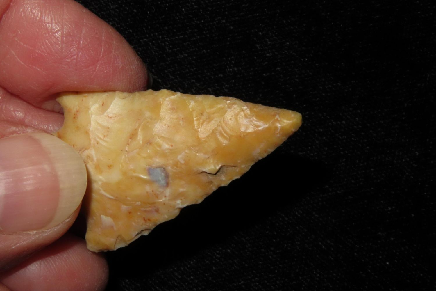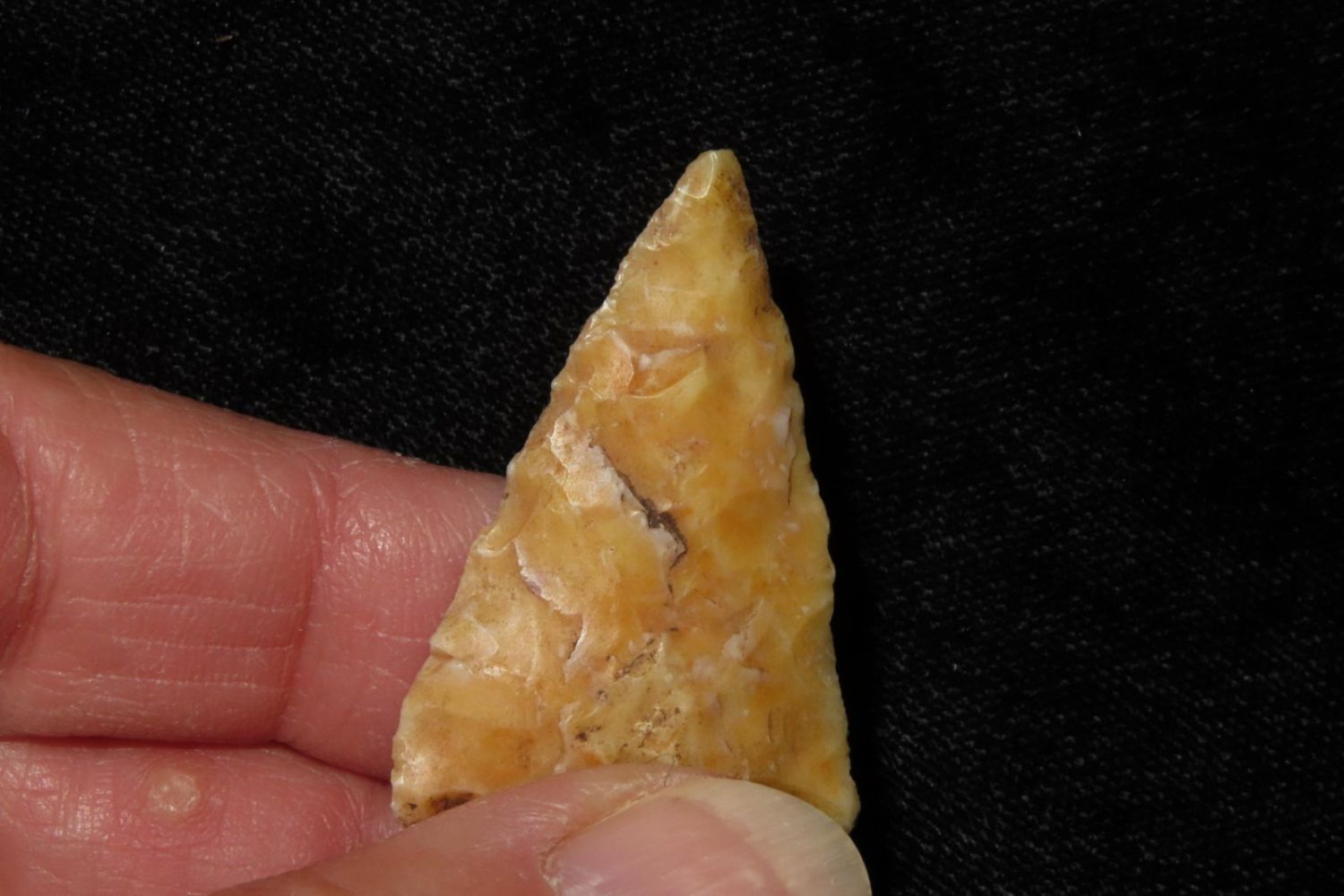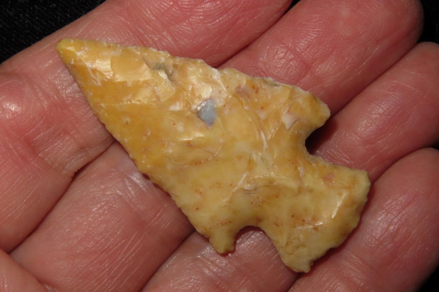 1 3/4" Apple Creek with nice river polish. From the James and Joe George Collection. Joe George was an avid collector and finder of Native American artifacts in the greater St Louis Missouri area. Joe collected his entire life. Upon his passing he turned his collection over to his son James. James was also a very avid collector. He enjoyed walking various waterways and attending artifact shows. James is looking forward to passing down his collection to the relic community for caretaking.