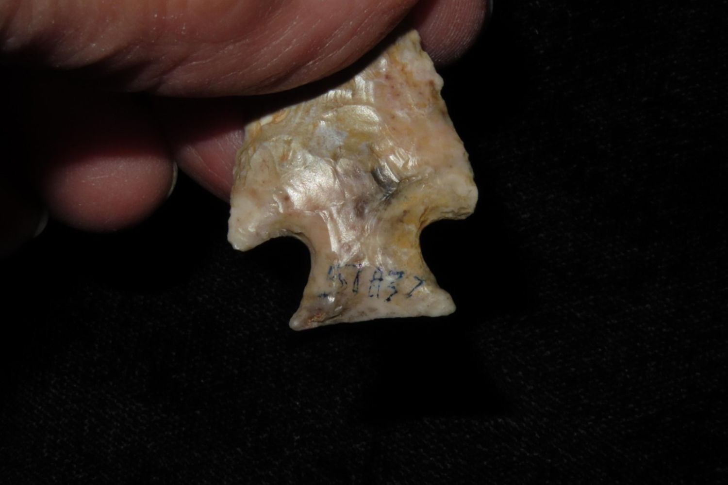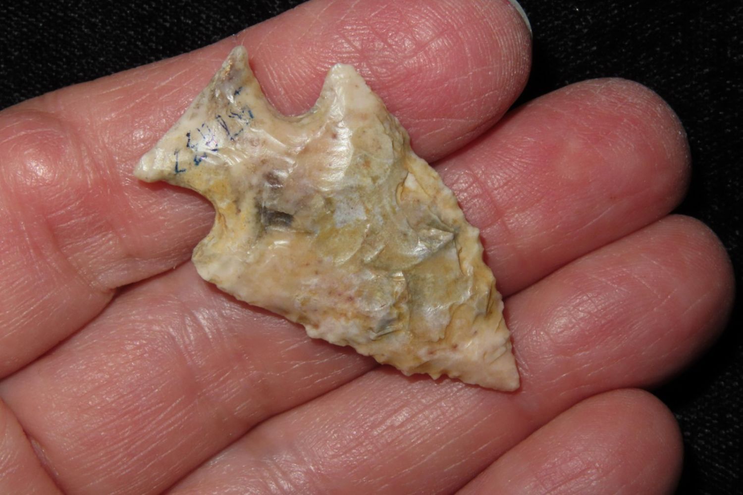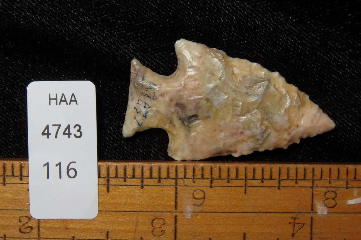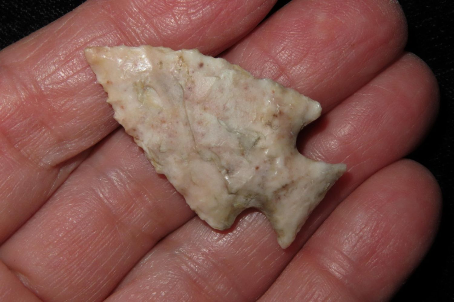 1 1/2" Toy Tablerock. From the James and Joe George Collection. Joe George was an avid collector and finder of Native American artifacts in the greater St Louis Missouri area. Joe collected his entire life. Upon his passing he turned his collection over to his son James. James was also a very avid collector. He enjoyed walking various waterways and attending artifact shows. James is looking forward to passing down his collection to the relic community for caretaking.