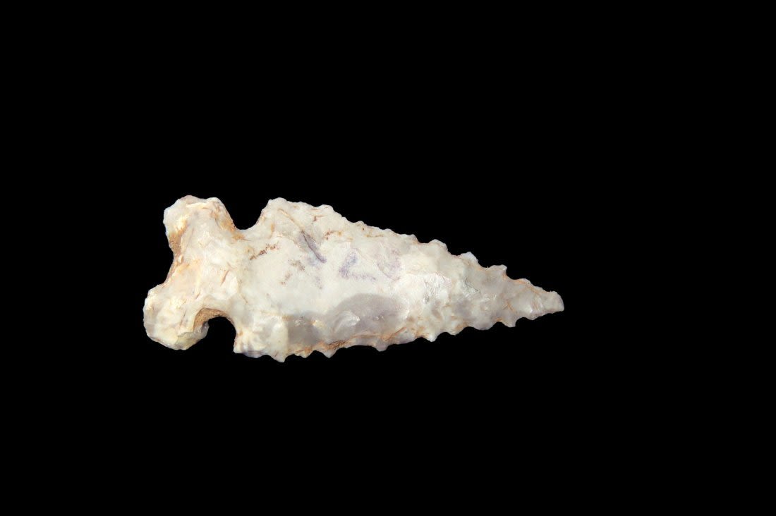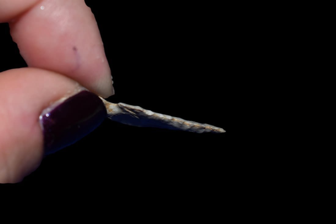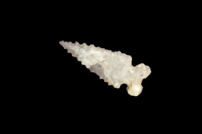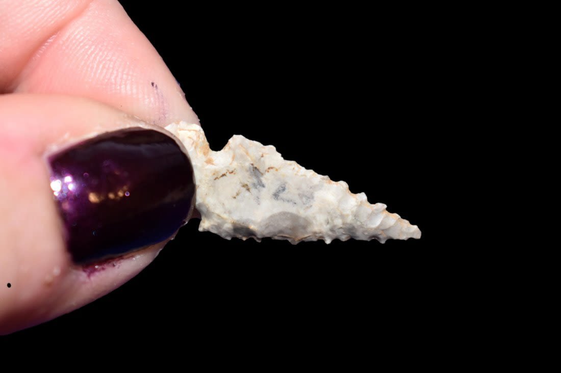 1 1/16" Scallion Birdpoint From the James and Joe George Collection. Joe George was an avid collector and finder of Native American artifacts in the greater St Louis Missouri area. Joe collected his entire life. Upon his passing he turned his collection over to his son James. James was also a very avid collector. He enjoyed walking various waterways and attending artifact shows. James is looking forward to passing down his collection to the relic community for caretaking.