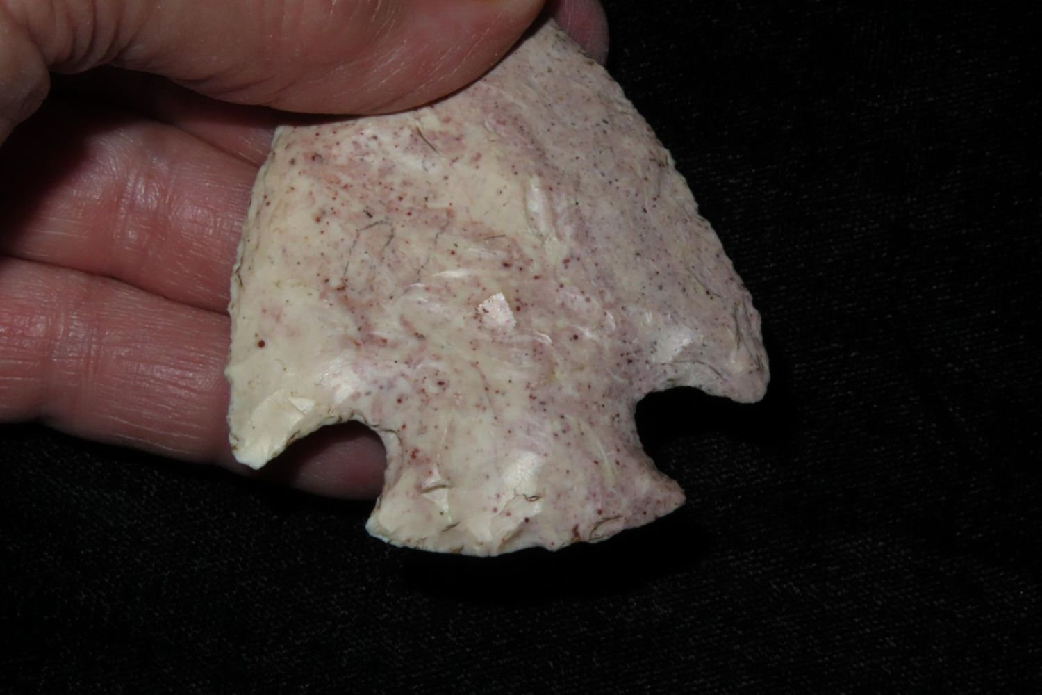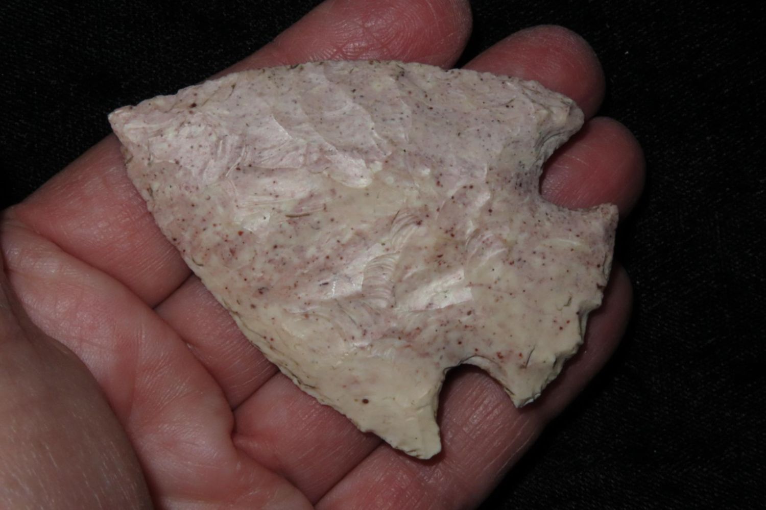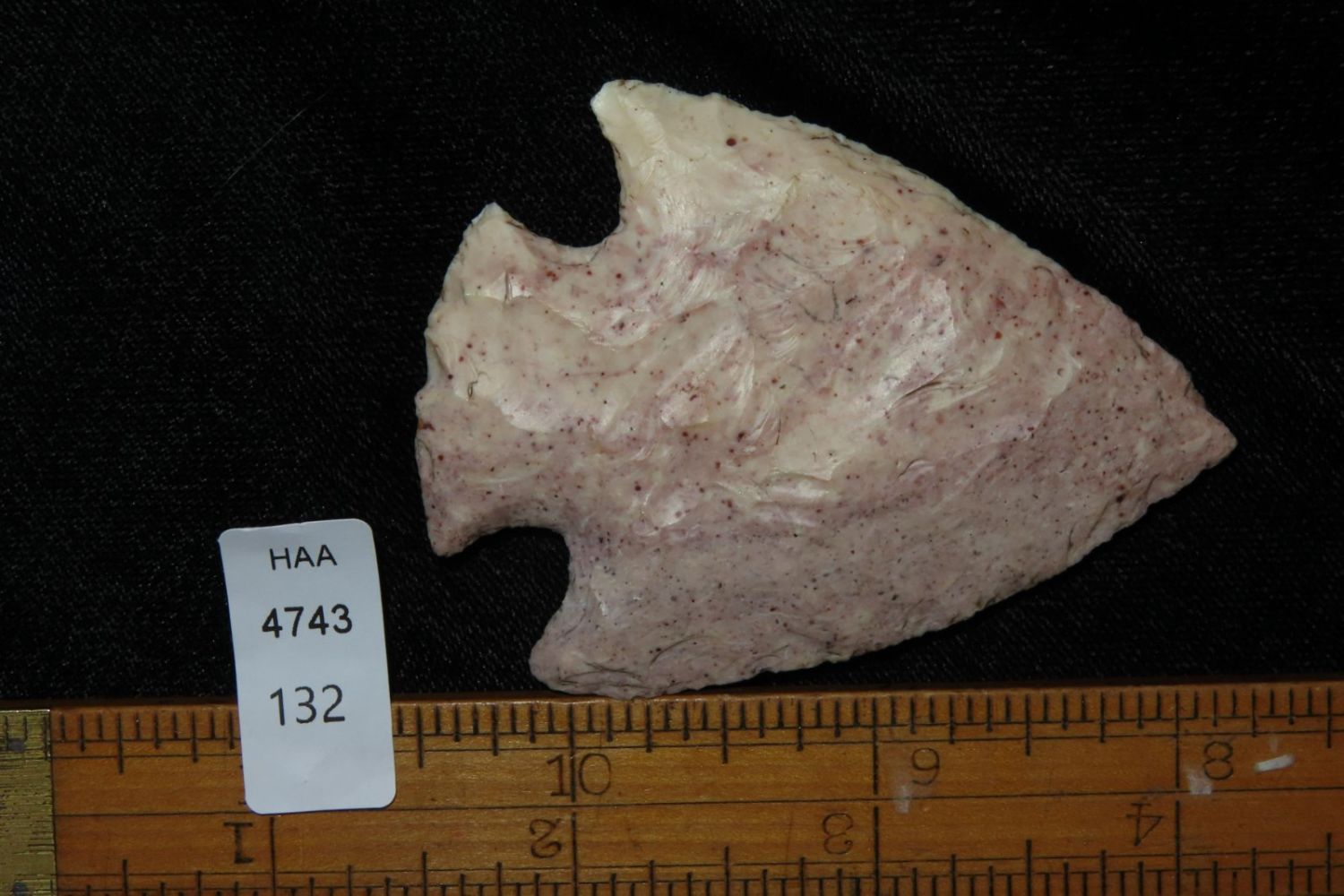 2 5/8" Snyders. Very colorful classic example. From the James and Joe George Collection. Joe George was an avid collector and finder of Native American artifacts in the greater St Louis Missouri area. Joe collected his entire life. Upon his passing he turned his collection over to his son James. James was also a very avid collector. He enjoyed walking various waterways and attending artifact shows. James is looking forward to passing down his collection to the relic community for caretaking.
