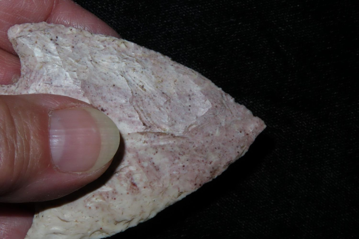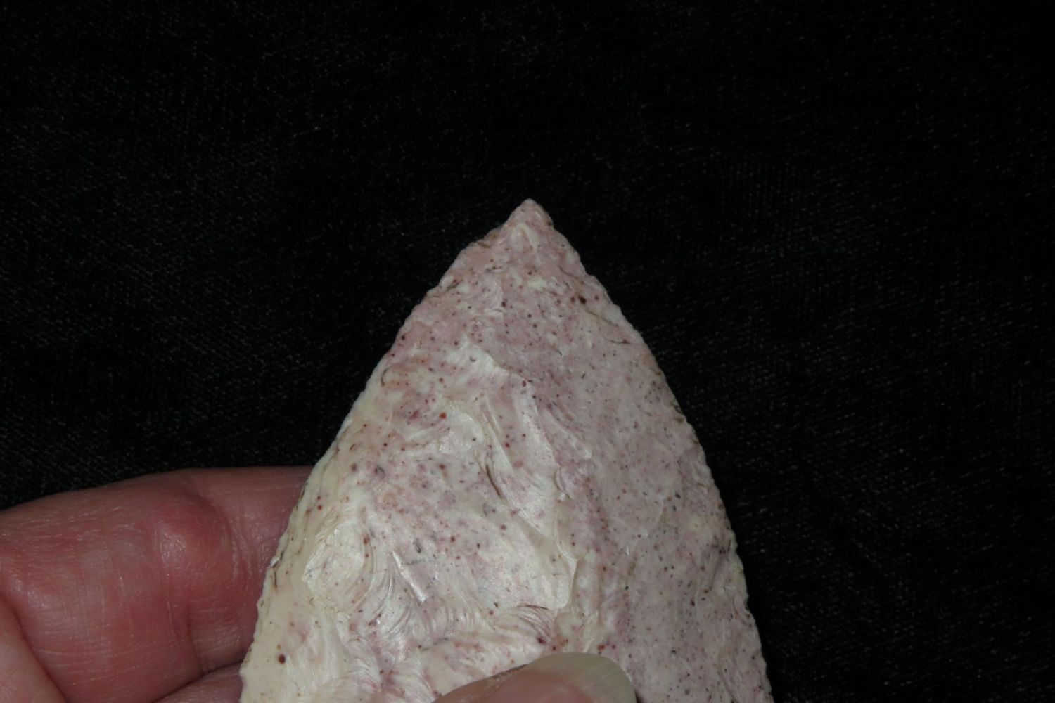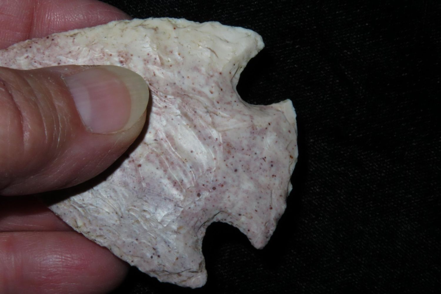2 5/8" Snyders. Very colorful classic example. From the James and Joe George Collection. Joe George was an avid collector and finder of Native American artifacts in the greater St Louis Missouri area. Joe collected his entire life. Upon his passing he turned his collection over to his son James. James was also a very avid collector. He enjoyed walking various waterways and attending artifact shows. James is looking forward to passing down his collection to the relic community for caretaking.