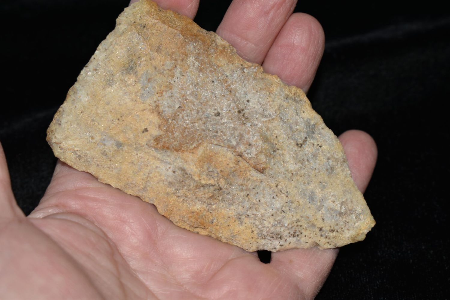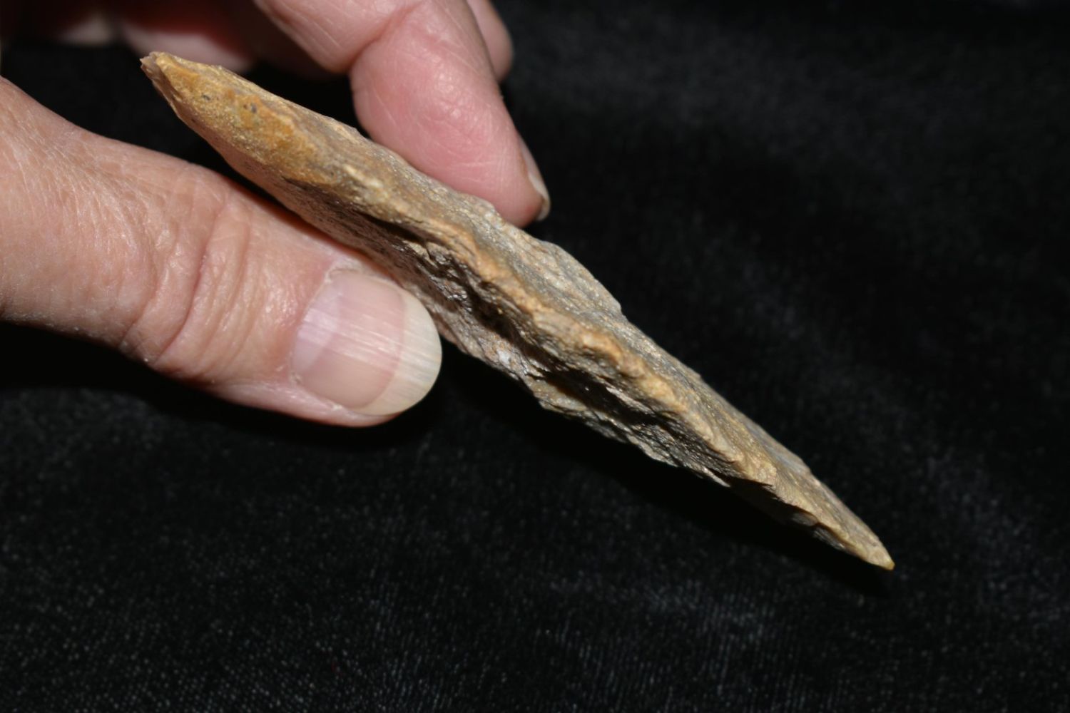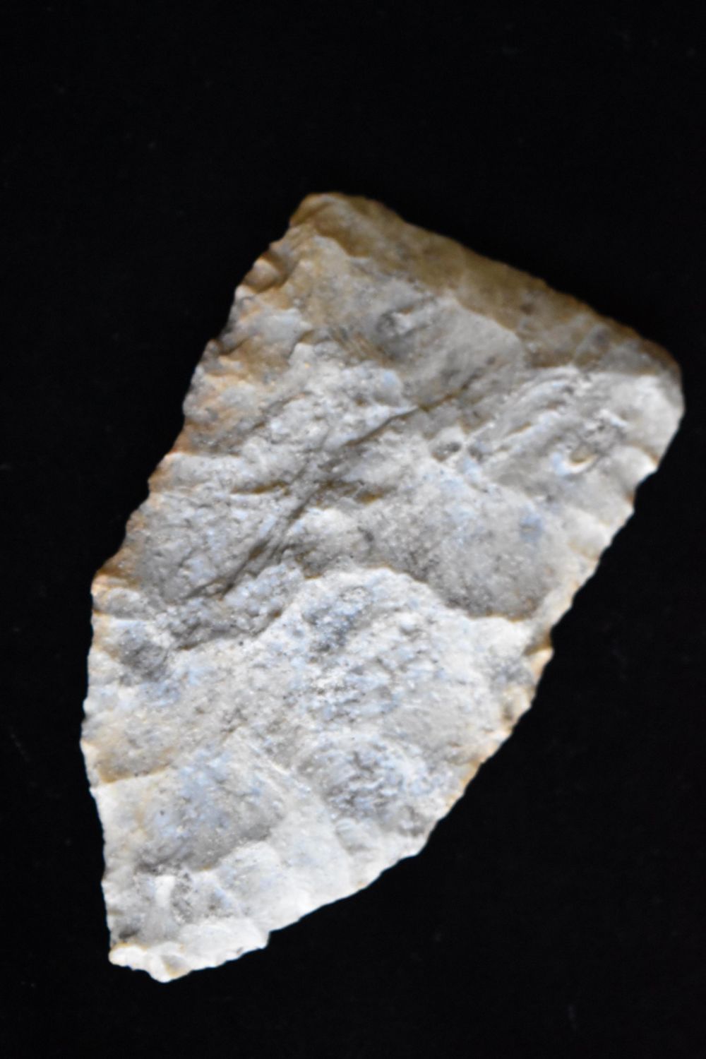 3 5/8" Square Base Archaic Knife. From the James and Joe George Collection. Joe George was an avid collector and finder of Native American artifacts in the greater St Louis Missouri area. Joe collected his entire life. Upon his passing he turned his collection over to his son James. James was also a very avid collector. He enjoyed walking various waterways and attending artifact shows. James is looking forward to passing down his collection to the relic community for caretaking.