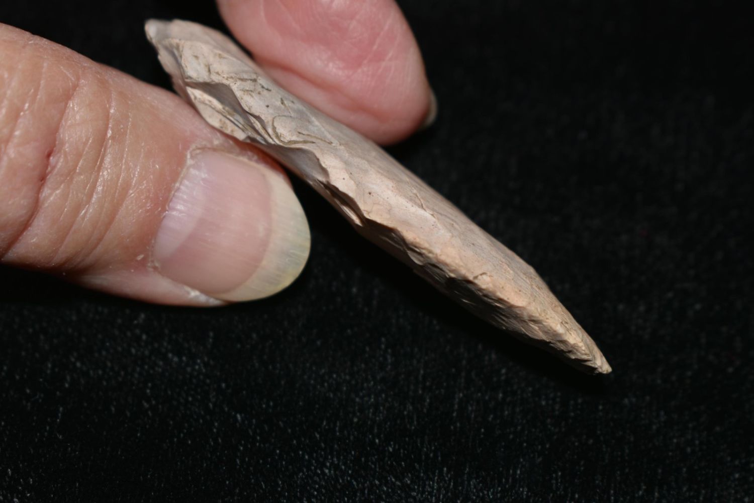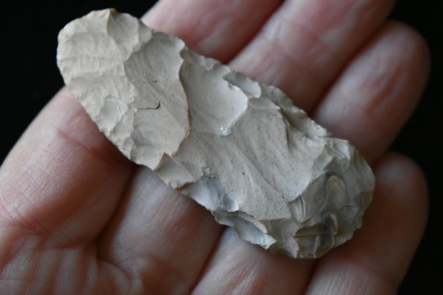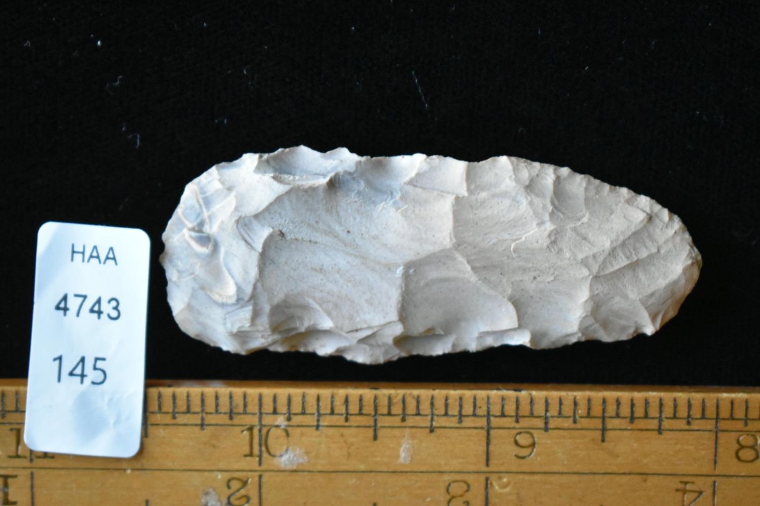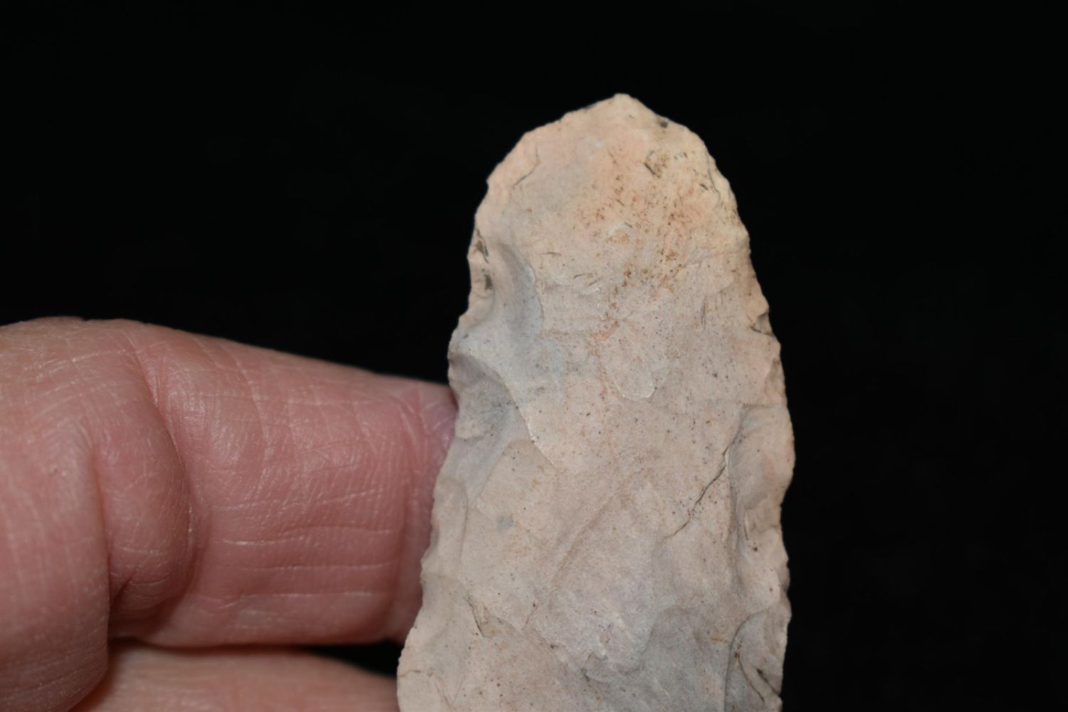 2 1/4" Oval Blade. From the James and Joe George Collection. Joe George was an avid collector and finder of Native American artifacts in the greater St Louis Missouri area. Joe collected his entire life. Upon his passing he turned his collection over to his son James. James was also a very avid collector. He enjoyed walking various waterways and attending artifact shows. James is looking forward to passing down his collection to the relic community for caretaking.