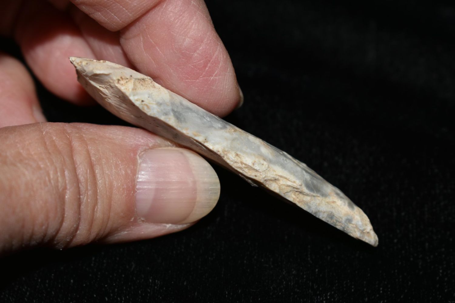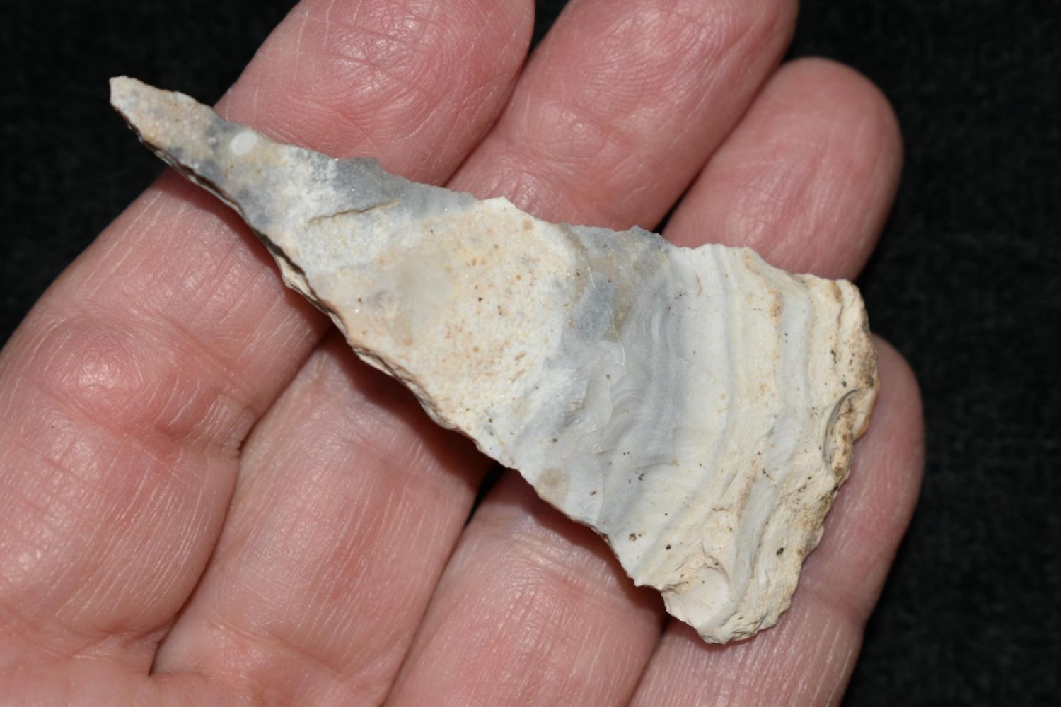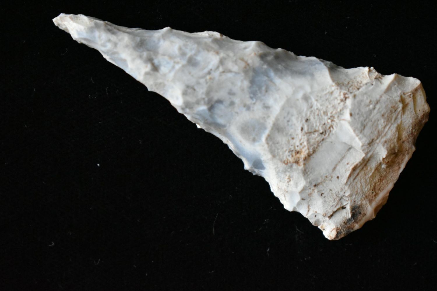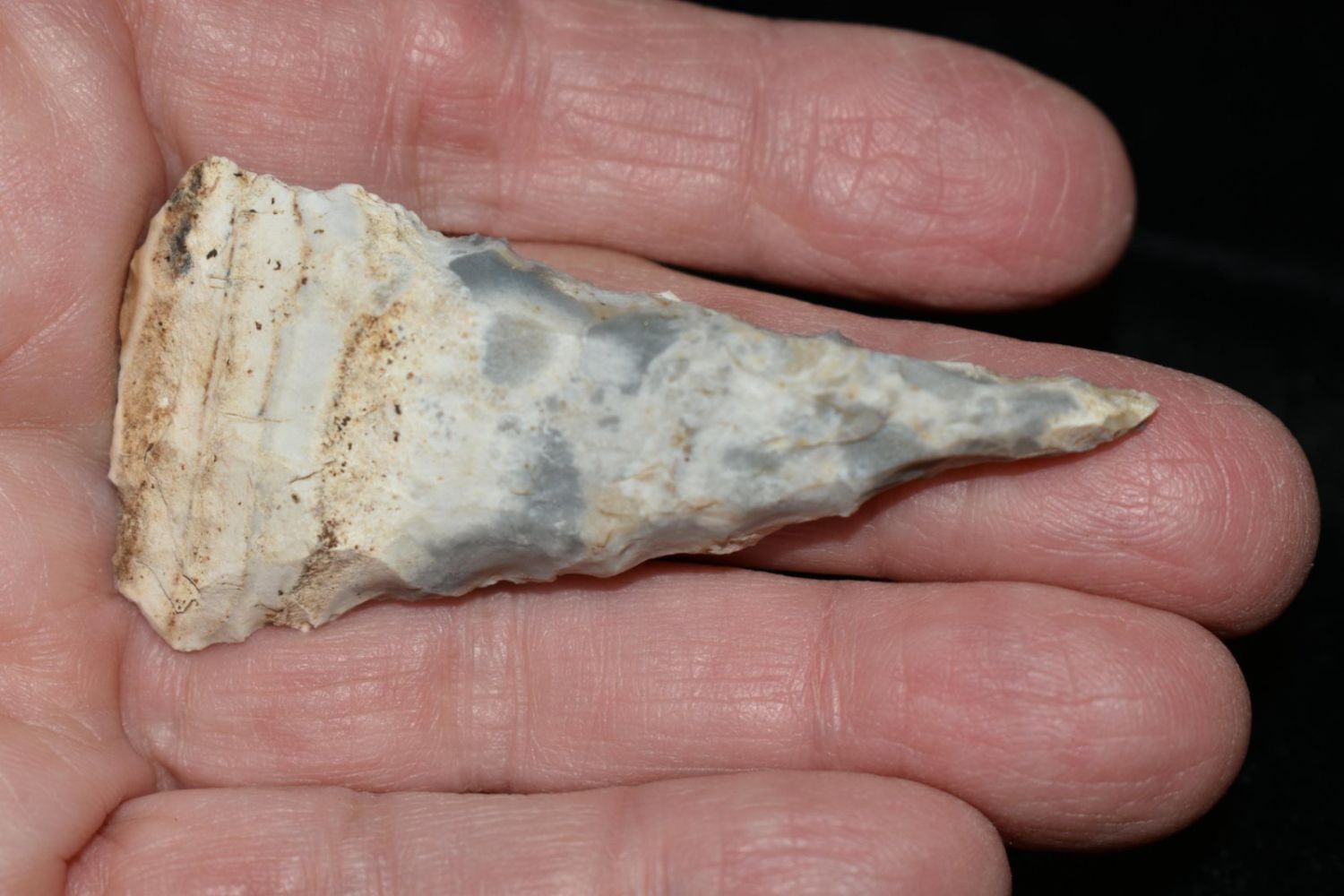 2 1/2" Drill. From the James and Joe George Collection. Joe George was an avid collector and finder of Native American artifacts in the greater St Louis Missouri area. Joe collected his entire life. Upon his passing he turned his collection over to his son James. James was also a very avid collector. He enjoyed walking various waterways and attending artifact shows. James is looking forward to passing down his collection to the relic community for caretaking.
