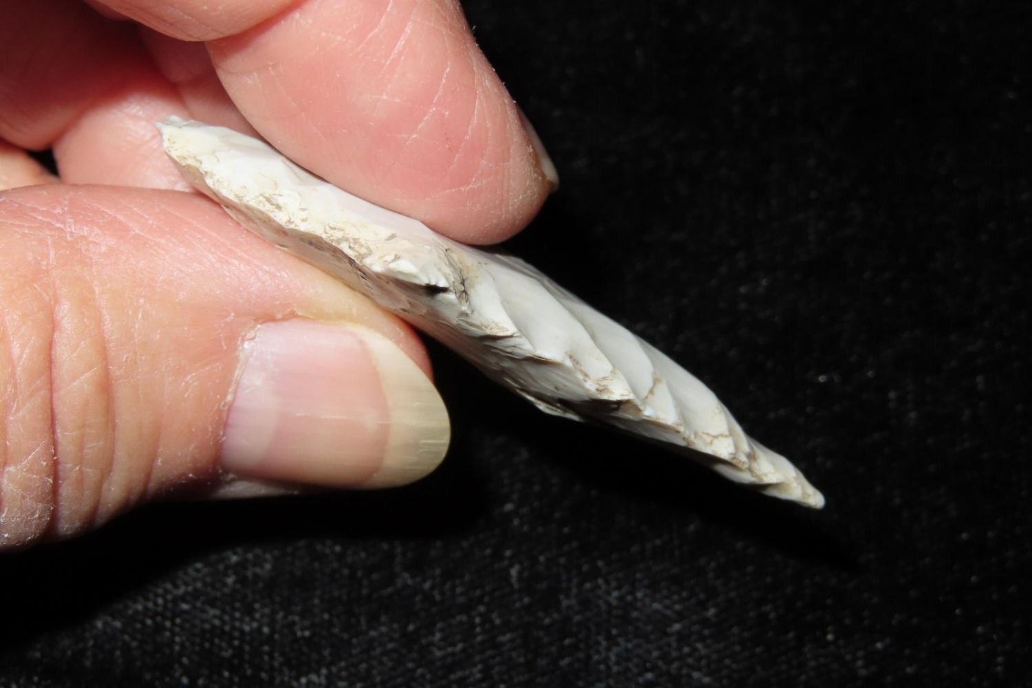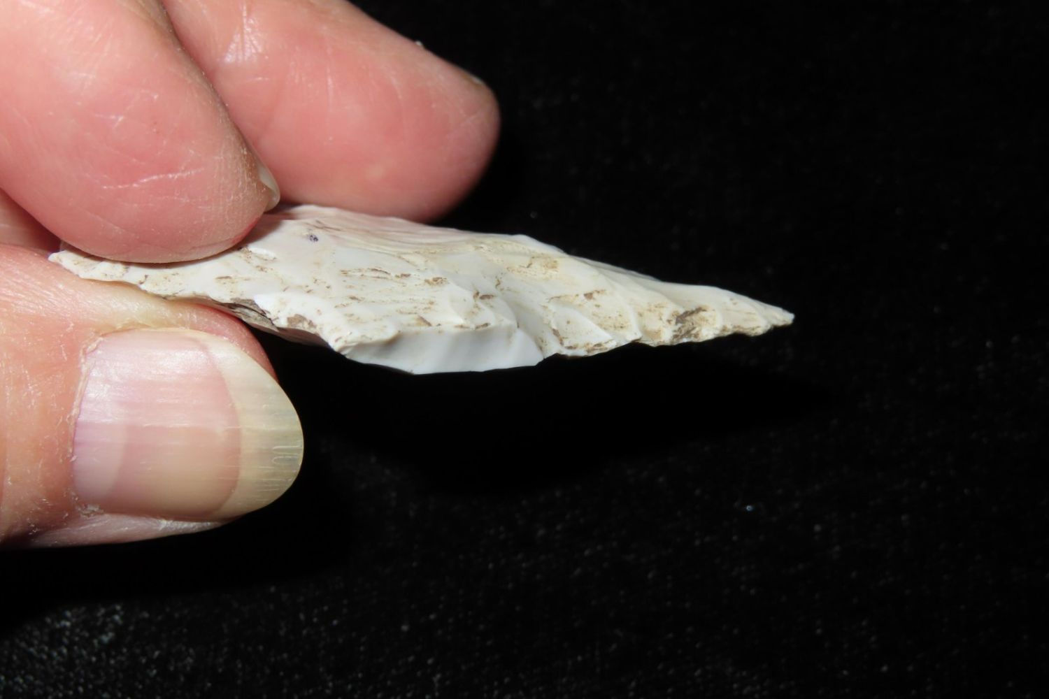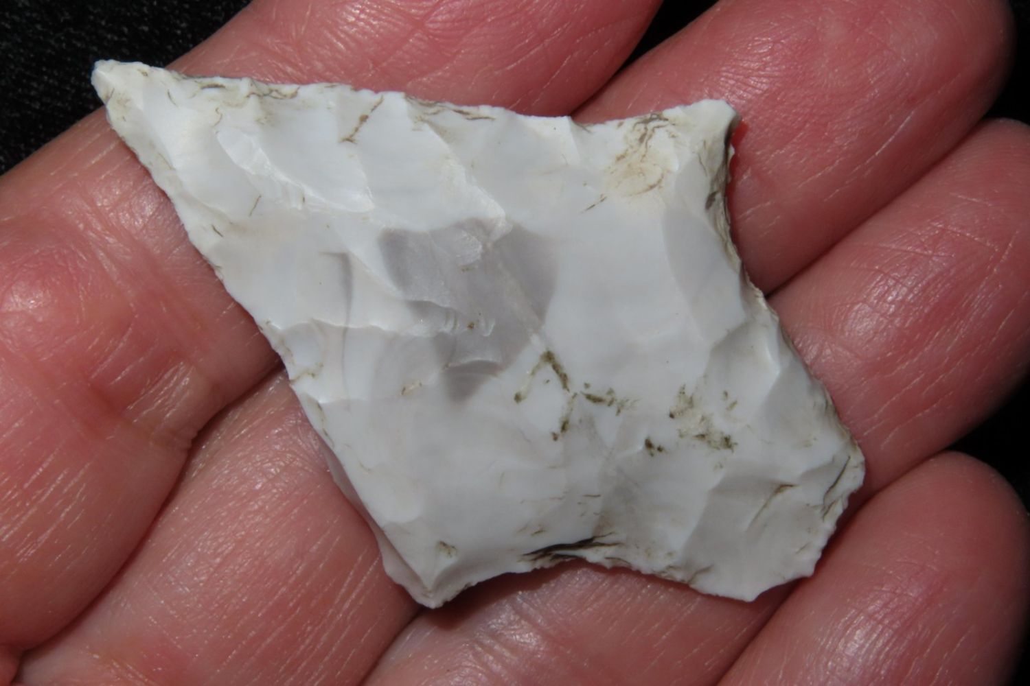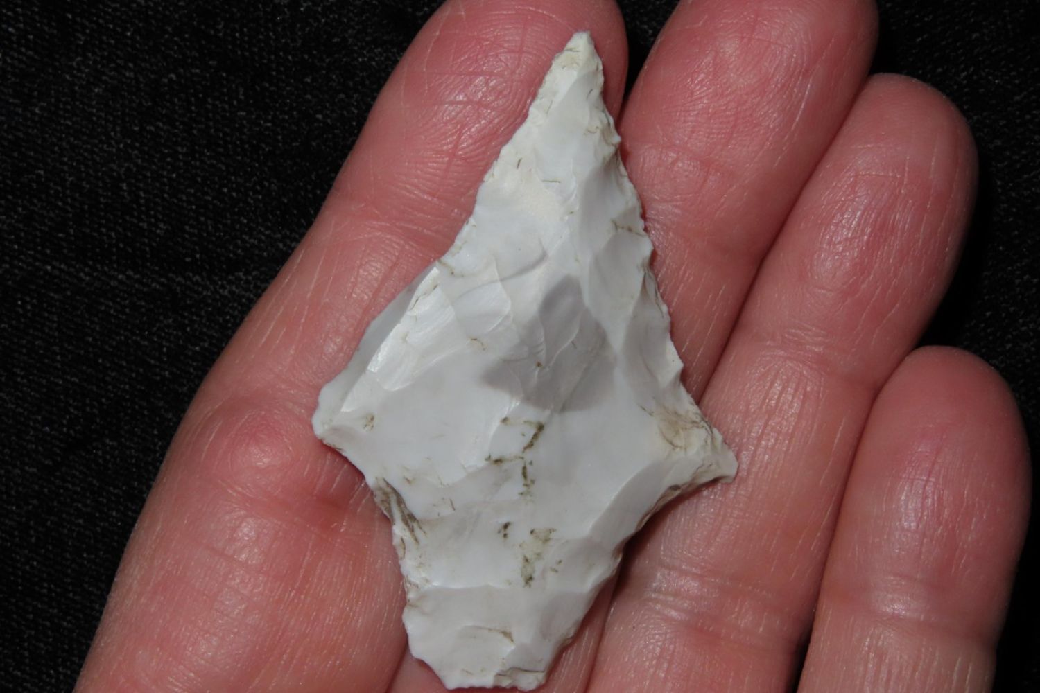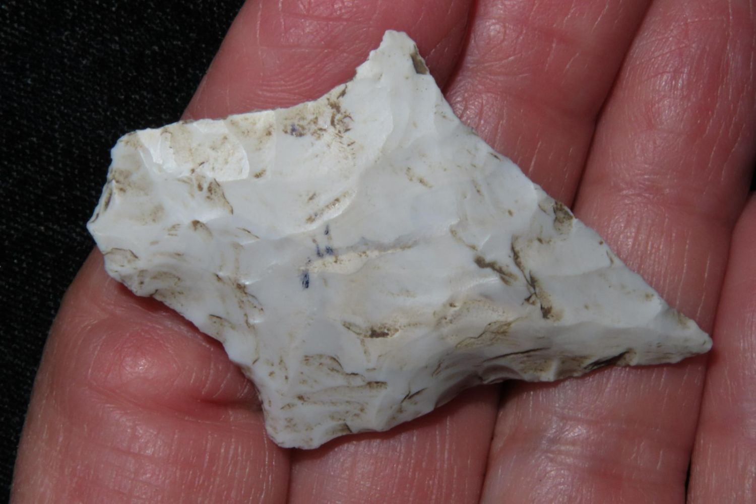 2" Flared ear Dickson. From the James and Joe George Collection. Joe George was an avid collector and finder of Native American artifacts in the greater St Louis Missouri area. Joe collected his entire life. Upon his passing he turned his collection over to his son James. James was also a very avid collector. He enjoyed walking various waterways and attending artifact shows. James is looking forward to passing down his collection to the relic community for caretaking.