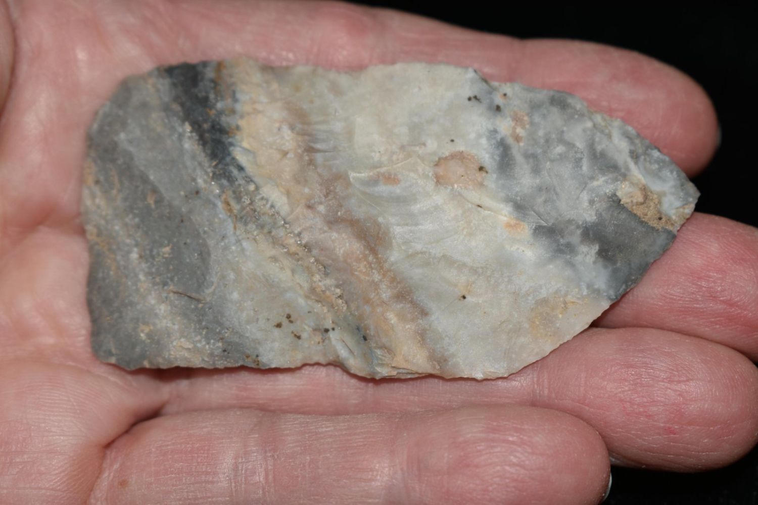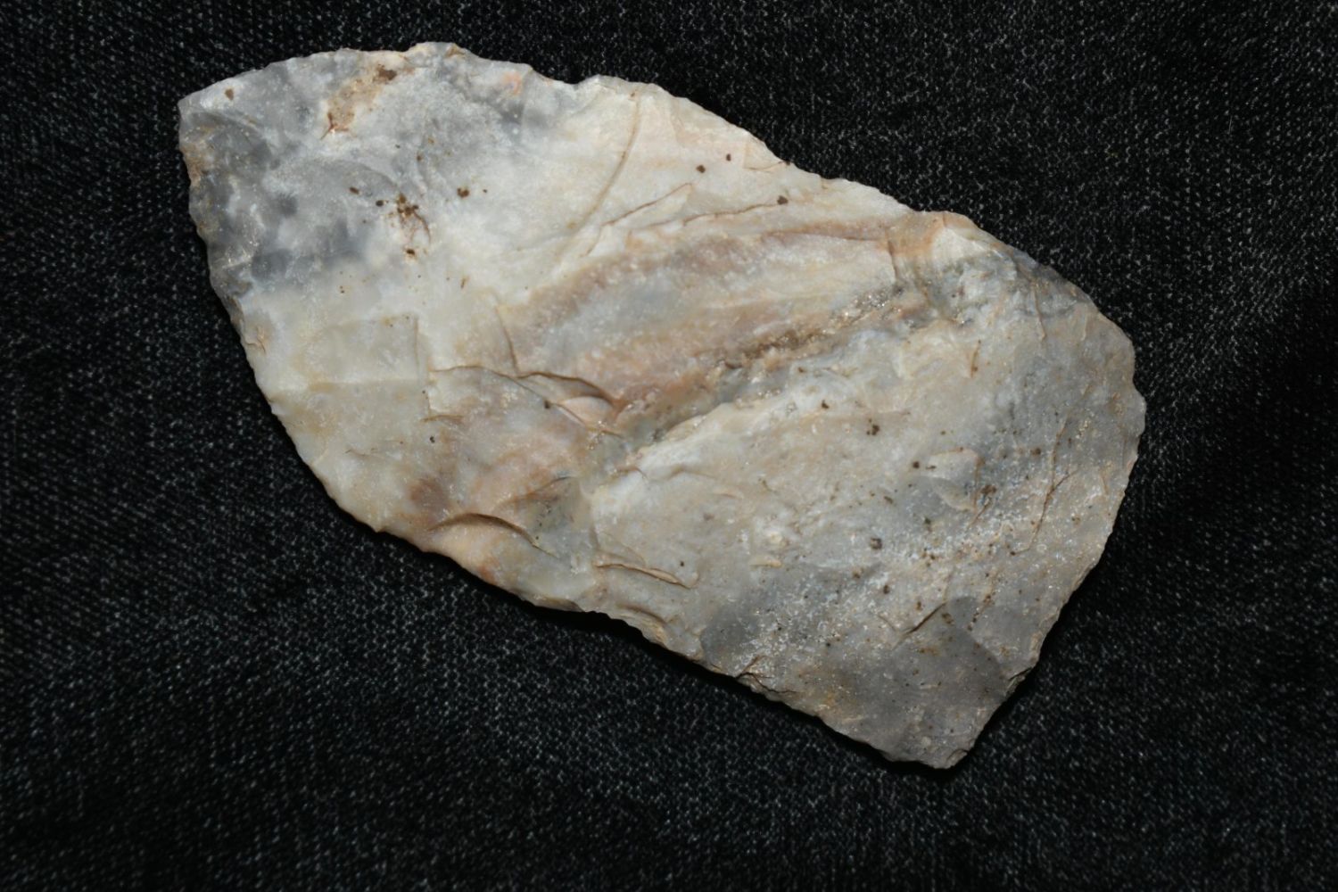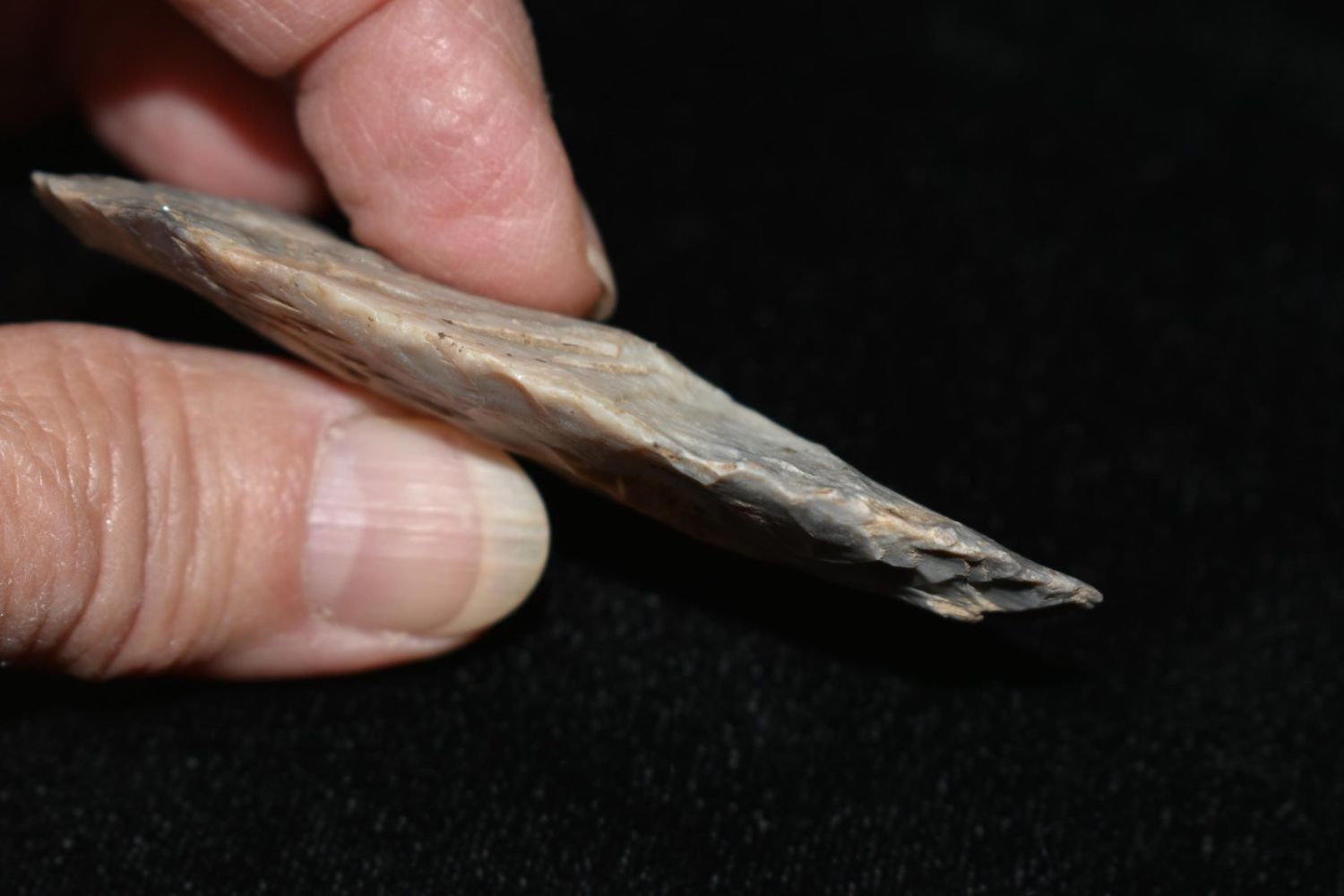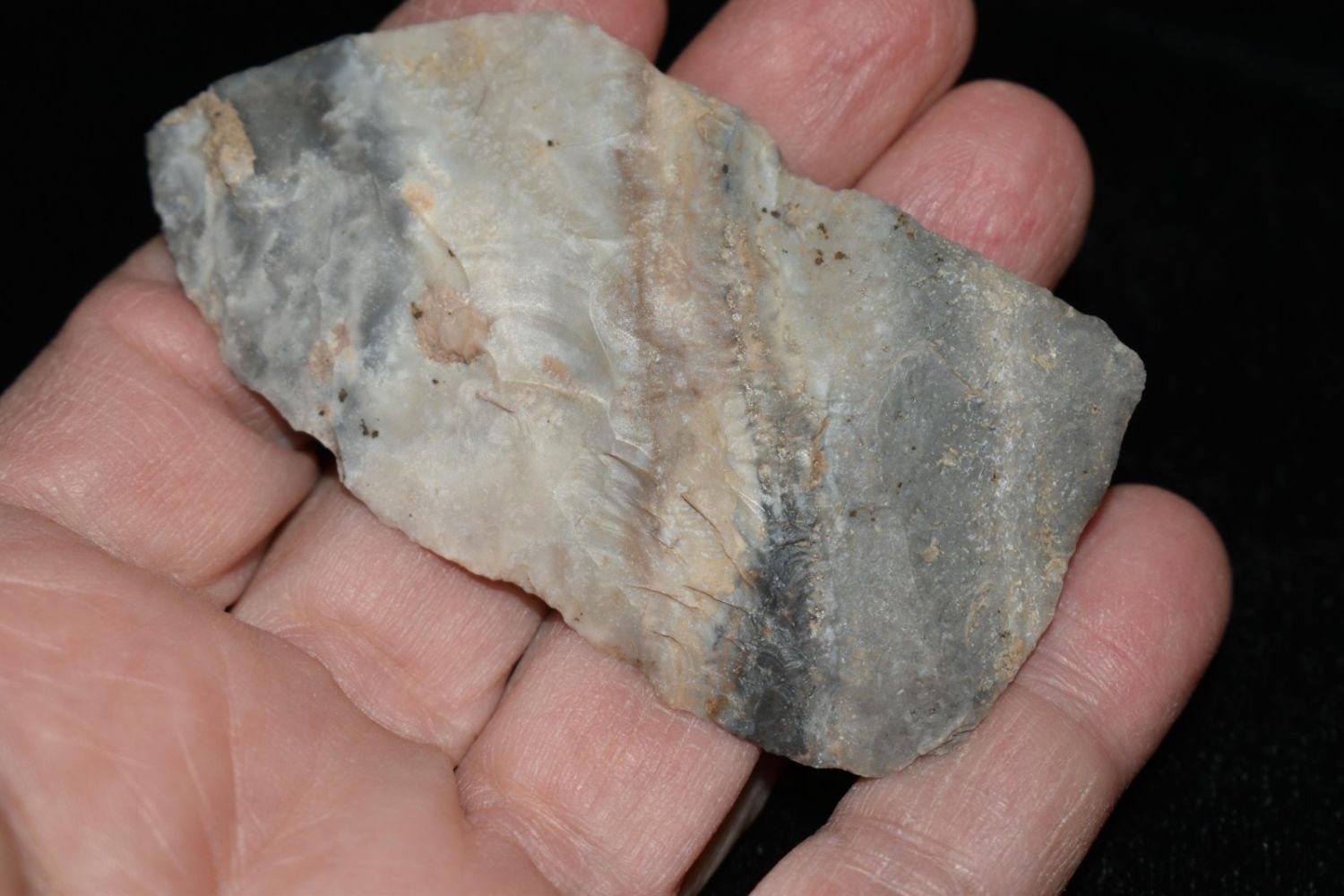 2 7/8" Square Base Blade. From the James and Joe George Collection. Joe George was an avid collector and finder of Native American artifacts in the greater St Louis Missouri area. Joe collected his entire life. Upon his passing he turned his collection over to his son James. James was also a very avid collector. He enjoyed walking various waterways and attending artifact shows. James is looking forward to passing down his collection to the relic community for caretaking.