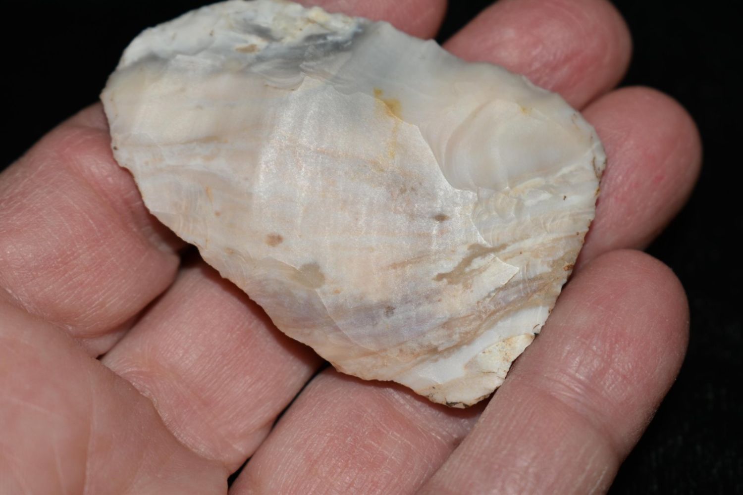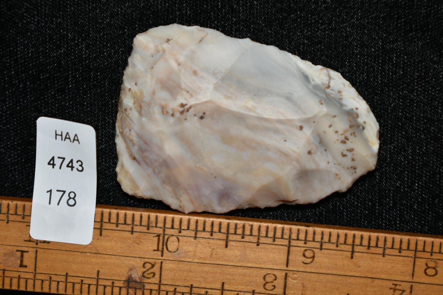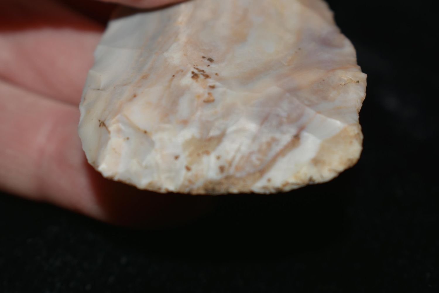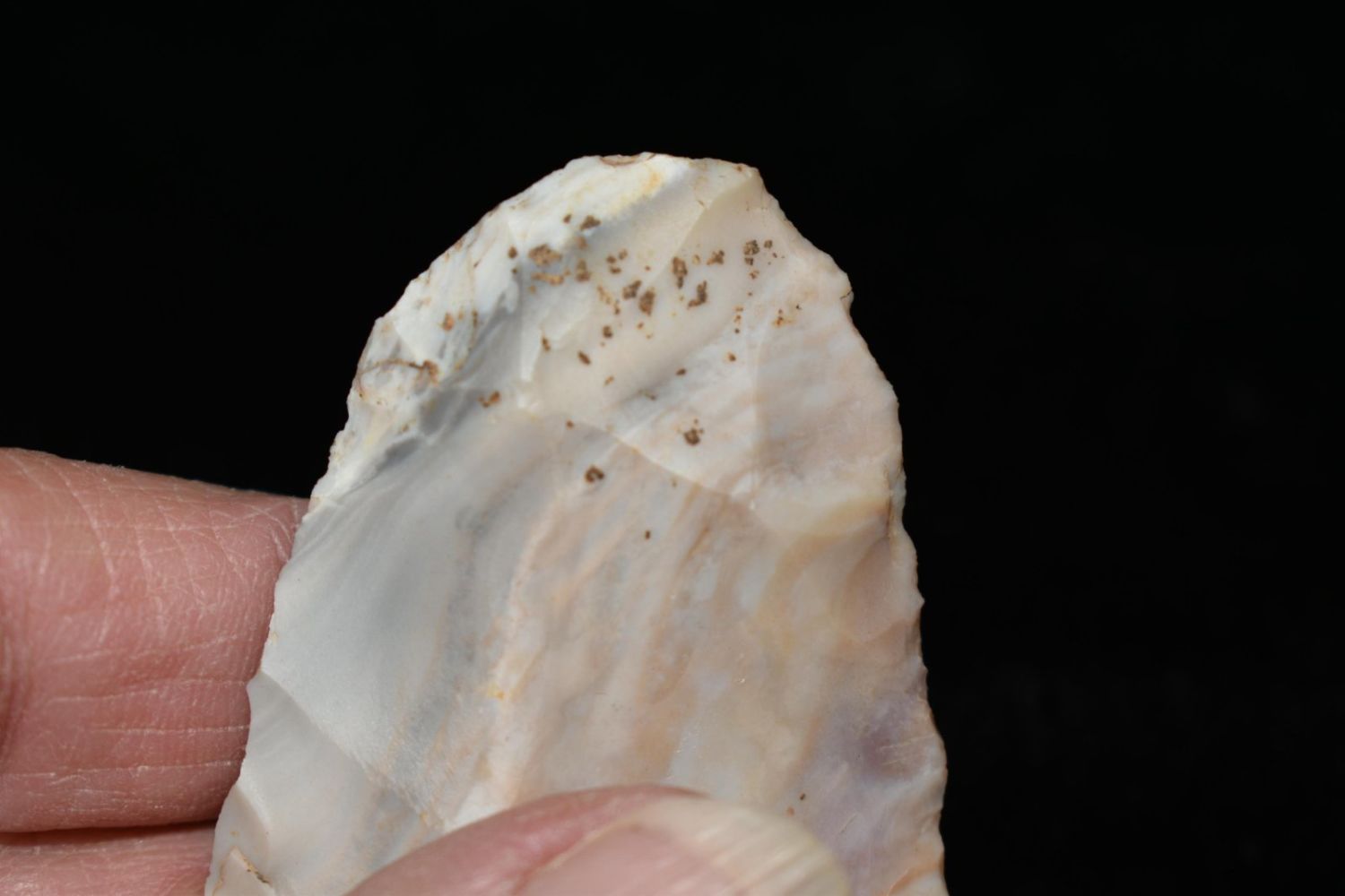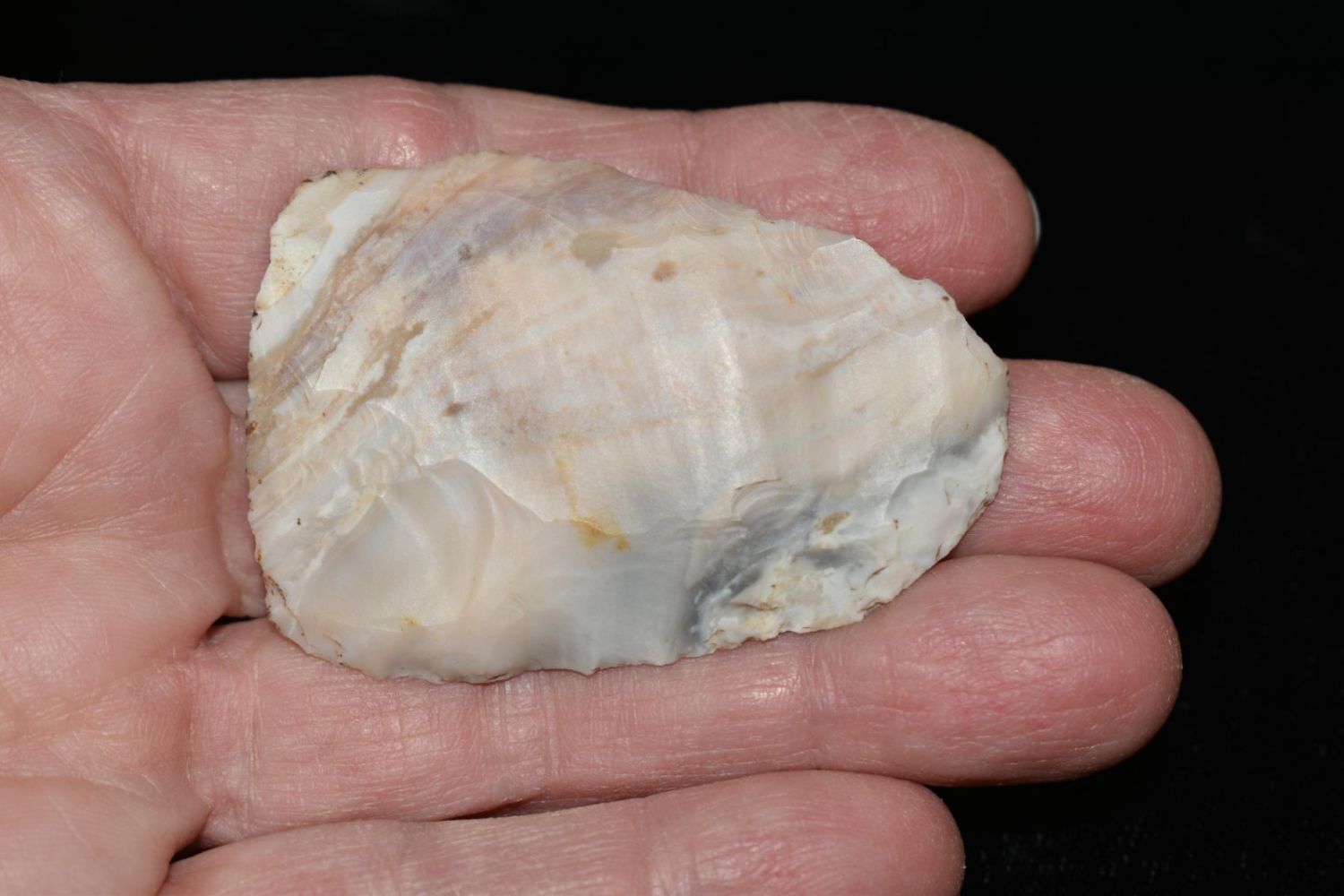 2 1/8" Well Flaked, Micro Gouge. From the James and Joe George Collection. Joe George was an avid collector and finder of Native American artifacts in the greater St Louis Missouri area. Joe collected his entire life. Upon his passing he turned his collection over to his son James. James was also a very avid collector. He enjoyed walking various waterways and attending artifact shows. James is looking forward to passing down his collection to the relic community for caretaking.