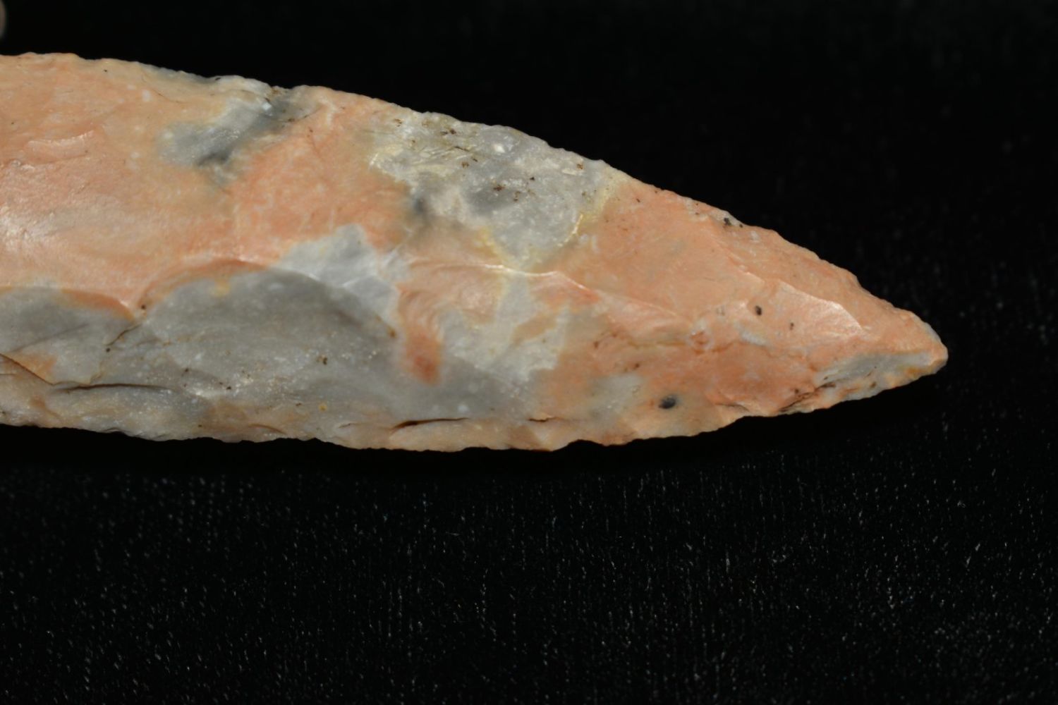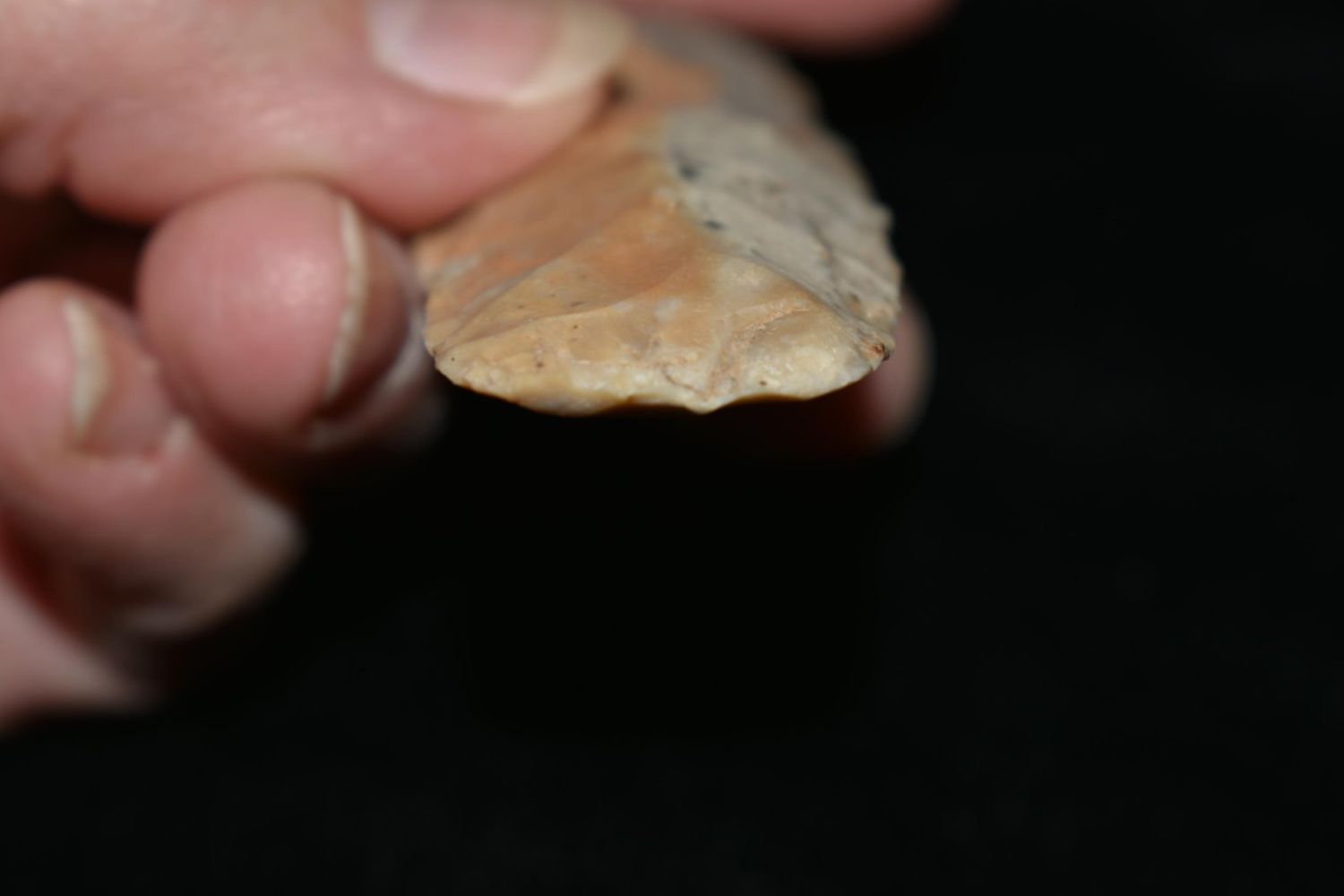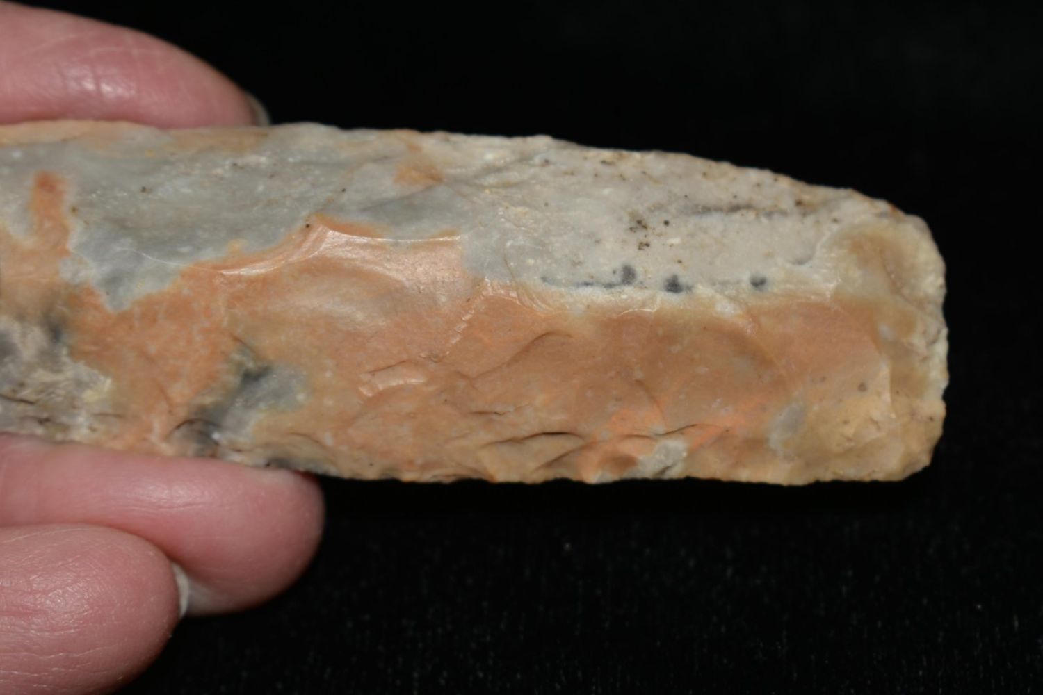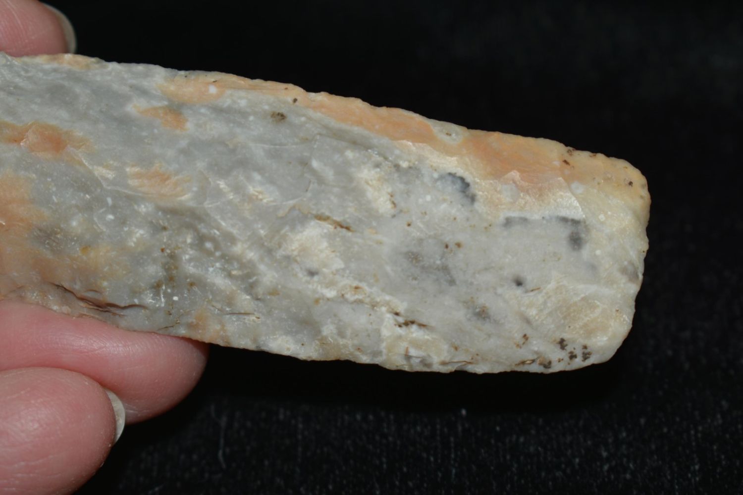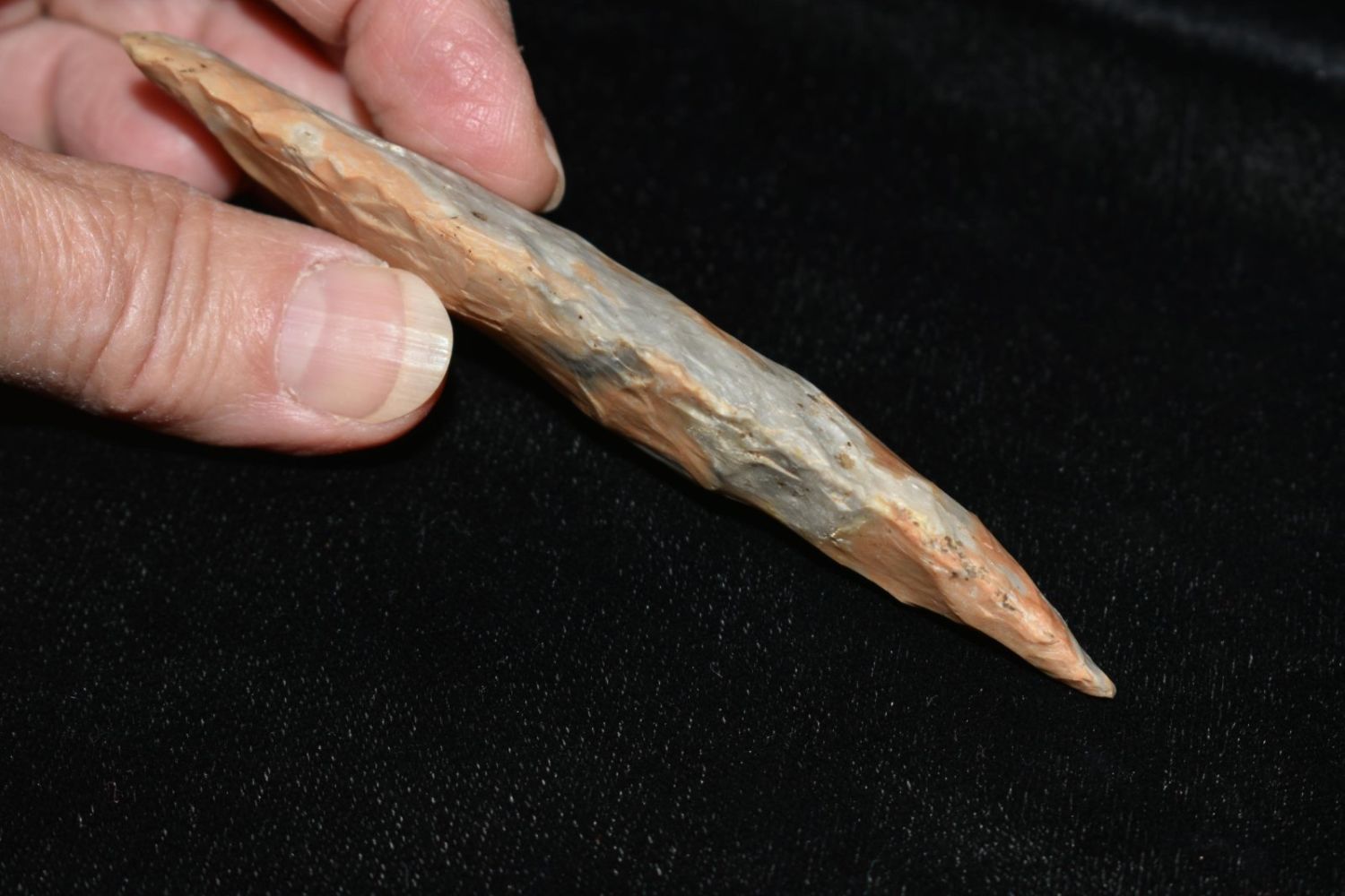 4 1/8" Nebo Hill with great colors. From the James and Joe George Collection. Joe George was an avid collector and finder of Native American artifacts in the greater St Louis Missouri area. Joe collected his entire life. Upon his passing he turned his collection over to his son James. James was also a very avid collector. He enjoyed walking various waterways and attending artifact shows. James is looking forward to passing down his collection to the relic community for caretaking.