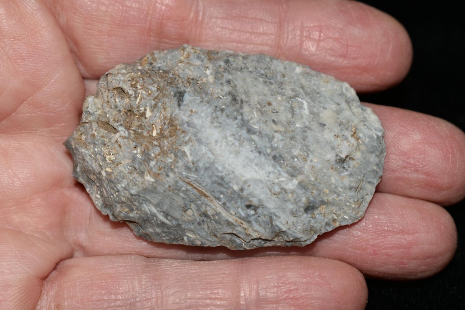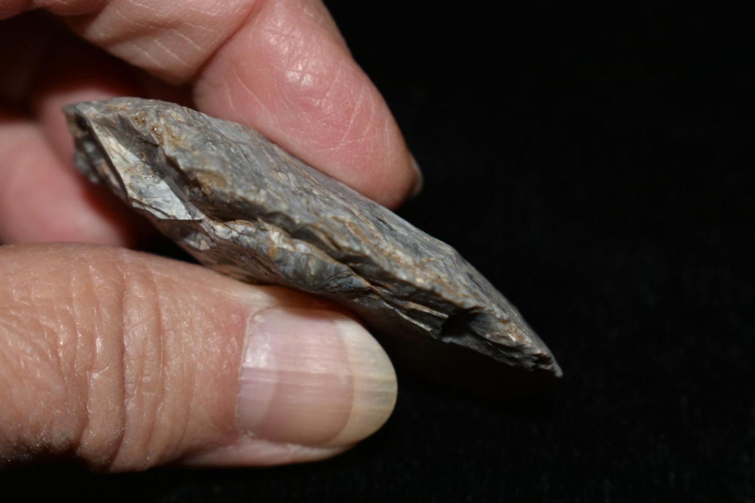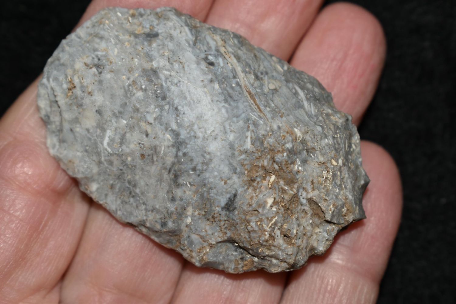 2 1/8" Ovoid Blade. From the James and Joe George Collection. Joe George was an avid collector and finder of Native American artifacts in the greater St Louis Missouri area. Joe collected his entire life. Upon his passing he turned his collection over to his son James. James was also a very avid collector. He enjoyed walking various waterways and attending artifact shows. James is looking forward to passing down his collection to the relic community for caretaking.