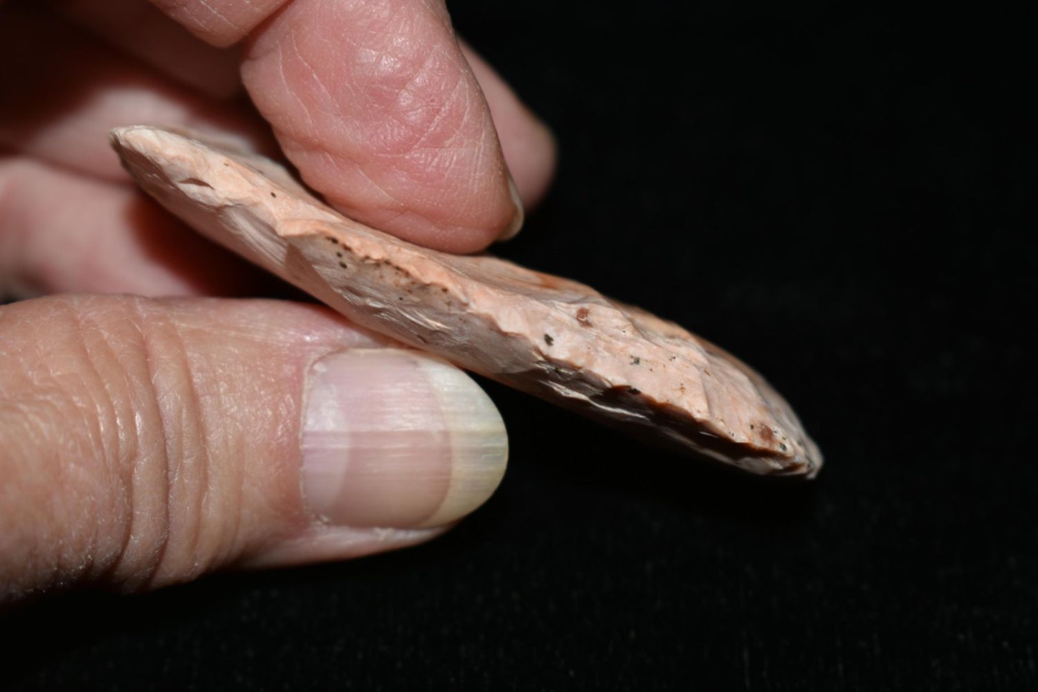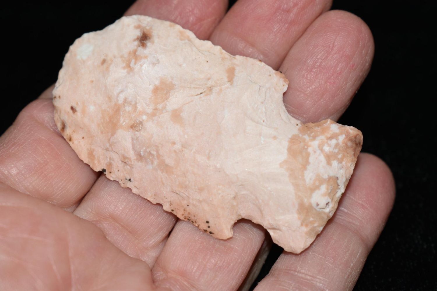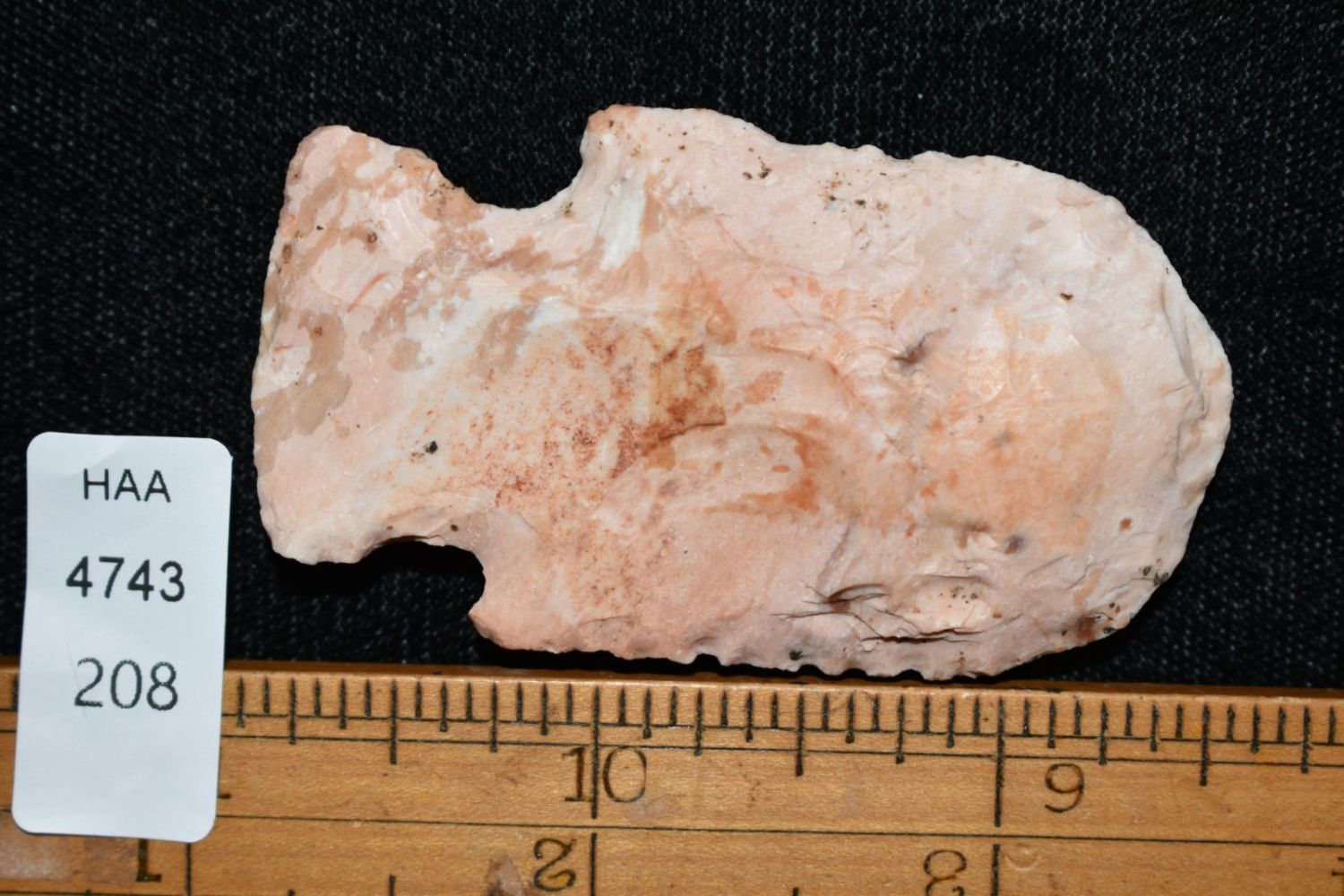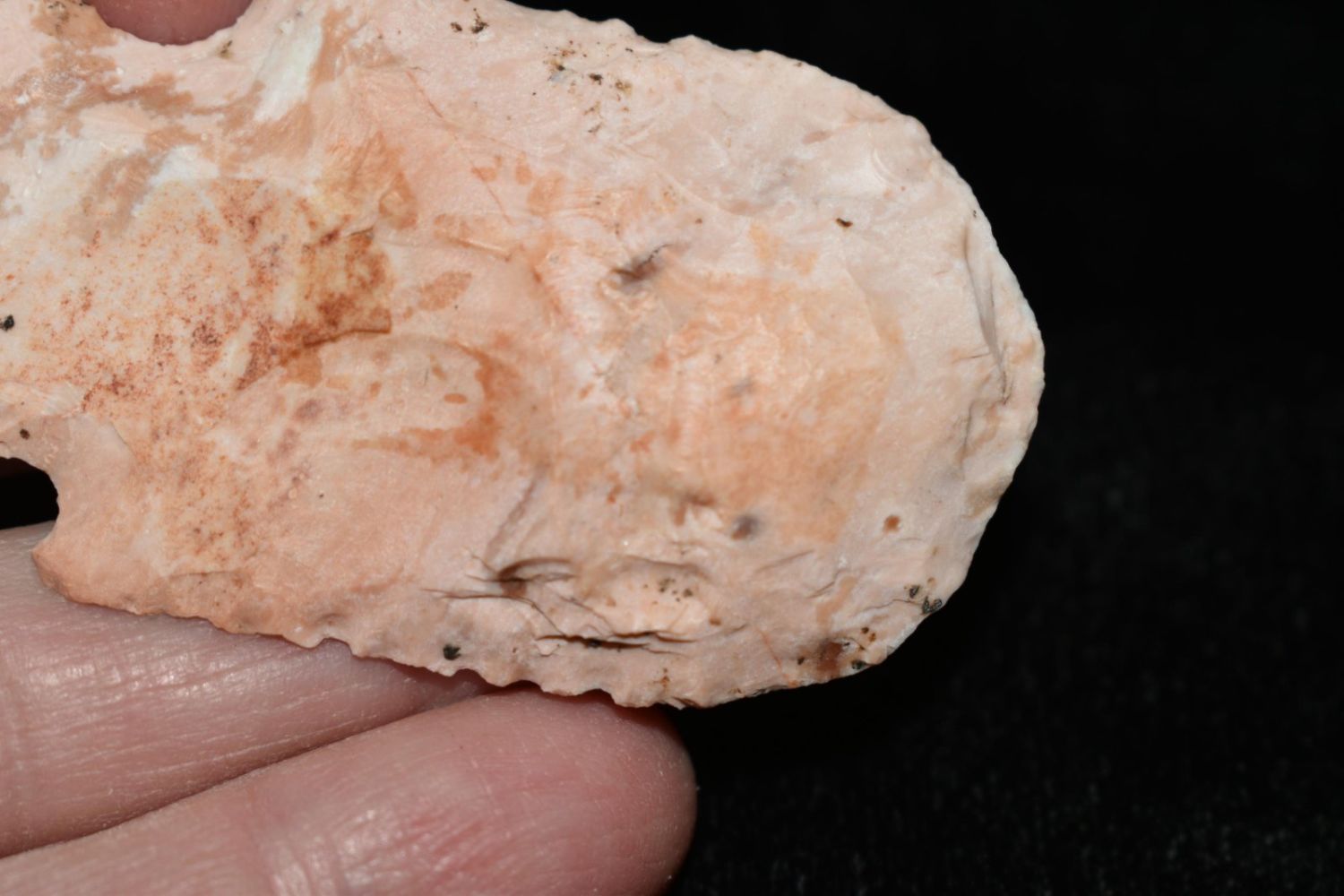 2 3/8" Chesterfield Blunt. From the James and Joe George Collection. Joe George was an avid collector and finder of Native American artifacts in the greater St Louis Missouri area. Joe collected his entire life. Upon his passing he turned his collection over to his son James. James was also a very avid collector. He enjoyed walking various waterways and attending artifact shows. James is looking forward to passing down his collection to the relic community for caretaking.
